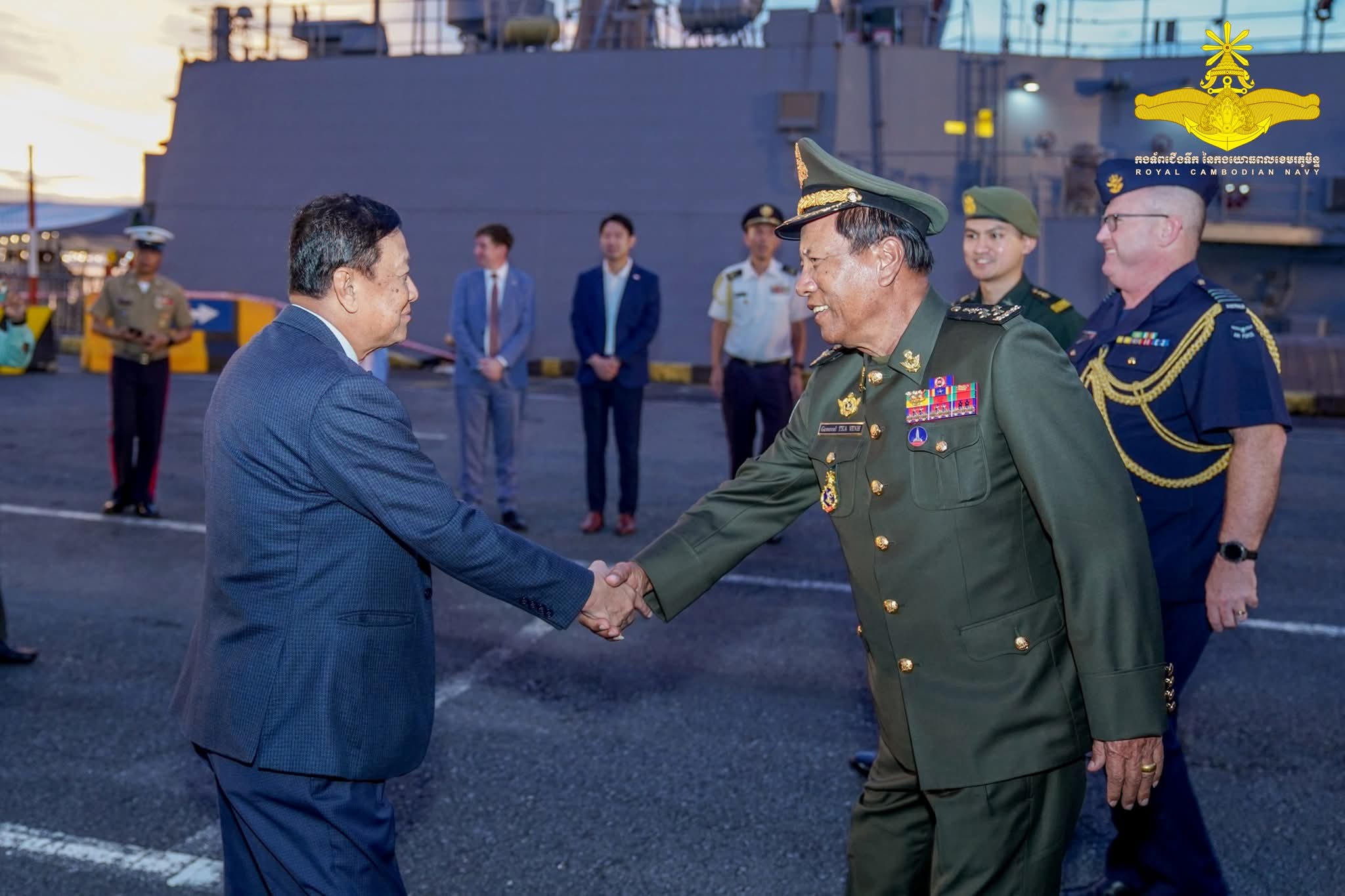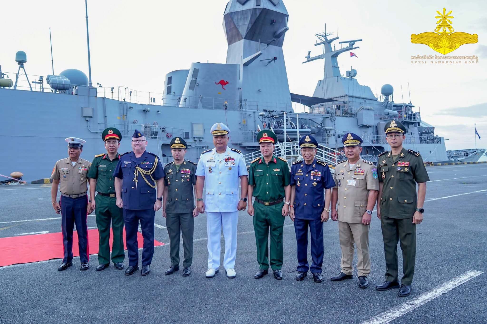 ឯកឧត្តម ឧត្តមនាវីឯក ទៀ សុខា មេបញ្ជាការកងទ័ពជើងទឹក អញ្ជើញចូលរួមពិធីជប់លៀងលើនាវាកងទ័ពជើងទឹកអូស្ត្រាលី ក្រោមអធិបតីភាពឯកឧត្តម នាយឧត្តមសេនីយ៍ ទៀ វិញ រដ្ឋលេខាធិការក្រសួងការពារជាតិ នៅកំពង់ផែស្វយ័តក្រុងព្រះសីហនុ===================ខេត្តព្រះសីហនុ៖នៅថ្ងៃសុក្រ ៣រោច ខែអស្សុជ ឆ្នាំម្សាញ់ សប្តស័ក ព.ស. ២៥៦៩ ត្រូវនិងទី១០ ខែតុលា ឆ្នាំ២០២៥ ឯកឧត្តម ឧត្តមនាវីឯក ទៀ សុខា មេបញ្ជាការកងទ័ពជើងទឹក អនុប្រធានប្រចាំការ និងជាអគ្គលេខាធិការ នៃគណៈកម្មាធិការជាតិសន្តិសុខលម្ហសមុទ្រ អញ្ជើញចូលរួមពិធីជប់លៀងលើនាវាកងទ័ពជើងទឹកអូស្ត្រាលី ឈ្មោះHMAS Ballarat-FFH155 (Anzac Class FFH) ក្រោមអធិបតីភាព ឯកឧត្តម នាយឧត្តមសេនីយ៍ ទៀ វិញ រដ្ឋលេខាធិការក្រសួងការពារជាតិ តំណាងដ៏ខ្ពង់ខ្ពស់ ឯកឧត្តម នាយឧត្តមសេនីយ៍ ទៀ សីហា ឧបនាយករដ្ឋមន្ត្រី រដ្ឋមន្ត្រីក្រសួងការពារជាតិ នៅកំពង់ផែស្វយ័តក្រុងព្រះសីហនុ។
