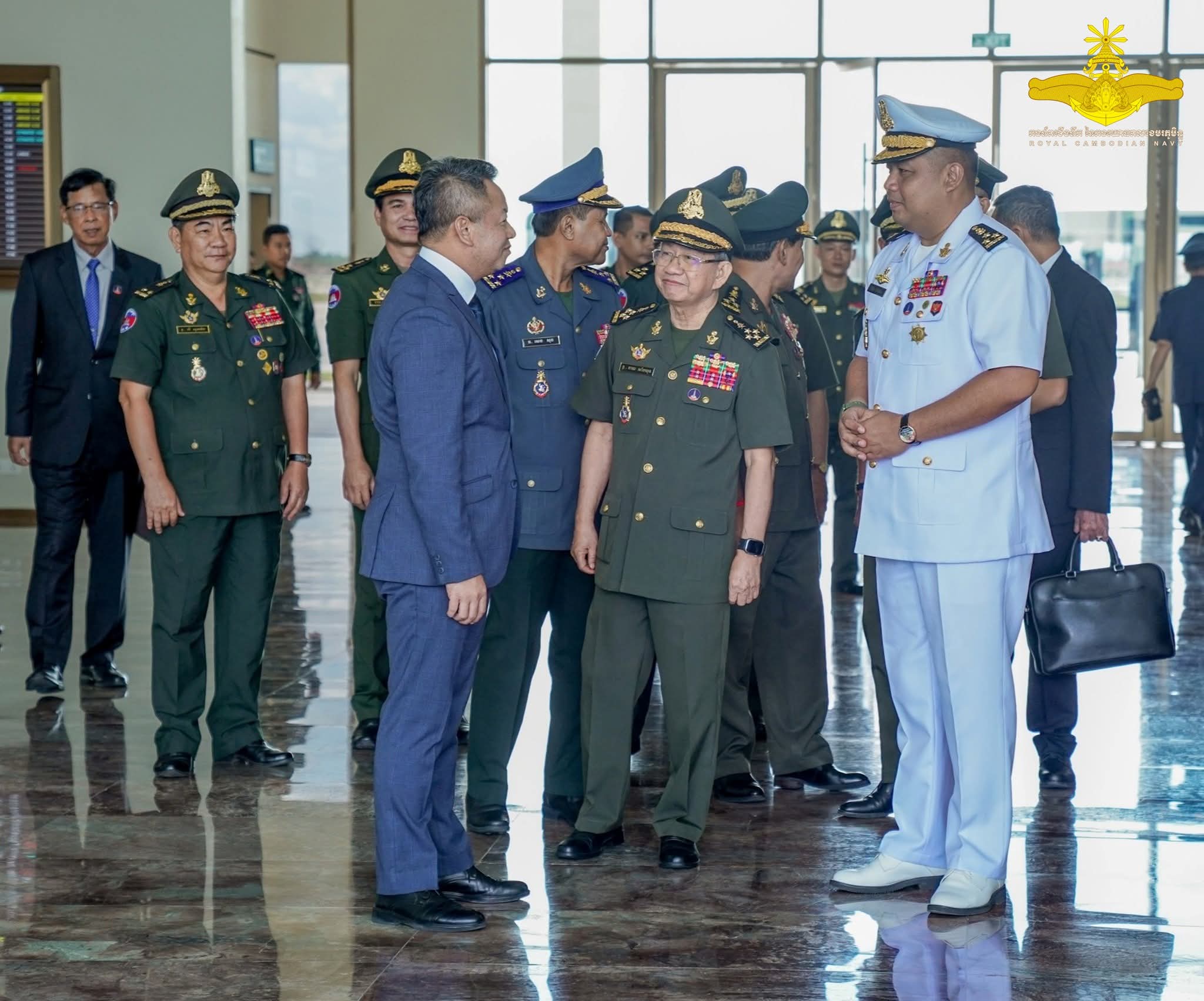 ឯកឧត្តម ឧត្តមនាវីឯក ទៀ សុខា អញ្ជើញទទួលដំណើរឯកឧត្តម នាយឧត្តមសេនីយ៍ ទៀ សីហា ឧបនាយករដ្ឋមន្ត្រី រដ្ឋមន្ត្រីក្រសួងការពារជាតិ អញ្ជើញធ្វើមាតុភូមិនិវត្តន៍ត្រទ្បប់មកដល់កម្ពុជាវិញ ================រាជធានីភ្នំពេញ៖នៅថ្ងៃព្រហស្បតិ៍ ៩រោជ ខែអស្សុជ ឆ្នាំម្សាញ់់ សប្តស័ក ព.ស. ២៥៦៩ ត្រូវនិងថ្ងៃទី១៦ ខែតុលា ឆ្នាំ២០២៥ ឯកឧត្តម ឧត្តមនាវីឯក ទៀ សុខា មេបញ្ជាការកងទ័ពជើងទឹក អនុប្រធានប្រចាំការ និងជាអគ្គលេខាធិការ នៃគណៈកម្មាធិការជាតិសន្តិសុខលម្ហសមុទ្រ អញ្ជើញទទួលដំណើរគណៈប្រតិភូយោធាជាន់ខ្ពស់ នៃកងយោធពលខេមរភូមិន្ទ ដឹកនាំដោយឯកឧត្តម នាយឧត្តមសេនីយ៍ ទៀ សីហា ឧបនាយករដ្ឋមន្ត្រី រដ្ឋមន្ត្រីក្រសួងការពារជាតិ អញ្ជើញធ្វើមាតុភូមិនិវត្តន៍ត្រទ្បប់មកដល់កម្ពុជាវិញ ក្រោយពីបញ្ចប់ទស្សនកិច្ចផ្លូវការ ចូលរួមកិច្ចប្រជុំរដ្ឋមន្ត្រីក្រសួងការពារជាតិបីប្រទេស និងពិធីបិទលំហាត់ហ្វឹកហ្វឺនសង្រ្គោះគ្រោះមហន្តរាយរួមកងទ័ពបីប្រទេស កម្ពុជា-ទ្បាវ-វៀតណាម នៅសាធារណរដ្ឋ ប្រជាធិបតេយ្យ ប្រជាមានិតទ្បាវ នៅអាកាសយានដ្ឋានអន្តរជាតិតេជោ។