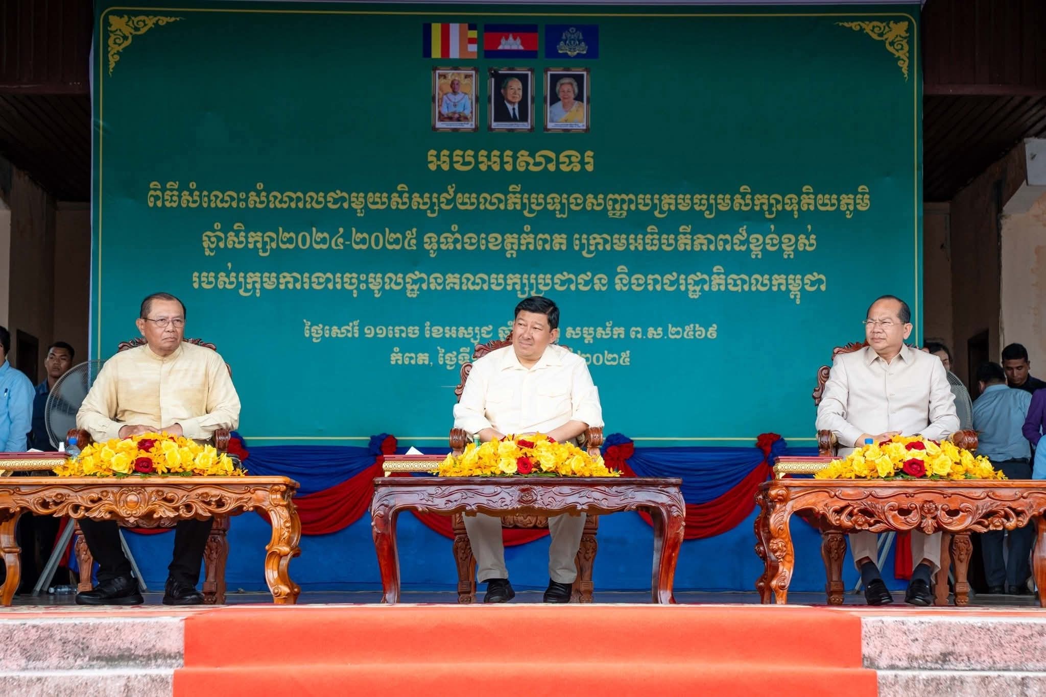 ឯកឧត្តម ឧបនាយករដ្ឋមន្ត្រី សាយ សំអាល់ បានថ្លែងថា ការងារអប់រំជាកិច្ចការងារមួយសំខាន់ មិនអាចខ្វះបាន ហើយអនាគតកម្ពុជា គឺត្រូវពឹងលើវិស័យអប់រំនេះ================(ខេត្តកំពត)៖នៅថ្ងៃទី១៨ ខែតុលា ឆ្នាំ២០២៥ ឯកឧត្តម សាយ សំអាល់ ឧបនាយករដ្នមន្ត្រី រដ្នមន្ត្រីក្រសួងរៀបចំដែនដី នគរូបនីយកម្ម និងសំណង់ និងឯកឧត្តមបណ្ឌិត ប៉ែន ស៊ីម៉ន អ្នកតំណាងរាស្ត្រមណ្ឌលកំពត និងជាប្រធានក្រុមការងារគណបក្សប្រជាជនចុះមូលដ្ឋានខេត្តកំពត និងឯកឧត្តម ម៉ៅ ធនិន អភិបាលខេត្តកំពត បានអញ្ចើញជាអធិបតីភាពក្នុងពិធីជួបសំណេះសំណាលជាមួយសិស្សជ័យលាភីប្រឡងសញ្ញាបត្រមធ្យមសិក្សាទុតិយភូមិ ឆ្នាំសិក្សា២០២៤-២០២៥ ទូទាំងខេត្តកំពត និងផ្តល់រង្វាន់ជូនសិស្សប្រឡងជាប់និទ្ទេស A ទាំង ៨៩នាក់ ដែលបានរៀបចំធ្វើនៅបរិវេណពហុកីឡដ្ឋានខេត្តកំពត ស្ថិតក្នុងក្រុងកំពត ខេត្តកំពត ។ឯកឧត្តម សាយ សំអាល់ ឧបនាយករដ្ឋមន្ត្រី រដ្ឋមន្ត្រីក្រសួងរៀបចំដែនដី នគរូបនីយកម្ម និងសំណង់ និងជាប្រធានក្រុមការងាររាជរដ្ឋាភិបាលចុះមូលដ្ឋានខេត្តកំពត បានថ្លែងថា ការងារអប់រំជាកិច្ចការងារមួយសំខាន់ មិនអាចខ្វះបាន ហើយអនាគតកម្ពុជា គឺត្រូវពឹងលើវិស័យអប់រំនេះ។ ឯកឧត្តម ឧបនាយករដ្ឋមន្ត្រី សាយ សំអាល់ ក៏បានលើកទឹកចិត្ត ដល់យុវជន និងសិស្សានុសិស្ស ពិសេសអ្នករៀនមិនសូវពូកែ សូមកុំអាលអស់សង្ឃឹម ត្រូវបន្តប្រឹងប្រែងរៀនសូត្រជាប្រចាំ និងអភិវឌ្ឍសមត្ថភាពជានិច្ច ទាំងជំនាញនៅក្នុងសាលា និងចំណេះដឹង បំណិតជីវិតនៅក្នុងសង្គម ដើម្បីចូលរួមកសាងស្រុកទេស ឲ្យរីកចម្រើន គង់វង្ស តជំនាន់រហូតទៅ។សូមបញ្ចាក់ថា សម្រាប់លទ្ធផលនៃការប្រឡងសញ្ញាបត្រមធ្យមសិក្សាទុតិយភូមិ សម័យប្រឡង២៨ សីហា ឆ្នាំ២០២៥ ខេត្តកំពត មានសិស្សប្រឡងជាប់ សរុបចំនួន ៤.៦៩៨នាក់ ស្រី ២.៧២៥នាក់ ស្នើ ៩០.៨៥% ក្នុងនោះសិស្សទទួលបាននិទ្ទេស A មានចំនួន ៨៩នាក់ កើនឡើងជាងឆ្នាំមុន ១១នាក់ (និទ្ទេសA ទទួលបានម៉ូតូ ១គ្រឿង ថវិកា ៤០ម៉ឺនរៀល និងឱកាសទទួលបានកញ្ចប់អាហាររូបករណ៍នៅថ្នាក់ឧត្តមសិក្សា)៕
