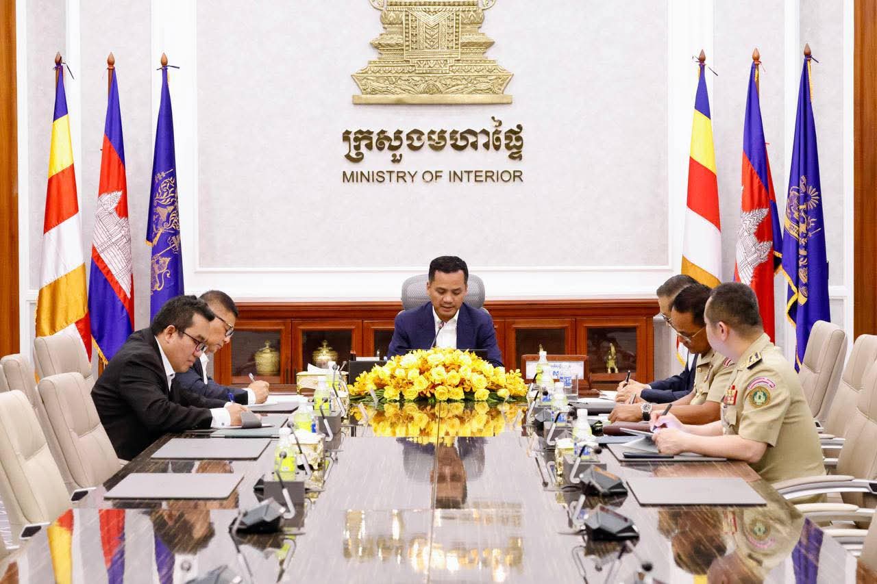 ឯកឧត្ដមសន្តិបណ្ឌិត សុខ ផល រដ្នលេខាធិការក្រសួងមហាផ្ទៃ អញ្ចើញចូលរួមកិច្ចប្រជុំពិភាក្សាលើការងារសន្តិសុខ និងការងារពាក់ព័ន្ធ នៅទីស្តីការក្រសួងមហាផ្ទៃ==================(ភ្នំពេញ)៖នារសៀលថ្ងៃចន្ទ័ ១៣រោច ខែអស្សុជ ឆ្នាំម្សាញ់ សប្តស័ក ព.ស.២៥៦៩ ត្រូវនិងថ្ងៃទី២០ ខែតុលា ឆ្នាំ២០២៥ ឯកឧត្ដមសន្តិបណ្ឌិត សុខ ផល រដ្នលេខាធិការក្រសួងមហាផ្ទៃ បានអញ្ចើញចូលរួមកិច្ចប្រជុំពិភាក្សាលើការងារសន្តិសុខ និងការងារពាក់ព័ន្ធជាមួយឯកឧត្តម នាយឧត្តមសេនីយ៍ សន្តិបណ្ឌិត ឆៃ ស៉ីណារិទ្ធ ទេសរដ្ឋមន្ត្រីទទួលបន្ទុកបេសកកម្មពិសេស និងជាប្រធានលេខាធិការដ្ឋាននៃគណៈកម្មការចំពោះកិច្ចប្រយុទ្ធប្រឆាំងការឆបោកតាមប្រព័ន្ធបច្ចេកវិទ្យា (គ.ប.ឆ.ប) របស់រាជរដ្ឋាភិបាល ក្រោមអធិបតីភាពដ៏ខ្ពង់ខ្ពស់ឯកឧត្តមអភិសន្តិបណ្ឌិត ស សុខា ឧបនាយករដ្ឋមន្ត្រី រដ្ឋមន្ត្រីក្រសួងមហាផ្ទៃ៕ កិច្ចប្រជុំបានប្រព្រឹត្តទៅនៅទីស្តីការក្រសួងមហាផ្ទៃ។