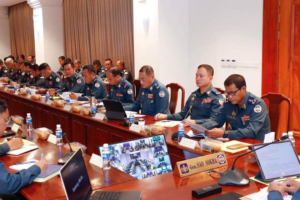 ឯកឧត្តម ឧត្តមនាវីឯក ទៀ សុខា មេបញ្ជាការកងទ័ពជើងទឹក អញ្ចើញជាអអិបតីភាពដឹកនាំកិច្ចប្រជុំឆ្លងសេចក្តីព្រាងរបាយការណ៍បូកសរុបលទ្ធផលការងារខែតុលា និងទិសដៅអនុវត្តការងារខែវិច្ឆិកា ឆ្នាំ២០២៥ របស់កងទ័ពជើងទឹក