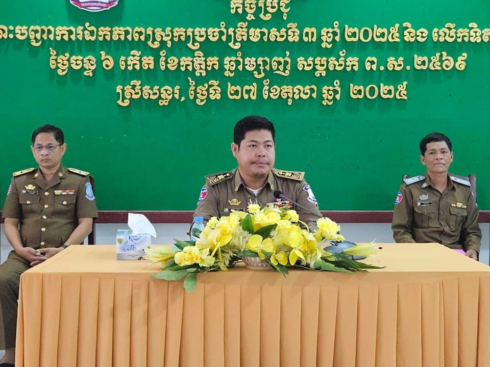 លោក ប៊ិន ឡាដា អភិបាលស្រុកស្រីសន្ធរ បានដឹកនាំកិច្ចប្រជុំគណៈបញ្ជាការឯកភាពរដ្ឋបាលស្រុក រយៈពេល៩ខែ ឆ្នាំ២០២៥ និងលើកទិសដៅបន្ត នៅសាលាស្រុកស្រីសន្ធរ===============ស្រុកស្រីសន្ធរ៖នៅព្រឹកថ្ងៃចន្ទ ទី២៧ ខែតុលា ឆ្នាំ២០២៥ លោក ប៊ិន ឡាដា អភិបាល នៃគណៈអភិបាលស្រុក និងជាប្រធានគណៈបញ្ជាការឯកភាពរដ្ឋបាលស្រុក បានដឹកនាំកិច្ចប្រជុំគណៈបញ្ជាការឯកភាពរដ្ឋបាលស្រុក រយៈពេល៩ខែ ឆ្នាំ២០២៥ និងលើកទិសដៅបន្ត ដោយមានការចូលរួមពីលោក លោកស្រីអភិបាលរងស្រុក មេបញ្ជាការកងកម្លាំងទាំង៣ នាយក នាយករងរដ្ឋបាល លោក លោកស្រីប្រធានការិយាល័យ មេឃុំ មេប៉ុស្តិ៍ ស្មៀនឃុំ សរុបចំនួន៦៥នាក់ ស្រី១៣នាក់ ដែលប្រព្រឹត្តទៅនៅសាលប្រជុំសាលាស្រុកស្រីសន្ធរ។
