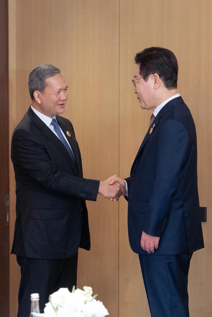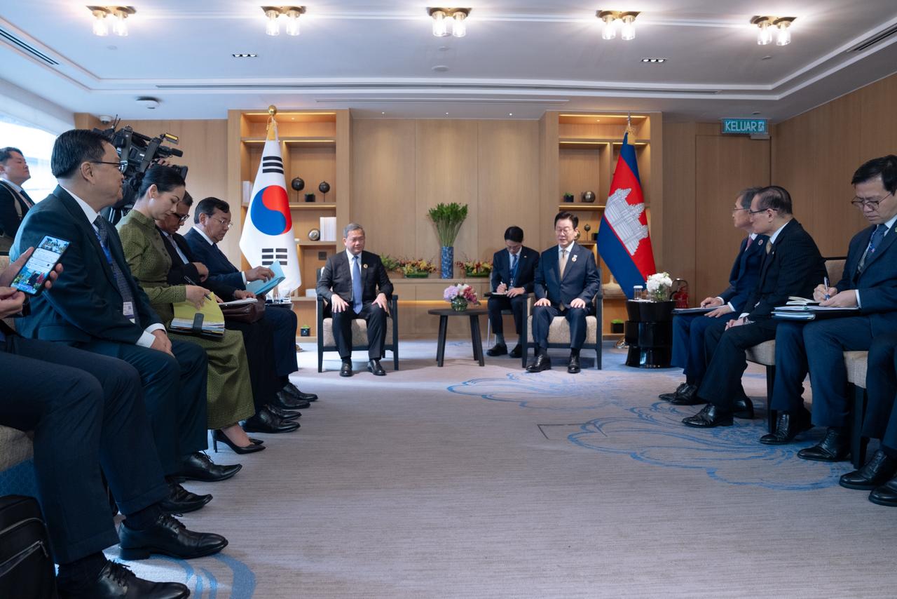 កម្ពុជា-សាធារណរដ្ឋកូរ៉េ ប្ដេជ្ញាពង្រឹងកិច្ចសហប្រតិបត្តិការ សំដៅបង្ការ ទប់ស្កាត់ និងប្រយុទ្ធប្រឆាំងនឹងបទឧក្រិដ្ឋនានានាព្រឹកថ្ងៃទី២៧ ខែតុលា ឆ្នាំ២០២៥, សម្តេចមហាបវរធិបតី ហ៊ុន ម៉ាណែត នាយករដ្ឋមន្រ្តី នៃព្រះរាជាណាចក្រកម្ពុជា និង ឯកឧត្តម Lee Jae-Myung ប្រធានាធិបតីសាធារណរដ្ឋកូរ៉េ បានជួបពិភាក្សាការងារទ្វេភាគី ក្នុងឱកាសចូលរួមកិច្ចប្រជុំកំពូលអាស៊ាន លើកទី៤៧ និងកិច្ចប្រជុំកំពូលពាក់ព័ន្ធ នៅទីក្រុងគូឡាឡាំពួ ប្រទេសម៉ាឡេស៊ី នៅថ្ងៃទី២៦-២៨ ខែតុលា ឆ្នាំ២០២៥។ក្នុងឱកាសនៃជំនួប, សម្ដេចបវរធិបតីបានអបអរសាទរចំពោះឯកឧត្តម Lee Jae-Myung ដែលបាន ក្លាយជាប្រធានាធិបតីនៃសាធារណរដ្ឋកូរ៉េ។ សម្តេចបវរធិបតី បានវាយតម្លៃខ្ពស់ ចំពោះទំនាក់ទំនងកម្ពុជា-សាធារណរដ្ឋកូរ៉េ ដែលត្រូវបានភ្ជាប់ឡើងវិញនៅឆ្នាំ១៩៩៧ និងត្រូវបានដំឡើងកម្រិតដល់ភាពជាដៃគូយុទ្ធសាស្ត្រ នៅឆ្នាំ២០២៤ ដែលបានធ្វើឱ្យទំនាក់ទំនងទ្វេភាគីកាន់តែមានភាពរឹងមាំ និងស៊ីជម្រៅ ហើយកិច្ចសហប្រតិបត្តិការក៏កាន់តែរីកចម្រើនគួរឱ្យកត់សម្គាល់ ស្ទើរគ្រប់វិស័យ។ ថ្នាក់ដឹកនាំទាំងពីរបានពិភាក្សា និងផ្លាស់ប្ដូរយោបល់គ្នាលើវិស័យសំខាន់ៗមួយចំនួន ដូចជាវិស័យការពារជាតិ និងសន្តិសុខ ពិសេស ការប្រយុទ្ធប្រឆាំងនឹងឧក្រិដ្ឋកម្មឆ្លងដែន និងការប្រយុទ្ធប្រឆាំងនឹងឆបោកតាមប្រព័ន្ធបច្ចេកវិទ្យា។ ថ្នាក់ដឹកនាំទាំងពីរបានចាត់ទុកថាវិស័យសន្តិសុខក្លាយជាវិស័យដែលមានភាពប្រទាក់ក្រឡា និងមានចរិតលក្ខណៈជាតំបន់ និងសកល ដែលទាមទារនូវកិច្ចសហប្រតិបត្តិការយ៉ាងខ្លាំងក្លាពីបណ្តាប្រទេសជាច្រើន។ ទន្ទឹមនឹងការទទួលស្គាល់នូវកិច្ចសហប្រតិបត្តិការជាច្រើនឆ្នាំកន្លងមក រវាងអាជ្ញាធរនៃប្រទេសទាំងពីរ ដែលបានសម្រេចនូវលទ្ធផលជាផ្លែផ្កាជាច្រើន, ថ្នាក់ដឹកនាំទាំងពីរ ក៏បានពិភាក្សា និងផ្លាស់ប្ដូរទស្សនៈគ្នាទៅវិញទៅមក សំដៅធានាបាននូវសុខសុវត្ថិភាពដល់ប្រជាជននៃប្រទេសទាំងពីរ ជាពិសេស ភ្ញៀវទេសចរ វិនិយោគិន ក៏ដូចជាសហគមកម្ពុជាដែលកំពុងបម្រើការងារ និងស្នាក់នៅប្រទេសកូរ៉េ និងសហគមកូរ៉េ ដែលកំពុងបម្រើការងារ និងស្នាក់នៅប្រទេសកម្ពុជា។ ក្នុងន័យនេះ កម្ពុជា និងសាធារណរដ្ឋកូរ៉េ នឹងបន្តពង្រឹងកិច្ចសហប្រតិបត្តិការរួមគ្នាដើម្បីបង្ការ, ទប់ស្កាត់ និងប្រយុទ្ធប្រឆាំងនឹងបទឧក្រិដ្ឋនានាដែលពាក់ព័ន្ធជាមួយជនជាតិកូរ៉េនៅកម្ពុជា ឱ្យកាន់មានប្រសិទ្ធភាពខ្ពស់ សំដៅចូលរួមចំណែកថែរក្សា, ការពារសន្តិសុខ, សណ្តាប់ធ្នាប់សាធារណៈ និងសុវត្ថិភាពសង្គម។ លេីសពីនេះ កម្ពុជា-សាធារណរដ្ឋកូរ៉េ នឹងបន្តពង្រឹងការផ្សព្វផ្សាយព័ត៌មាន និងកិច្ចសហប្រតិបត្តិការឱ្យបានច្រើន ធ្វើយ៉ាងណាបញ្ចៀសការភាន់ច្រឡំពីសំណាក់សាធារ