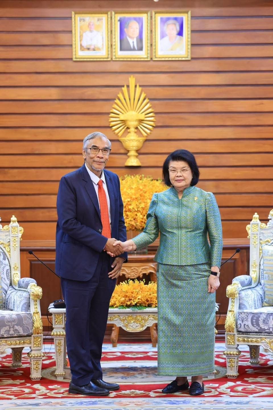 ឯកឧត្តម ប៉ា សុជាតិវង្ស ប្រធានគណៈកម្មការទី៧ នៃរដ្ឋសភា អញ្ចើញចូលរួមអមសម្តេចមហារដ្ឋសភាធិការធិបតី ឃួន សុដារី ប្រធានរដ្ឋសភា បានទទួលជួបពិភាក្សាការងារជាមួយ គណៈប្រតិភូសហព័ន្ធសភាសន្ដិភាពពិភពលោកនៃសភាម៉ាឡេស៊ី (PFWP)==================នៅថ្ងៃសុក្រ ១១កើត ខែអស្សុជ ឆ្នាំម្សាញ់ សប្តស័ក ពុទ្ធសករាជ ២៥៦៩ ត្រូវនឹងថ្ងៃទី០៣ ខែតុលា ឆ្នាំ២០២៥ ឯកឧត្តម ប៉ា សុជាតិវង្ស ប្រធានគណៈកម្មការទី៧ នៃរដ្ឋសភា បានអញ្ចើញចូលរួមអមសម្តេចមហារដ្ឋសភាធិការធិបតី ឃួន សុដារី ប្រធានរដ្ឋសភា នៃព្រះរាជាណាចក្រកម្ពុជា បានទទួលជួបពិភាក្សាការងារជាមួយ គណៈប្រតិភូសហព័ន្ធសភាសន្ដិភាពពិភពលោក នៃសភាម៉ាឡេស៊ី (PFWP) ដឹកនាំដោយឯកឧត្តមបណ្ឌិត ដាតុក វីរ៉ា ម៉ុដ ហាតា ប៊ីន អឹមឌី រ៉ាមលី (YB SENATOR DATUK WIRA DR. MOHD HATTA BIN MD RAMLI) សមាជិកព្រឹទ្ធសភាម៉ាឡេស៊ី នៅវិមានរដ្នសភា រាជធានីភ្នំពេញ ។សម្តេចមហារដ្ឋសភាធិបតី ឃួន សុដារី បានស្វាគមន៍យ៉ាងកក់ក្តៅចំពោះ ឯកឧត្តមបណ្ឌិត និងគណៈប្រតិភូ ដែលបានអញ្ជើញញមកបំពេញទស្សនកិច្ចនៅកម្ពុជានិងបានជួបពិភាក្សាការងារជាមួយថ្នាក់ដឹកនាំរបស់កំពូលៗរបស់កម្ពុជា មាន សម្តេចតេជោ ហ៊ុន សែន ប្រធានព្រឹទ្ធសភា និងជាប្រមុខរដ្ឋស្តីទីនៃព្រះរាជាណាចក្រកម្ពុជា សម្តេចមហាបវរធិបតី ហ៊ុន ម៉ាណែត នាយករដ្ឋមន្រ្តី នៃព្រះរាជាណាចក្រកម្ពុជា ប្រកបដោយផ្លែផ្កាគួរជាទីមោទនៈ ក្នុងការស្វែងរកផលប្រយោជន៍ជូនពលរដ្ឋ ពិសេសការលើកកម្ពស់សុខសន្តិភាព។ ឯកឧត្តមបណ្ឌិត ប្រធានប្រតិភូ បានគូសបញ្ជាក់ថា សហព័ន្ធសភាសន្ដិភាពពិភពលោកនៃសភាម៉ាឡេស៊ី បានតាមដានដោយយកចិត្តទុកដាក់នូវការអនុវត្តបទឈប់បាញ់ ហើយគំាទ្រប្រសាសន៍លើកឡើងរបស់សម្តេចប្រធានរដ្ឋសភា ដែលថាជម្លោះមិនអាចដោះស្រាយដោយសង្រ្គាមនោះទេ មានតែការចរចាទេទើបអាចបញ្ចប់សង្រ្គាមបាន។ ឯកឧត្តមមានជំនឿមុតមាំថាបញ្ហានេះនឹងដោះស្រាយបានក្នុងពេលឆាប់ៗ។