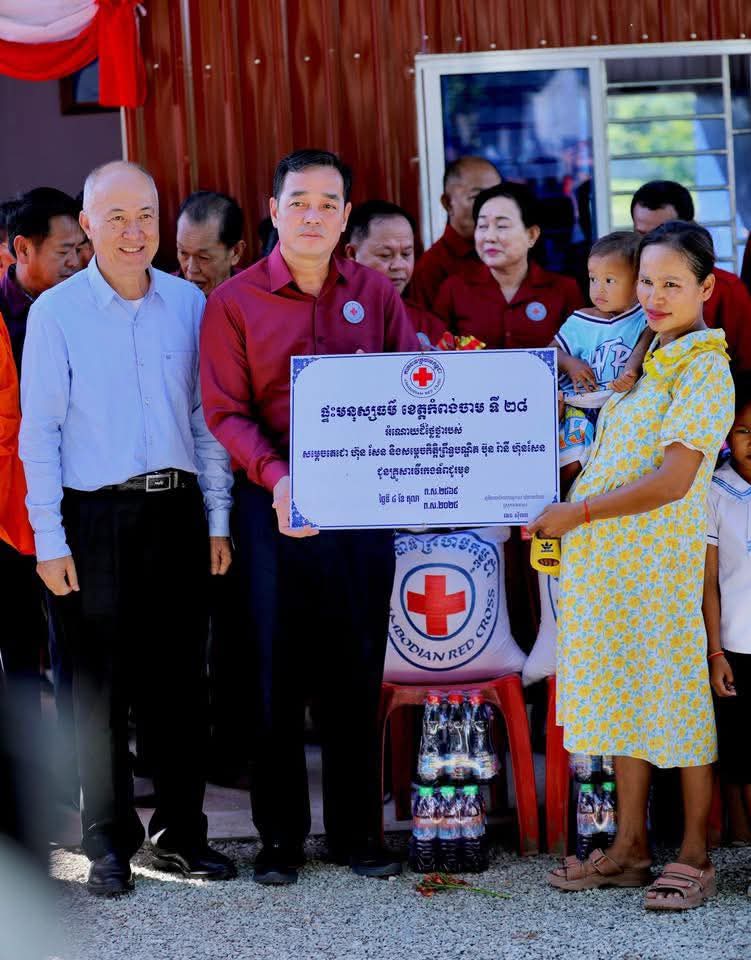 ឯកឧត្តម អ៊ុន ចាន់ដា អភិបាលខេត្ត និងជាប្រធានគណៈកម្មាធិការសាខាកាកបាទក្រហមកម្ពុជាខេត្តកំពង់ចាម អញ្ជើញប្រគល់ផ្ទះមនុស្សធម៌ ១ខ្នង អំណោយសម្តេចតេជោ និងសម្តេចកិត្តិព្រឹទ្ធបណ្ឌិត ជូនគ្រួសារវីរយុទ្ធជនជួរមុខ នៅស្រុកកងមាស (កំពង់ចាម)៖ នៅព្រឹកថ្ងៃសៅរ៍ទី ៤ ខែតុលា ឆ្នាំ ២០២៥ នេះ ឯកឧត្តម អ៊ុន ចាន់ដា អភិបាលខេត្ត និងជាប្រធានគណៈកម្មាធិការសាខាកាកបាទក្រហមកម្ពុជាខេត្តកំពង់ចាម រួមដំណើរដោយ ឯកឧត្តមបណ្ឌិតសាស្ត្រាចារ្យ សកលវិទ្យាធិការ ហោ ប៉េង តំណាងដ៏ខ្ពង់ខ្ពស់ ឯកឧត្តម ហង់ជួន ណារ៉ុន ឧបនាយករដ្ឋមន្ត្រី និងជាអនុប្រធានកិត្តិយសសាខា រួមទាំង ឯកឧត្តម លោកជំទាវ ថ្នាក់ដឹកនាំ លោក លោកស្រី សមាជិក សមាជិកាគណ:កម្មាធិការសាខា អាជ្ញាធរមូលដ្ឋាន បានអញ្ជើញប្រគល់ផ្ទះមនុស្សធម៌ ១ខ្នង និងបន្ទប់ទឹក ១ខ្នង ដែលជាអំណោយដ៏ថ្លៃថ្លារបស់សម្តេចអគ្គមហាសេនាបតីតេជោ ហ៊ុន សែន ប្រមុខរដ្ឋស្ដីទី និង សម្តេចកិត្តិព្រឹទ្ធបណ្ឌិត ប៊ុន រ៉ានី ហ៊ុនសែន ដែលជាផ្ទះមនុស្សធម៌ទី ២៨ ជូនអ្នកស្រី អេន ស៊ីណា អាយុ ៣៨ឆ្នាំ ជាភរិយា វីរកងទ័ពជួរមុខ រស់នៅភូមិរាយប៉ាយកណ្តាល ឃុំរាយប៉ាយ ស្រុកកងមាស។ ថ្លែងក្នុងឱកាសនោះ ឯកឧត្តម អ៊ុន ចាន់ដា បានមានប្រសាសន៍ថា សម្តេចកិត្តិព្រឹទ្ធបណ្ឌិត ប៊ុន រ៉ានី ហ៊ុនសែន ប្រធានកាកបាទក្រហមកម្ពុជា ជានិច្ចកាល សម្តេច តែងតែ បានណែនាំអោយសាខា អនុសាខា និងបណ្តាញការងារគ្រប់ថ្នាក់ របស់កាកបាទក្រហមកម្ពុជា យកចិត្តទុកដាក់ជួយដោះស្រាយសម្រាលទុក្ខលំបាកដល់ពលរដ្ឋរងគ្រោះ និង ងាយរងគ្រោះ អោយទាន់ពេលវេលា ក្នុងនោះត្រូវគិតគូរ ផ្តោតទៅលើគ្រួសារវីរកងទ័ពជួរមុខ ពលរដ្ឋភៀសសឹក និងផ្តល់ឱកាសការងារដល់ពលករដែលត្រឡប់មកពីប្រទេសថៃ ជាសំខាន់។ សូមបញ្ជាក់ថា អ្នកស្រី អេន ស៊ីណា ជាភរិយាយោធិនជួរមុខនៅមុំ៣ ទិសព្រះវិហារ ដែលកំពុង បំពេញ បេសកកម្មការពារបូរណភាពទឹកដីយ៉ាងប្តូរផ្តាច់នៅសមរភូមិព្រំដែន ។ អ្នកស្រី មានកូនស្រីប្រុស ២ នាក់ ក្នុងបន្ទុក និងមានផ្ទៃពោះ ៤ខែ ថែមទៀត ។ កាលពីថ្ងៃទី ១៨ ខែសីហា ឆ្នាំ២០២៥ កន្លងទៅ ដោយមើល ឃើញពីស្ថានភាពលំបាករបស់គ្រួសារវីរយុទ្ធជនជួរមុខ " ផុន សុធា " នៅឯមូលដ្ឋានក្រោយ ដែលសព្វថ្ងៃកំពុងកង្វះមធ្យោបាយធ្វើដំណើរ ជម្រកស្នាក់នៅ មានតែកូនផ្ទះតូចមួយ បិទបាំងដោយសង្កសីចាស់ទ្រុឌទ្រោម រួមទាំងជីវភាព ក៏មានការខ្វះខាត ផងនោះ ក្នុងនាមសម្តេចកិត្តិព្រឹទ្ធបណ្ឌិត ប៊ុន រ៉ានី ហ៊ុនសែន ឯកឧត្តម ហង់ជួន ណារ៉ុន ក៏បានពិនិត្យ និងសម្រេច សាងសង់ ផ្ទះថ្មផ្ទាល់ដី ប្រក់សង្កសី ១ខ្នង ទំហំ ៥ម×៨ម និងបង្គន់អនាម័យ ១បន្ទប់ ជូនប្រពន្ធនិងកូន របស់វីរយុទ្ធជនជួរមុខ " ផុន សុធា " បានប្រើប្រាស់ និងស្នាក់នៅបានសមរម្យ។ ឯកឧត្តម អ៊ុន ចាន់ដា ក៏បានផ្តល់ថវិ