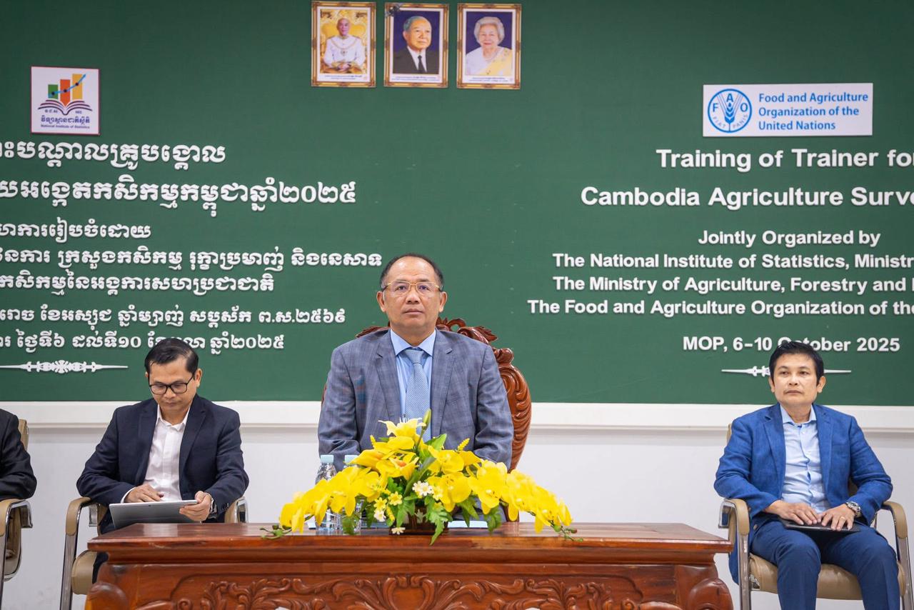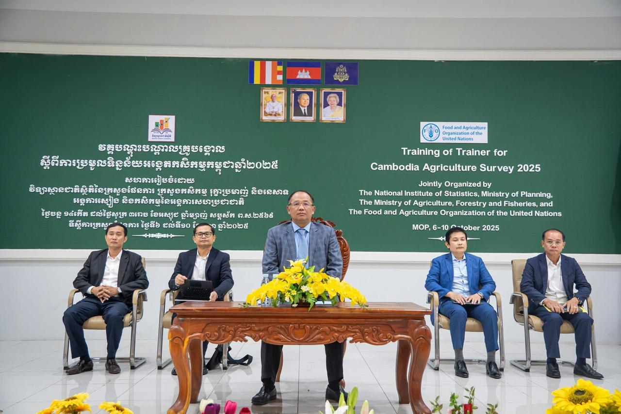ឯកឧត្ដម រិន វីរៈ រដ្ឋលេខាធិការក្រសួងផែនការ និងជាប្រធានក្រុមប្រឹក្សាភិបាលនៃវិទ្យស្ថានជាតិស្ថិតិ អញ្ជើញជាអធិបតីក្នុងពិធីបើកវគ្គបណ្តុះបណ្តាលគ្រូបង្គោល ស្តីពីប្រមូលទិន្នន័យ អង្កេតកសិកម្មកម្ពុជា ឆ្នាំ២០២៥ នៅទីស្តីការក្រសួងផែនការ==============ទីស្តីការក្រសួងផែនការ៖នៅព្រឹកថ្ងៃទី៦ ខែតុលា ឆ្នាំ២០២៥ ឯកឧត្ដម រិន វីរៈ ទីប្រឹក្សាផ្ទាល់សម្តេចមហាបវរធិបតី ហ៊ុន ម៉ាណែត នាយករដ្ឋមន្រ្តីនៃព្រះរាជាណាចក្រកម្ពុជា រដ្ឋលេខាធិការក្រសួងផែនការ និងជាប្រធានក្រុមប្រឹក្សាភិបាលនៃវិទ្យស្ថានជាតិស្ថិតិ បានអញ្ជើញជាអធិបតីភាពក្នុងពិធីបើកវគ្គបណ្តុះបណ្តាលគ្រូបង្គោល ស្តីពីប្រមូលទិន្នន័យ អង្កេតកសិកម្មកម្ពុជា ឆ្នាំ២០២៥ នៅទីស្តីការក្រសួងផែនការ។ នាឱកាសនោះ ឯកឧត្តម រិន វីរៈ បានមានប្រសាសន៍ថា ទិន្នន័យស្ថិតិ ឬសូចនាករគន្លឹះនៅក្នុងវិស័យផ្នែកកសិកម្មមានសារៈសំខាន់ណាស់ដើម្បីគាំទ្រដល់ការតាមដានត្រួតពិនិត្យ និងវាយតម្លៃលើការអនុវត្តគោលនយោបាយ គោលដៅយុទ្ធសាស្រ្ត និងកម្មវិធីអភិវឌ្ឍន៍នានារបស់ក្រសួង ស្ថាប័ន ឬអង្គភាព។ ក្នុងន័យនេះ វិទ្យាស្ថានជាតិស្ថិតិនៃក្រសួងផែនការ ត្រូវការផលិតនូវទិន្នន័យស្ថិតិ តាមរយៈការធ្វើជំរឿន និងអង្កេតនានា ដែលជួយគាំទ្រដល់សូចនាករយុទ្ធសាស្រ្តបច្ចកោណ ដំណាក់កាលទី១ ផែនការយុទ្ធសាស្រ្តអភិវឌ្ឍន៍ជាតិ និងគោលដៅអភិវឌ្ឍន៍ប្រកបដោយចីរភាព ដើម្បីសំដៅចូលរួមជំរុញក្នុងការអនុវត្តសម្រេចបានគោលដៅការងាររួមគ្នា មានទិន្នន័យស្ថិតិសំបូរបែបប មានភាពប្រទាក់ក្រឡាគ្នា និងបំពេញគ្នាទៅវិញទៅមកទាំងនៅថ្នាក់ជាតិ និងថ្នាក់ក្រោមជាតិ ប្រកបដោយប្រសិទ្ធភាព សក្តិសិទ្ធិភាព និងជោគជ័យ។ ការណ៍នេះ ត្រូវការការចូលរួមឱ្យអស់ពីកម្លាំងកាយ កម្លាំងចិត្ត ស្មារតីឆន្ទៈមោះមុតបំពេញការងារអង្កេត របស់លោក លោកស្រីជាមន្រ្តីគ្រូបង្គោល ដែលនឹងក្លាយជាមន្រ្តីត្រួតពិនិត្យការសម្ភាសដឹកនាំអង្កេត និងមន្រ្តីសម្ភាសន៍ ក្នុងគោលដៅដើម្បីឈានទៅទទួលបានទិន្នន័យអង្កេតមានគុណភាពខ្ពស់ប្រកបដោយប្រសិទ្ធភាព ទាន់ពេលវេលា សម្រាប់តម្រូវការប្រើប្រាស់ពីគ្រប់មជ្ឈដ្ឋានពាក់ព័ន្ធ។ឯកឧត្តម បានគូសបញ្ជាក់បន្ថែមថា តាមរយៈកម្មវិធីវគ្គបណ្តុះបណ្តាលគ្រូបង្គោលនេះ មានអ្នកជំនាញការអង្គការ FAO និងមន្រ្តីជំនាញសម្របសម្រួលកម្មវិធីដែលមានបទពិសោធន៍លើការងារអង្កេតកសិកម្ម និងប្រើប្រាស់កម្មវិធីអង្កេតតាមម៉ាស៊ីនកុំព្យូទ័រខ្នាតតូច ឬហៅថាម៉ាស៊ីនតាបប្លែត និងមន្រ្តីជាគ្រូបង្គោលជំនាញផ្នែកទិន្នន័យស្ថិតិមកពីវិទ្យាស្ថានជាតិស្ថិតិ និងក្រសួងកសិកម្ម រុក្ខាប្រមាញ់ និងនេសាទ។ ខ្ញុំមានក្តីសង្ឈឹមយ៉ាងមុតមាំថា សិក្ខាកាមជាគ្រូបង្គ