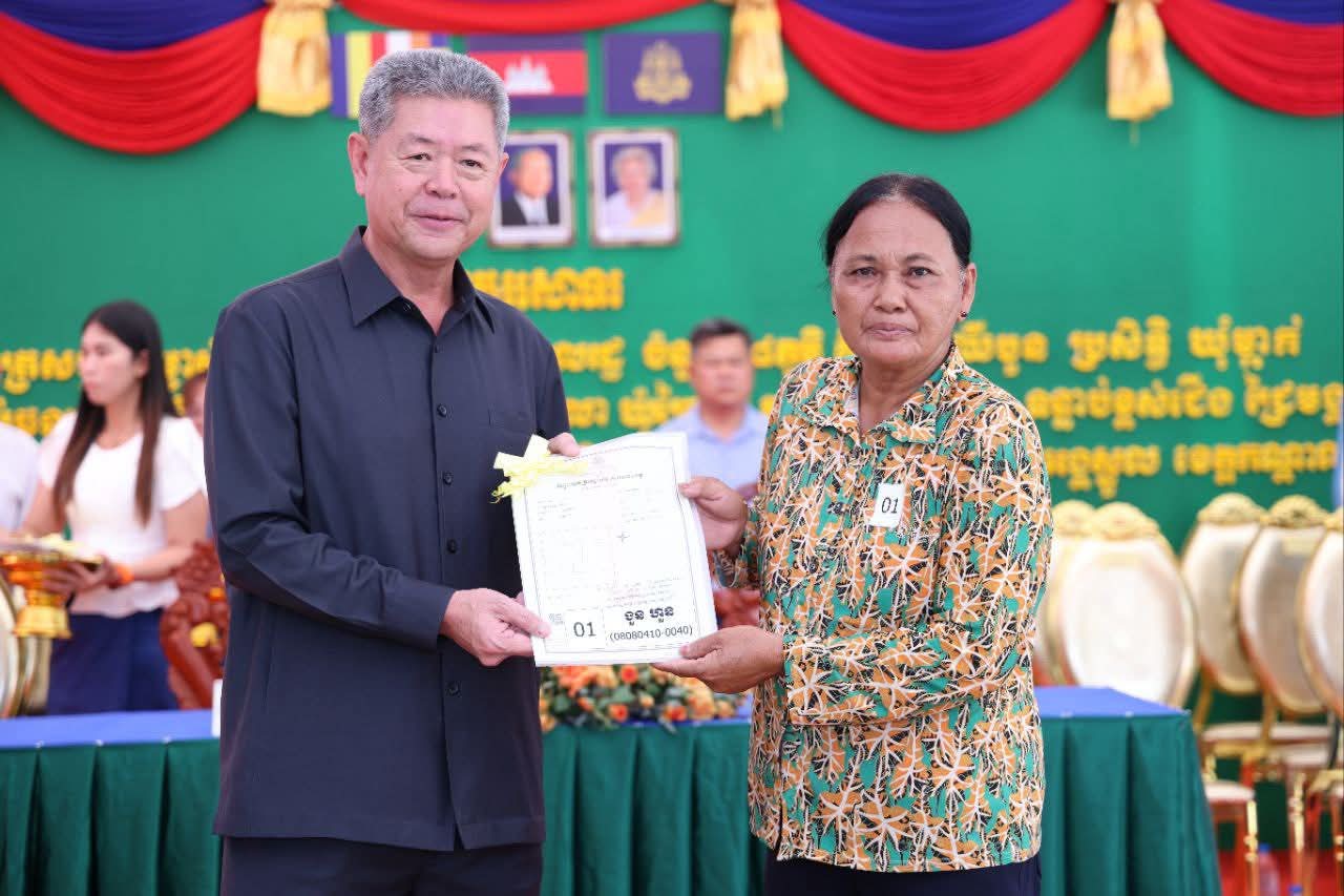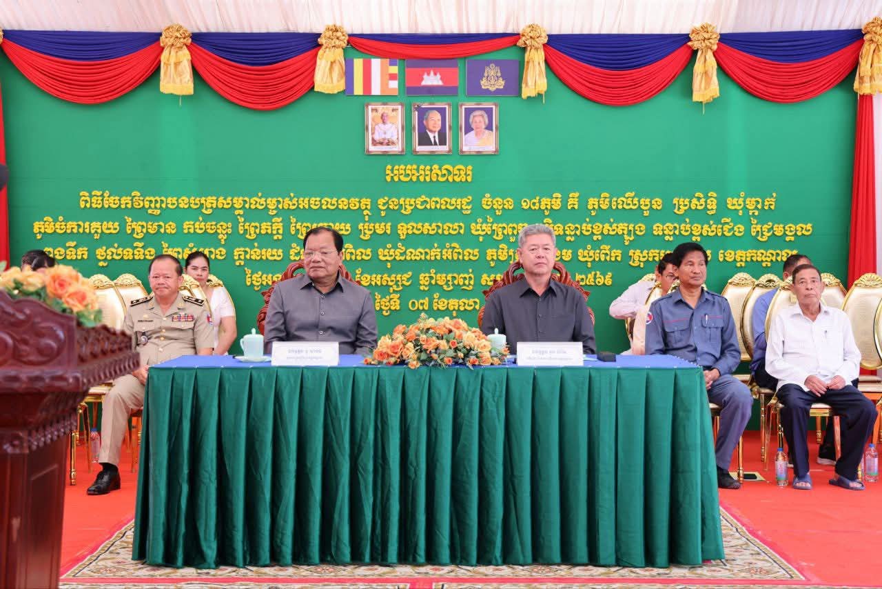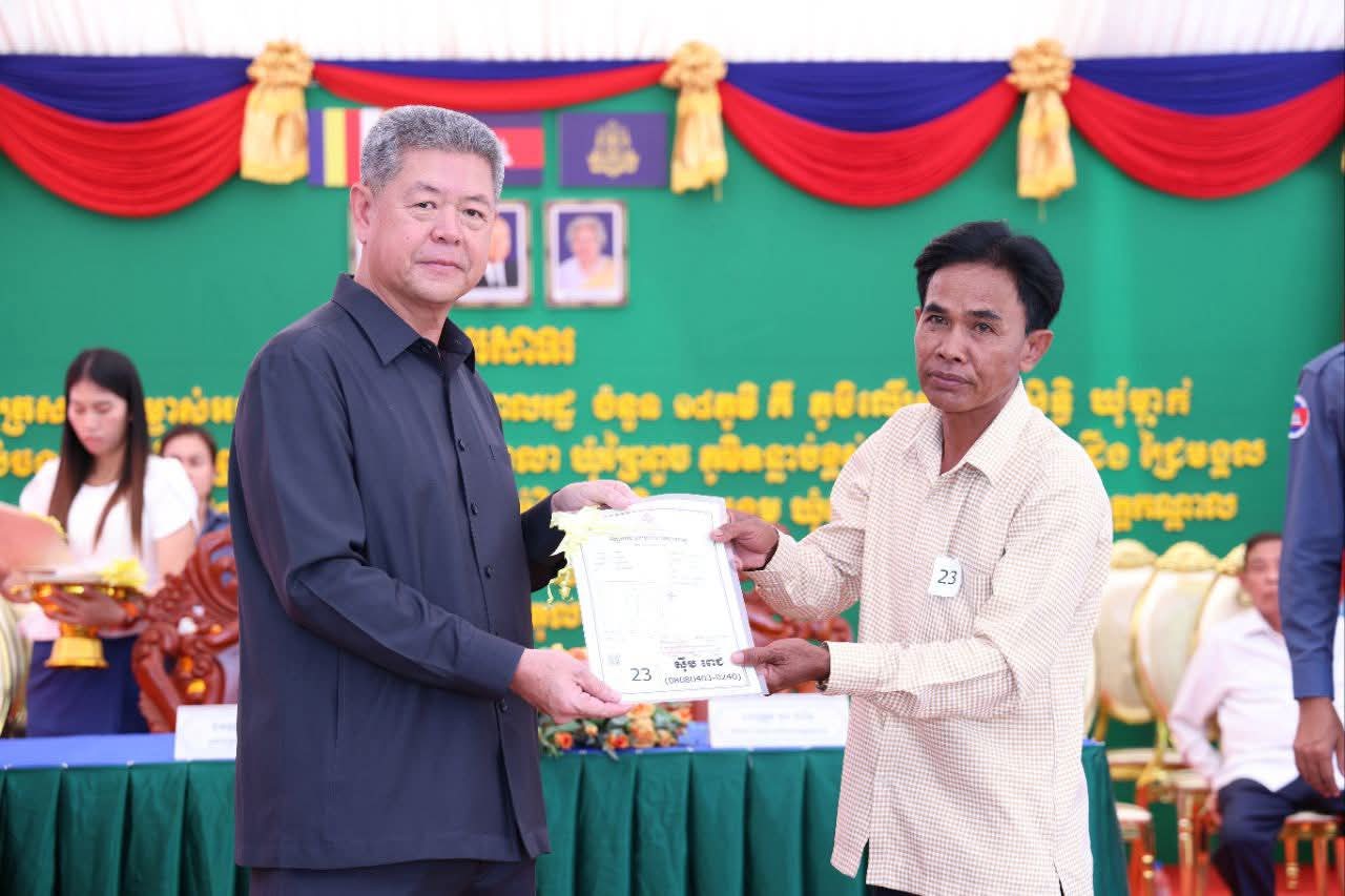 ថ្នាក់ដឹកនាំខេត្តកណ្ដាល បានចែកប័ណ្ណកម្មសិទ្ធិដីធ្លីចំនួន ១០,២៣៦ប័ណ្ណ ជូនប្រជាពលរដ្ឋចំនួន ១៨ភូមិ ស្ថិតនៅឃុំម្កាក់ ឃុំព្រៃពួច និងឃុំដំណាក់អំពិល ស្រុកអង្គស្នួល=================ខេត្តកណ្តាល៖ ឯកឧត្តម គួច ចំរើន អភិបាល នៃគណៈអភិបាលខេត្តកណ្ដាល បានជំរុញ ដល់អាជ្ញាធរមូលដ្ឋាន ត្រូវផ្សព្វផ្សាយឱ្យបានទូលំទូលាយ ក្នុងការជូនដំណឹងដល់ប្រជាពលរដ្ឋដែលមិនបានមកទទួលយកប័ណ្ណកម្មសិទ្ធិដីធ្លី សូមរួសរាន់អញ្ជើញមកទទួលយកប័ណ្ណកម្មសិទ្ធិដីធ្លីឱ្យបានគ្រប់ៗគ្នា ពីមន្ត្រីសុរិយោដីក្នុងមូលដ្ឋានខ្លួន តាមការកំណត់របស់មន្ត្រីជំនាញរយៈពេល ១០ថ្ងៃ គិតចាប់ពីថ្ងៃប្រកាសចែកប័ណ្ណកម្មសិទ្ឌិនេះតទៅ ជៀសវាងមានការបង់សេវាលើកការថែរក្សាប័ណ្ណជូនម្ចាស់កម្មសិទ្ធ។ ការអំពាវនាវនេះធ្វើឡើង ក្នុងពិធីចែកវិញ្ញាបនបត្រសម្គាល់ម្ចាស់អចលនវត្ថុចំនួន ១០,២៣៦ប័ណ្ណ ជូនប្រជាពលរដ្ឋចំនួន ១៨ភូមិ ស្ថិតនៅឃុំម្កាក់ ឃុំព្រៃពួច និងឃុំដំណាក់អំពិល ស្រុកអង្គស្នួល នាព្រឹកថ្ងៃទី៧ ខែតុលា ឆ្នាំ២០២៥ ដោយមានការអញ្ជើញជាអធិបតីពីសំណាក់ ឯកឧត្តម នូ សាខន ប្រធានក្រុមប្រឹក្សាខេត្តកណ្ដាល ព្រមទាំងមានការអញ្ជើញចូលរួមផងដែរ ពីអាជ្ញាធស្រុក មន្ទីរជុំវិញខេត្ត មន្ត្រីរាជការ និងបងប្អូនប្រជាពលរដ្ឋជាច្រើនរូបទៀត។ឯកឧត្តម គួច ចំរើន បានផ្ដាំផ្ញើដល់បងប្អូនប្រជាពលរដ្ឋ នៅពេលទទួលបានប័ណ្ណហើយ សូមបងប្អូនប្រជាពលរដ្ឋត្រូវគិតគូរទុកដាក់ថែរក្សាឱ្យបានល្អកុំឱ្យបាត់បង់ ពីព្រោះប័ណ្ណកម្មសិទ្ធដីធ្លី គឺពិតជាមានសារៈសំខាន់ ក្នុងការសម្គាល់សិទ្ធិកាន់កាប់ ការទិញលក់ បញ្ចាំដីធ្លីរបស់ខ្លួនស្របតាមច្បាប់។ នៅពេលមានការបាត់បង់គឺតម្រូវឱ្យធ្វើប័ណ្ណទុតិយតាឡើងវិញ ហើយចំពោះការចេញប័ណ្ណទុតិយៈតានេះ ពិតជាពិបាកស្មុគស្មាញណាស់ ត្រូវទាមទារការស៊ើបអង្កេតឱ្យបានគ្រប់ជ្រុងជ្រោយមុននិងចេញជូន បើមិនមានលក្ខណៈត្រឹមត្រូវនោះទេ អាចនឹងផ្តល់ផលប៉ះពាល់ដល់ប្រជាពលរដ្ឋក្រោយទៀតក្នុងការទិញ លក់បង្កជាវិវាទផ្សេងៗ។ ដូច្នេះនៅពេលដែលមានការបាត់បង់ប័ណ្ណកម្មសិទ្ធិដីធ្លី សូមបងប្អូនប្រជាពលរដ្ឋ ប្រញាប់ទៅជួបជាមួយអាជ្ញាធរ និងមន្ត្រីជំនាញក្នុងមូលដ្ឋានខ្លួន ដើម្បីផ្ដល់ព័ត៌មាន ឯកសារពាក់ព័ន្ធនានា ក្នុងការសុំធ្វើប័ណ្ណបានទុតិយតាត្រឹមត្រូវស្របតាមច្បាប់។ឯកឧត្តមអភិបាលខេត្ត បានគូសបញ្ជាក់បន្ថែមថា បញ្ហាដីធ្លីរដ្ឋបាលខេត្តកណ្តាល ព្រមទាំងមន្ទីររៀបចំដែនដី នគរូបនីយកម្ម សំណង់ និងសូរិយោដីខេត្ត បាននិងកំពុងយកចិត្តទុកដាក់ខ្ពស់ ព្រមទាំងប្ដេជ្ញាខិតខំពន្លឿនការចេញប័ណ្ណកម្មសិទ្ធិដីធ្លីជូនប្រជាពលរដ្ឋទូទាំងខេត្តឱ្យបានលឿនរួចរាល់អស់នៅចុងឆ្នាំ ២០២៥នេះ។ ពីព្រោះការចុះបញ្ជី