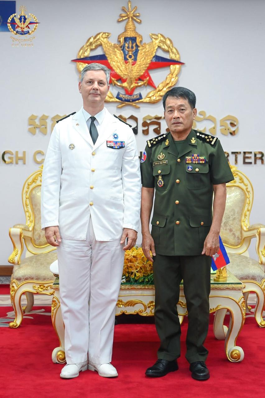 អគ្គមេបញ្ជាការ អនុញ្ញាតឱ្យបេសកកម្ម អមបញ្ជាការដ្ឋានប្រចាំតំបន់អាស៊ីប៉ាស៊ីហ្វិក និងកងកម្លាំង នៅតំបន់ប៉ូលីនេស៊ីបារាំង ចូលជួបសម្ដែងការគួរសម(ភ្នំពេញ)៖ នៅព្រឹកថ្ងៃទី១១ ខែតុលា ឆ្នាំ២០២៥ ឯកឧត្តម នាយឧត្តមសេនីយ៍ វង្ស ពិសេន អគ្គមេបញ្ជាការនៃកងយោធពលខេមរភូមិន្ទ បានអនុញ្ញាតឱ្យលោកឧត្តមនាវីទោ ហ្សាក់ រីខែយែរ ( Jacques RIVIERE )ទទួលបន្ទុករបេសកកម្មអមបញ្ជាការដ្ឋានប្រចាំតំបន់អាស៊ីប៉ាស៊ីហ្វិក និងកងកម្លាំងប្រដាប់អាវុធនៅតំបន់ប៉ូលីនេស៊ីបារាំង ចូលជួបពិភាក្សាការងារ នៅអគ្គបញ្ជាការដ្ឋាន។ក្នុងជំនួបនោះ ឯកឧត្តម នាយឧត្តមសេនីយ៍ វង្ស ពិសេន បានរំឭកពីតួនាទីរបស់បារាំងក្នុងនាមជាស្ថាបនិក និងជាសហប្រធាននៃសន្និសីទទីក្រុងប៉ារីស ស្តីពីកម្ពុជា ដែលសម្រេចបានកិច្ចព្រមព្រៀងទីក្រុងប៉ារីសក្នុងឆ្នាំ១៩៩១ និងការរួមចំណែកជាបន្តបន្ទាប់របស់បារាំងដល់ការអភិវឌ្ឍកម្ពុជាលើច្រើនវិស័យ។ឯកឧត្តម ក៏បានធ្វើការវាយតម្លៃខ្ពស់ចំពោះទំនាក់ទំនងទ្វេភាគីរវាងកម្ពុជា-បារាំង និងបានថ្លែងអំណរគុណដល់រដ្ឋាភិបាលបារាំង ដែលបានគាំទ្រយ៉ាងពេញទំហឹងដល់កម្ពុជា ក្នុងការធ្វើជាម្ចាស់ផ្ទះនៃកិច្ចប្រជុំកំពូលហ្វ្រង់កូហ្វូនី លើកទី២០ ក្នុងឆ្នាំ២០២៦ខាងមុខនេះ។លើវិស័យយោធា ឯកឧត្តម អគ្គមេបញ្ជាការ បានថ្លែងអំណរគុណចំពោះកងទ័ពបារាំង ដែលបានផ្តល់អាហារូបករណ៍ដល់សិក្ខាកាមកម្ពុជាលើវគ្គសិក្សាជាច្រើនវគ្គ ជាពិសេស ការជួយបណ្តុះបណ្តាលកងយោធពលខេមរភូមិន្ទសម្រាប់បេសកកម្មថែរក្សាសន្តិភាពក្រោមឆត្រអង្គការសហប្រជាជាតិ។ ឯកឧត្តមជឿជាក់ថា កងទ័ពប្រទេសទាំងពីរនឹងបន្តពង្រឹងពង្រីកទំនាក់ទំនង និងកិច្ចសហប្រតិបត្តិការឱ្យកាន់តែទូលំទូលាយ តាមរយៈការបណ្តុះបណ្តាលធនធានមនុស្ស ការផ្លាស់ប្តូរទស្សនកិច្ច ការផ្លាស់ប្តូរព័ត៌មាន ទប់ស្កាត់អំពើភេរវកម្ម ឧក្រិដ្ឋកម្មឆ្លងដែននានា និងបន្តកិច្ចសហប្រតិបត្តិការមនុស្សធម៌ និងសង្គ្រោះគ្រោះមហន្តរាយ ។ជាកិច្ចឆ្លើយតប លោកឧត្តមសេនីយ៍ទោ ហ្សាក់ រីខែយែរ បានថ្លែងអំណរគុណចំពោះឯកឧត្តមអគ្គមេបញ្ជាការ នៃកងយោធពលខេមរភូមិន្ទ ដែលបានធ្វើការកត់សម្គាល់ពីកិច្ចសហប្រតិបត្តិការរវាងកងទ័ពប្រទេសទាំងពីរ ហើយតាមរយៈការលើកឡើងនេះ បារាំងនិងកម្ពុជា នឹងបន្តកិច្ចសហប្រតិបត្តិការឲ្យកាន់តែល្អប្រសើរថែមទៀត៕