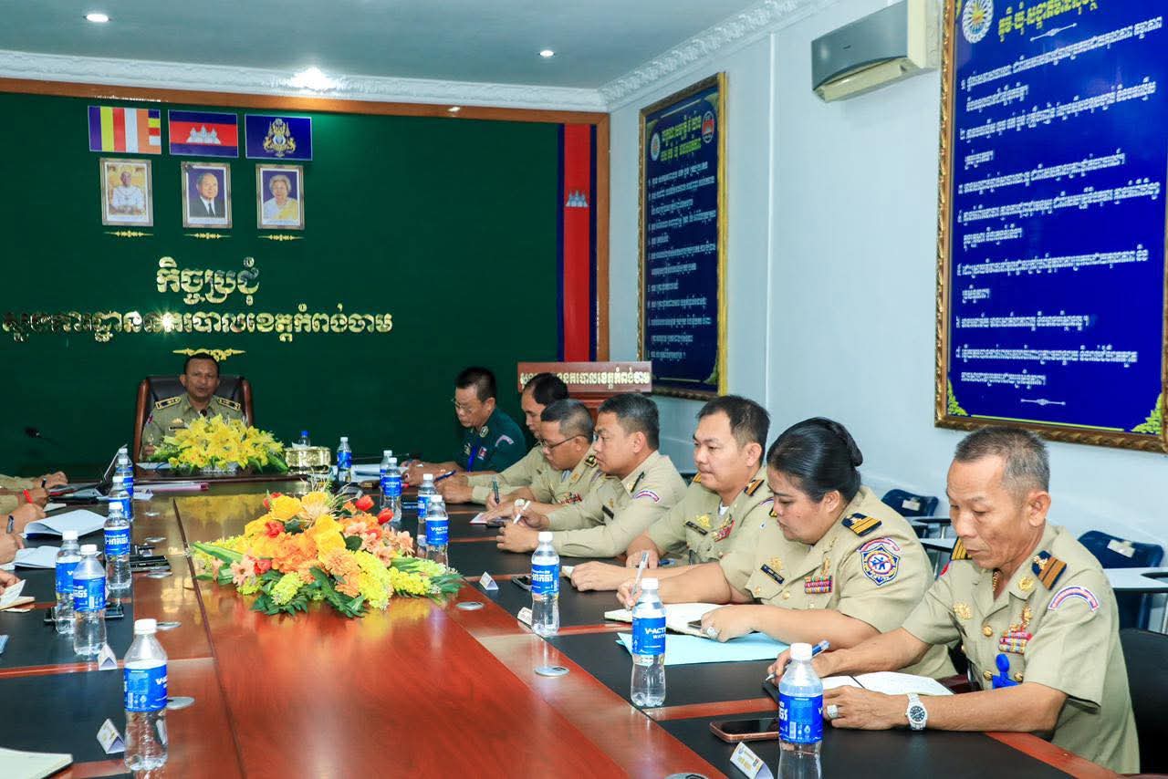 លោកឧត្តមសេនីយ៍ទោ ហេង វុទ្ធី អញ្ជើញដឹកនាំកិច្ចប្រជុំត្រួតពិនិត្យលើលទ្ធផលការងារតាមបណ្ដាផែនជំនាញដោយអនុវត្តតាមអនុសាសន៍ដ៏ខ្ពង់ខ្ពស់របស់ ឯកឧត្តម នាយឧត្តមសេនីយ៍ ស ថេត អគ្គស្នងការនគរបាលជាតិ នៅព្រឹកថ្ងៃអង្គារ ទី១១ ខែវិច្ឆិកា ឆ្នាំ២០២៥នេះ លោកឧត្តមសេនីយ៍ទោ ហេង វុទ្ធី ស្នងការនគរបាលខេត្តកំពង់ចាម អញ្ជើញដឹកនាំកិច្ចប្រជុំគណៈស្នងការ ដើម្បីត្រួតពិនិត្យលទ្ធផលលើការអនុវត្តការងារតាមបណ្ដាផែនជំនាញ ។ក្នុងឱកាសនោះដែរ លោកឧត្តមសេនីយ៍ទោ ហេង វុទ្ធី បានសង្កត់ធ្ងន់ថា លទ្ធផលថ្ងៃនេះ គឺជាកញ្ចក់ឆ្លុះបញ្ចាំងអំពីសមត្ថភាព នៃការដឹកនាំតាមផែនជំនាញ នីមួយៗ ដោយបានខិតខំបំពេញតួនាទី យ៉ាងសកម្ម រហូតទទួលបានលទ្ធផលល្អប្រសើរ គួរឱ្យកត់សម្គាល់ ។ទន្ទឹមនឹងនេះ គ្រប់គណៈជំនាញ ត្រូវបន្ដជំរុញ និងបង្កើនសកម្មភាពឱ្យកាន់តែខ្លាំងក្លាបន្ថែមទៀត ប្រកបដោយគុណភាព និងប្រសិទ្ធភាពខ្ពស់ ក្នុងការអនុវត្តការងារជំនាញ ។ដោយកិច្ចប្រជុំនេះ មានការអញ្ជើញចូលរួមពី លោក លោកស្រី ស្នងការរងគ្រប់រូប ៕