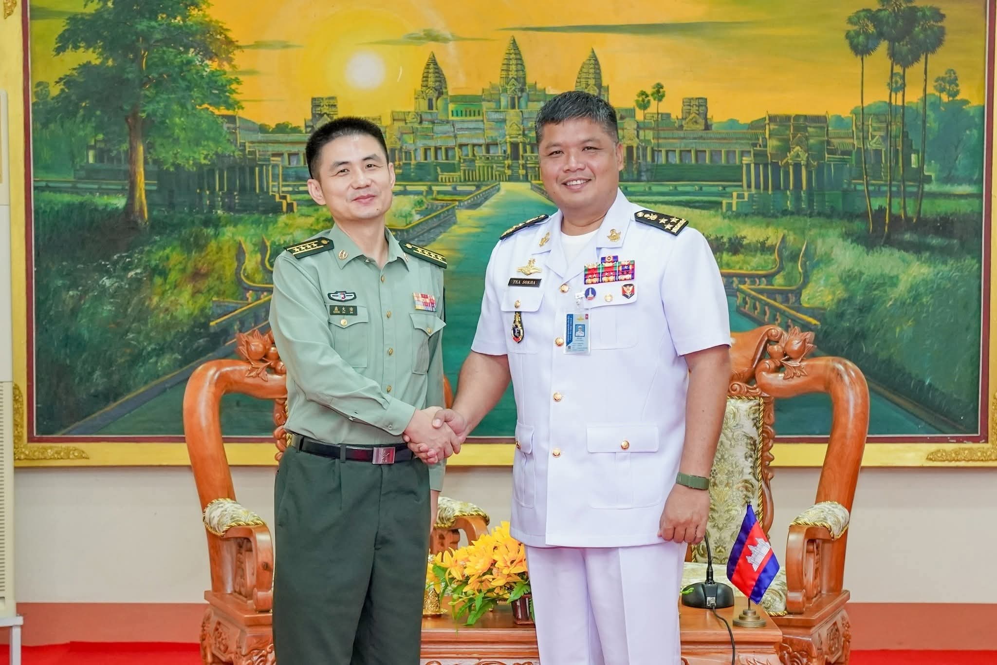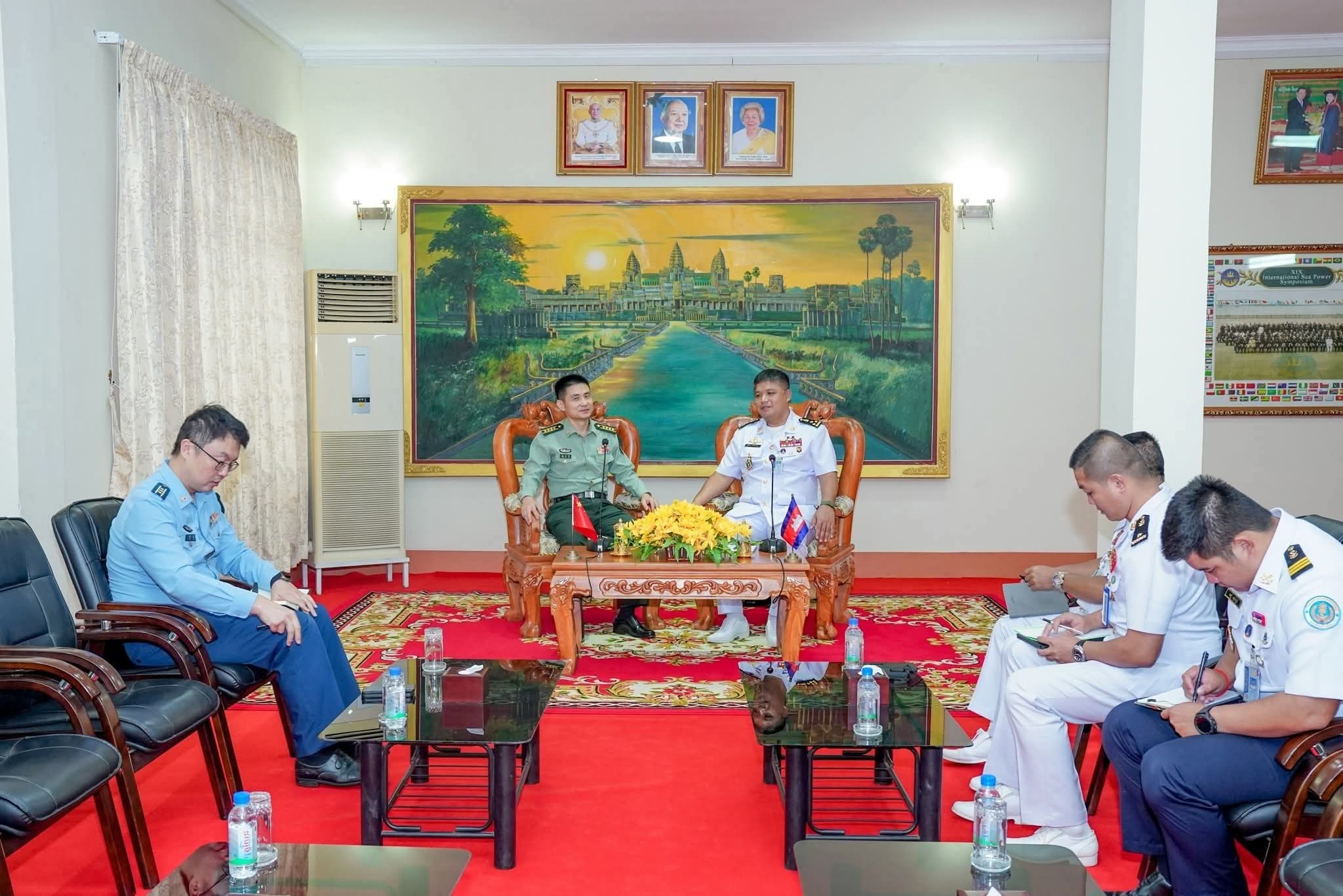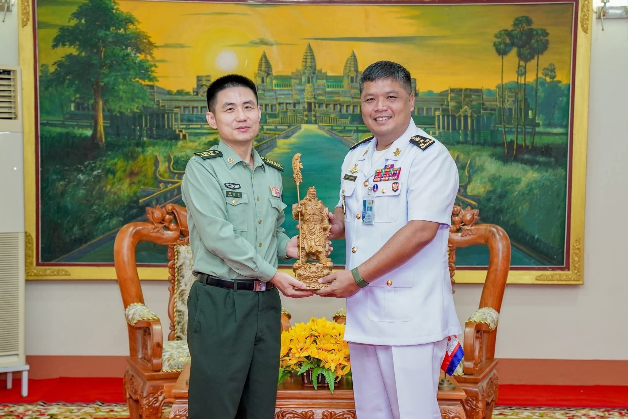 ឯកឧត្តម ឧត្តមនាវីឯក ទៀ សុខា មេបញ្ជាការកងទ័ពជើងទឹក អញ្ជើញទទួលជួបពិភាក្សាការងារ ជាមួយលោកវរសេនីយ៍ឯកពិសេស Sheng Dazhi នាយការិយាល័យអនុព័ន្ធយោធាចិន ប្រចាំព្រះរាជាណាចក្រកម្ពុជា នៅកងទ័ពជើងទឹក ============នៅព្រឹកថ្ងៃអង្គារ៍ ១៣រោច ខែកត្តិក ឆ្នាំម្សាញ់ សប្តស័ក ពុទ្ធសករាជ ២៥៦៩ ត្រូវនិងថ្ងៃទី១៨ ខែវិច្ឆិកា ឆ្នាំ២០២៥ ឯកឧត្តម ឧត្តមនាវីឯក ទៀ សុខា មេបញ្ជាការកងទ័ពជើងទឹក អនុប្រធានប្រចាំការ និងជាអគ្គលេខាធិការ នៃគណៈកម្មាធិការជាតិសន្តិសុខលម្ហសមុទ្រ បានអញ្ជើញទទួលជួបពិភាក្សាការងារ ជាមួយលោកវរសេនីយ៍ឯកពិសេស Sheng Dazhi នាយការិយាល័យអនុព័ន្ធយោធាចិនប្រចាំព្រះរាជាណាចក្រកម្ពុជា៕នៅមេបញ្ជាការដ្នានកងទ័ពជើងទឹក ជ្រោយចង្វារ ស្ថិតក្នុងជ្រោយចង្វារ រាជធានីភ្នំពេញ។