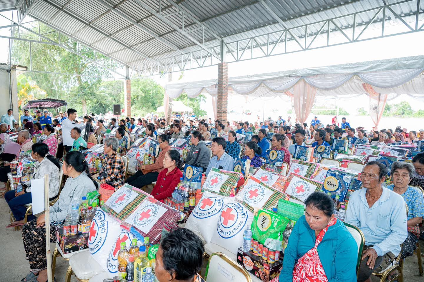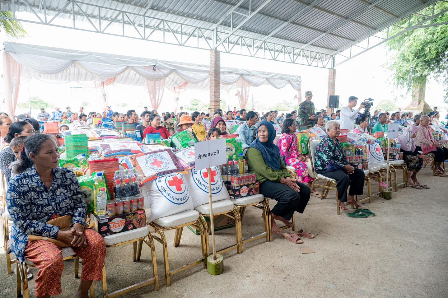 ឯកឧត្តម វ៉ី សំណាង បាននាំយកអំណោយមនុស្សធម៌របស់សម្ដេចកិត្តិព្រឹទ្ធបណ្ឌិត ចែកជូនបងប្អូនប្រជាពលរដ្ឋ ចំនួន ២៦៣គ្រួសារ ដែលទទួលរង ផលប៉ះពាល់ដោយទឹកជំនន់ នៅឃុំចំនួន៤ ក្នុងស្រុកបូរីជលសារ ==================នៅរសៀលថ្ងៃអាទិត្យ ទី០២ ខែវិច្ឆិកា ឆ្នាំ២០២៥ ឯកឧត្តម វ៉ី សំណាង អភិបាលខេត្ត និងប្រធានគណៈកម្មាធិការ សាខាកាកបាទក្រហមកម្ពុជា ខេត្តតាកែវ រួមជាមួយ ឯកឧត្តម លោកជំទាវ លោក លោកស្រី សមាជិក សមាជិការ គណៈកម្មាធិការសាខាកាកបាទក្រហមខេត្ត ស្រុក បាននាំយកអំណោយមនុស្សធម៌ របស់ សម្ដេចកិត្តិព្រឹទ្ធបណ្ឌិត ប៊ុន រ៉ានី ហ៊ុនសែន ប្រធានកាកបាទក្រហមកម្ពុជា មកចែកជូនបងប្អូនប្រជាពលរដ្ឋ ចំនួន ២៦៣គ្រួសារ ដែលទទួលរង ផលប៉ះពាល់ដោយទឹកជំនន់ នៅឃុំចំនួន៤ ក្នុងស្រុកបូរីជលសារ ខេត្តតាកែវ។អំណោយដែលបានប្រគល់ជូនក្នុងមួយគ្រួសារៗរួមមាន៖ អង្ករ២៥គីឡូក្រាម ត្រីខកំប៉ុង១យួរ មី១កេស ប្រេងឆា ១លីត្រ នំ១ប្រអប់ ទឹកត្រី៣ដប ទឹកស៊ីអុីវ៣ដប កន្ទេល១ មុង ១ ភួយ១ សារុង១ ក្រម៉ា១ និងថវិកាមួយចំនួន។