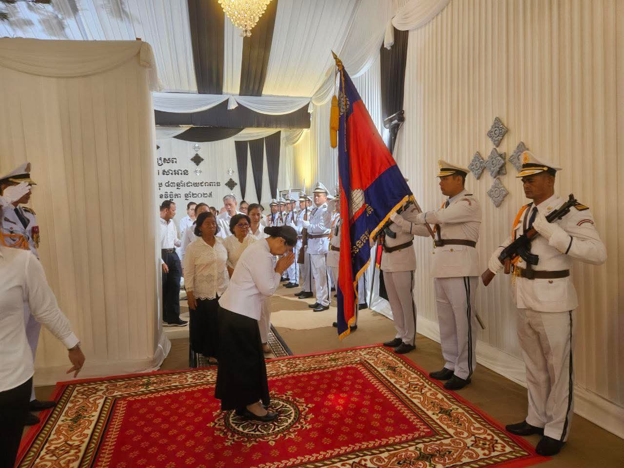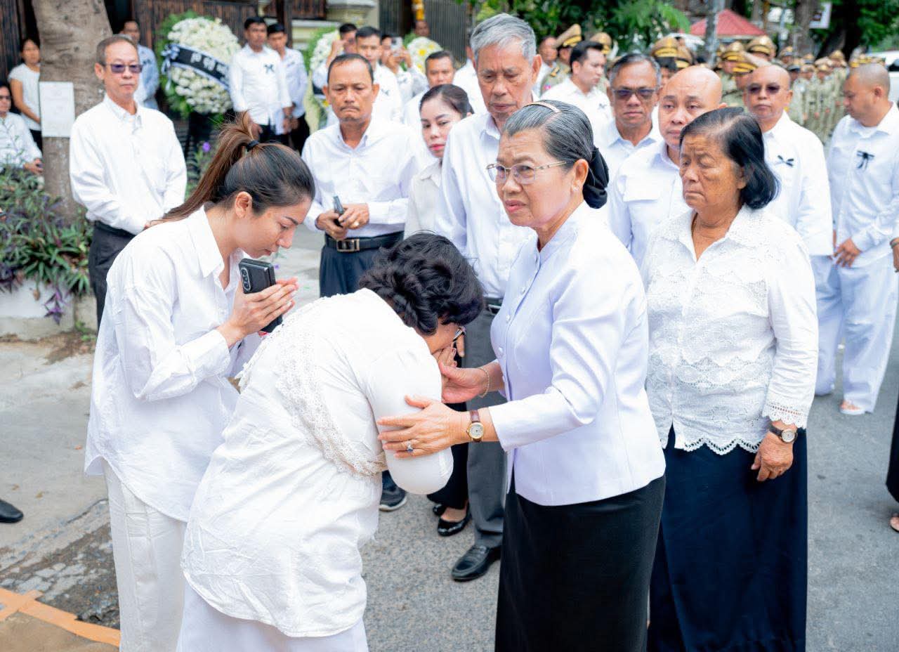 សម្តេចកិត្តិសង្គហបណ្ឌិត ម៉ែន សំអន ឧត្តមប្រឹក្សាផ្ទាល់ព្រះមហាក្សត្រ និងជាប្រធានក្រុមប្រឹក្សាជាតិរណសិរ្សសាមគ្គី អភិវឌ្ឍន៍មាតុភូមិកម្ពុជា អញ្ជើញចូលរួមបុណ្យសព លោកស្រី ខៀវ រ៉ាវី នៅក្នុងខណ្ឌដូនពេញ