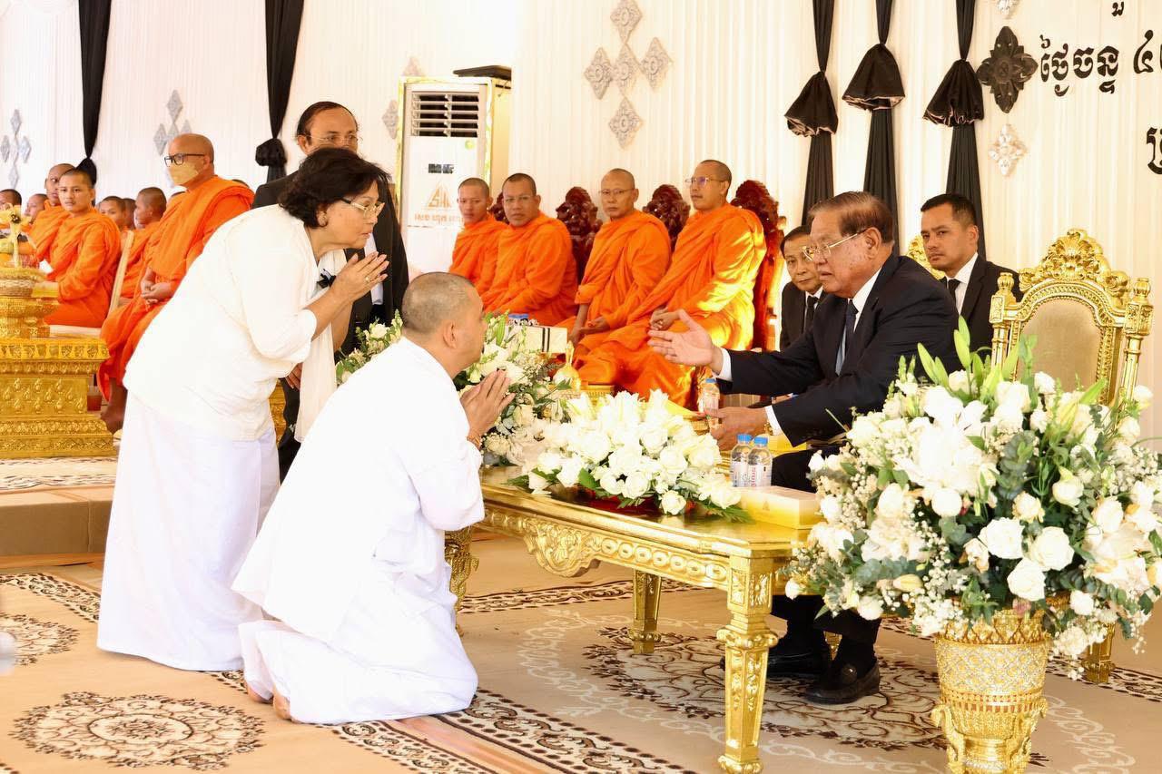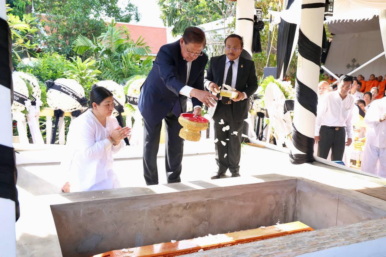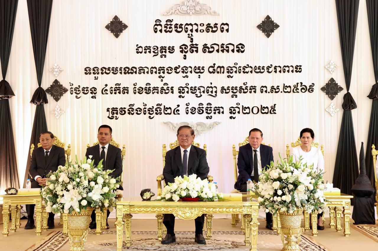 សម្តេចកិត្តិសង្គហបណ្ឌិត ម៉ែន សំអន ឧត្តមប្រឹក្សាផ្ទាល់ព្រះមហាក្សត្រ និងជាប្រធានក្រុមប្រឹក្សាជាតិរណសិរ្សសាមគ្គី អភិវឌ្ឍន៍មាតុភូមិកម្ពុជា អញ្ជើញចូលរួមបុណ្យសព លោកស្រី ខៀវ រ៉ាវី នៅក្នុងខណ្ឌដូនពេញ