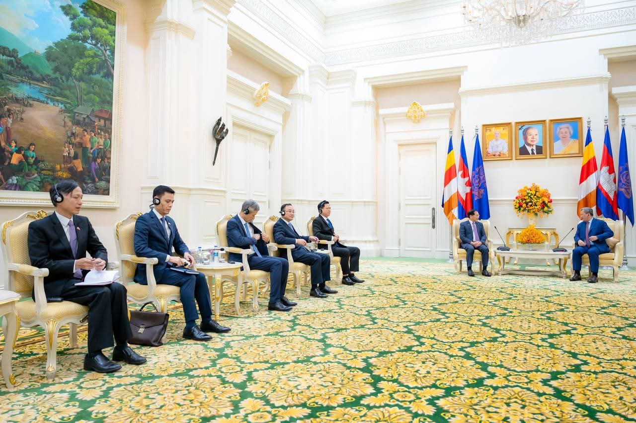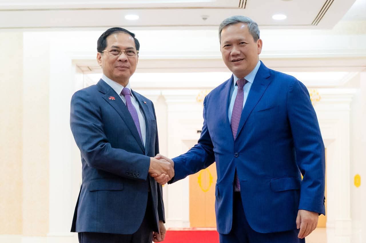 នារសៀលថ្ងៃទី២៨ ខែវិច្ឆិកា ឆ្នាំ២០២៥, សម្តេចមហាបវរធិបតី ហ៊ុន ម៉ាណែត នាយករដ្ឋមន្ត្រី នៃព្រះរាជាណាចក្រកម្ពុជា បានអនុញ្ញាតឱ្យ ឯកឧត្តម Bui Thanh Son ឧបនាយករដ្ឋមន្ត្រីនៃសាធារណរដ្ឋសង្គមនិយមវៀតណាម ចូលជួបសម្ដែងការគួរសម និងពិភាក្សាការងារ នៅវិមានសន្តិភាព។