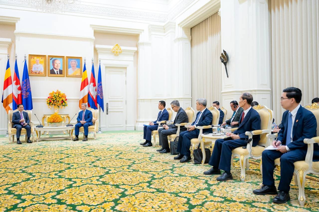 សម្ដេចបវរធិបតី និងឯកឧត្តមឧបនាយករដ្ឋមន្ត្រីនៃសាធារណរដ្ឋសង្គមនិយមវៀតណាម បានពិភាក្សាគ្នាអំពីការបន្តជំរុញទំនាក់ទំនង និងកិច្ចសហប្រតិបត្តិការទ្វេភាគី កម្ពុជា-វៀតណាម ឱ្យកាន់តែរឹងមាំ លើវិស័យសំខាន់ៗមួយចំនួន រួមមាន ជាអាទិ៍៖ សេដ្ឋកិច្ច, ពាណិជ្ជកម្ម, ការពារជាតិ និងសន្តិសុខ, អប់រំ, សុខាភិបាល, វប្បធម៌, ទេសចរណ៍, ក៏ដូចជាការតភ្ជាប់ហេដ្ឋារចនាសម្ព័ន្ធ នៃប្រទេសទាំងពីរ សម្រាប់ជាឧត្តមប្រយោជន៍របស់ប្រជាជន នៃប្រទេសទាំងពីរ៕