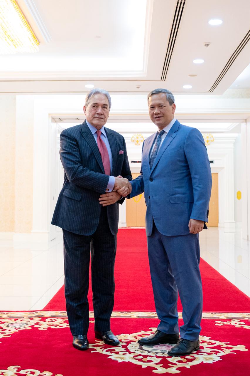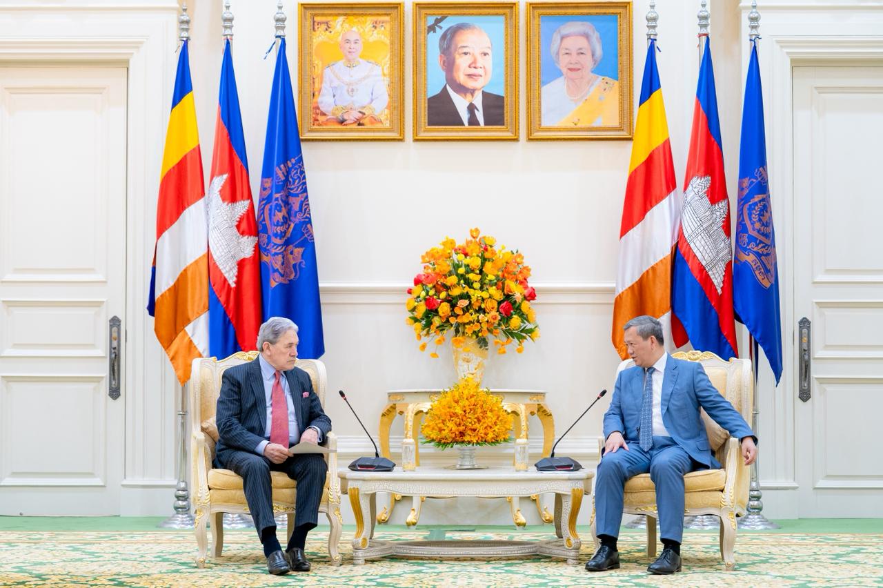 កម្ពុជា-នូវែលសេឡង់ បន្តពង្រឹង និងពង្រីកកិច្ចសហប្រតិបត្តិការទ្វេភាគីឱ្យកាន់តែរឹងមាំថែមទៀតនាព្រឹកថ្ងៃទី២៩ ខែវិច្ឆិកា ឆ្នាំ២០២៥, សម្តេចមហាបវរធិបតី ហ៊ុន ម៉ាណែត នាយករដ្ឋមន្ត្រី នៃព្រះរាជាណាចក្រកម្ពុជា បានអនុញ្ញាតឱ្យ ឯកឧត្តម Winston Peters រដ្ឋមន្ត្រីការបរទេសនូវែលសេឡង់ និង គណៈប្រតិភូចូលជួបសម្ដែងការគួរសម និងពិភាក្សាការងារ នៅវិមានសន្តិភាព។ឯកឧត្តមរដ្ឋមន្ត្រីការបរទេសនូវែលសេឡង់ បានថ្លែងអំណរគុណយ៉ាងជ្រាលជ្រៅជូនចំពោះ សម្ដេចបវរធិបតី ដែលបានចំណាយពេលដ៏មមាញឹក អនុញ្ញាតឱ្យរូបឯកឧត្តម និងគណៈប្រតិភូ បានចូលជួបសម្តែងការគួរសម និងពិភាក្សាការងារ។ ឯកឧត្តមរដ្ឋមន្ត្រី បានកោតសរសើរចំពោះការរីកចម្រើនគួរឱ្យកត់សម្គាល់របស់កម្ពុជា។ ជាមួយគ្នានេះ, ឯកឧត្តមរដ្ឋមន្ត្រី ក៏បានសម្ដែងនូវការពេញចិត្តចំពោះទំនាក់ទំនង និងកិច្ចសហប្រតិបត្តិការដ៏ល្អប្រសើរ នូវែលសេឡង់-កម្ពុជា និងបានគូសបញ្ជាក់ថា នូវែលសេឡង់ ជាដៃគូដ៏យូរអង្វែងរបស់កម្ពុជា ហេីយនូវែលសេឡង់នឹងបន្តគាំទ្រ ក៏ដូចជាការពង្រឹង និងពង្រីកទំនាក់ទំនង និងកិច្ចសហប្រតិបត្តិការទ្វេភាគី ឱ្យកាន់តែរឹងមាំថែមទៀត។ ឯកឧត្តមរដ្ឋមន្ត្រី ក៏បានអរគុណកម្ពុជា ដែលបានគាំទ្រដល់ការភ្ជាប់ទំនាក់ទំនង និងកិច្ចសហប្រតិបត្តិការរវាងនូវែលសេឡង់ និងអាស៊ាន ពិសេស ការគាំទ្រលើការបង្កើត “ភាពជាដៃគូយុទ្ធសាស្ត្រគ្រប់ជ្រុងជ្រោយរវាង អាស៊ាន និងនូវែលសេឡង់” ដែលបានប្រកាសជាផ្លូវការក្នុងកិច្ចប្រជុំកំពូលអាស៊ាន លើកទី៤៧ នៅប្រទេសម៉ាឡេស៊ី កាលពីខែតុលា ឆ្នាំ២០២៥ កន្លងទៅនេះ។ សម្ដេចបវរធិបតី បានសម្ដែងនូវសេចក្ដីសោមនស្សរីករាយ និងស្វាគមន៍យ៉ាងកក់ក្ដៅចំពោះដំណើរទស្សនកិច្ចរបស់ឯកឧត្តមរដ្ឋមន្ត្រី និងគណៈប្រតិភូមកកម្ពុជានាពេលនេះ និងបានគូសបញ្ជាក់ថា ដំណើរទស្សនកិច្ចនេះនឹងចូលរួមចំណែកដល់ការពង្រឹង និងពង្រីកកិច្ចសហប្រតិបត្តិការទ្វេភាគីឱ្យកាន់តែខ្លាំងក្លាថែមទៀត។ សម្ដេចបវរធិបតី បានថ្លែងអំណរគុណចំពោះរដ្ឋាភិបាល និងប្រជាជននូវែលសេឡង់ ដែលបានគាំទ្រដល់ដំណើរការស្វែងរកសុខសន្ដិភាពនៅកម្ពុជា និងបានចូលរួមចំណែកដល់ការអភិវឌ្ឍសង្គម-សេដ្ឋកិច្ចនៅកម្ពុជា ចាប់តាំងពីទសវត្សរ៍ ឆ្នាំ១៩៩០ រហូតមកដល់ពេលបច្ចុប្បន្ន។ សម្ដេចបវរធិបតី ក៏បានស្វាគមន៍ចំពោះលទ្ធផលជាផ្លែផ្កានៃកិច្ចពិគ្រោះយោបល់លើកទី៣ រវាងក្រសួងការបរទេសនៃប្រទេសទាំងពីរ ដែលបានរៀបចំឡើងកាលពីខែសីហា កន្លងទៅ និងលើកទឹកចិត្តដល់ក្រសួងការបរទេសនៃប្រទេសទាំងពីរបន្តនូវយន្តការនេះឱ្យបានទៀងទាត់ ដោយ សម្ដេចបវរធិបតី ជឿជាក់ថា យន្តការនេះនឹងរួមចំណែកកាន់តែច្រើន ដល់ការពង្រឹង និងពង្រីកកិច្ចសហ-ប្រតិបត្តិការទ្វេភាគីឱ្យកាន់តែ