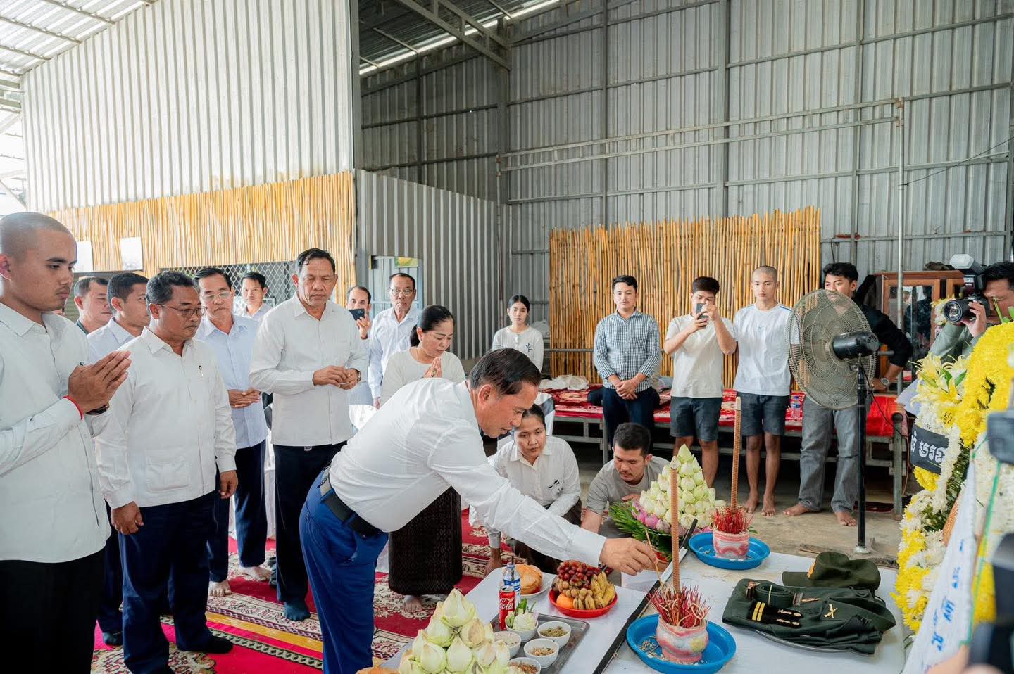 សម្តេចកិត្តិសង្គហបណ្ឌិត ម៉ែន សំអន ឧត្តមប្រឹក្សាផ្ទាល់ព្រះមហាក្សត្រ និងជាប្រធានក្រុមប្រឹក្សាជាតិរណសិរ្សសាមគ្គី អភិវឌ្ឍន៍មាតុភូមិកម្ពុជា អញ្ជើញចូលរួមបុណ្យសព លោកស្រី ខៀវ រ៉ាវី នៅក្នុងខណ្ឌដូនពេញ