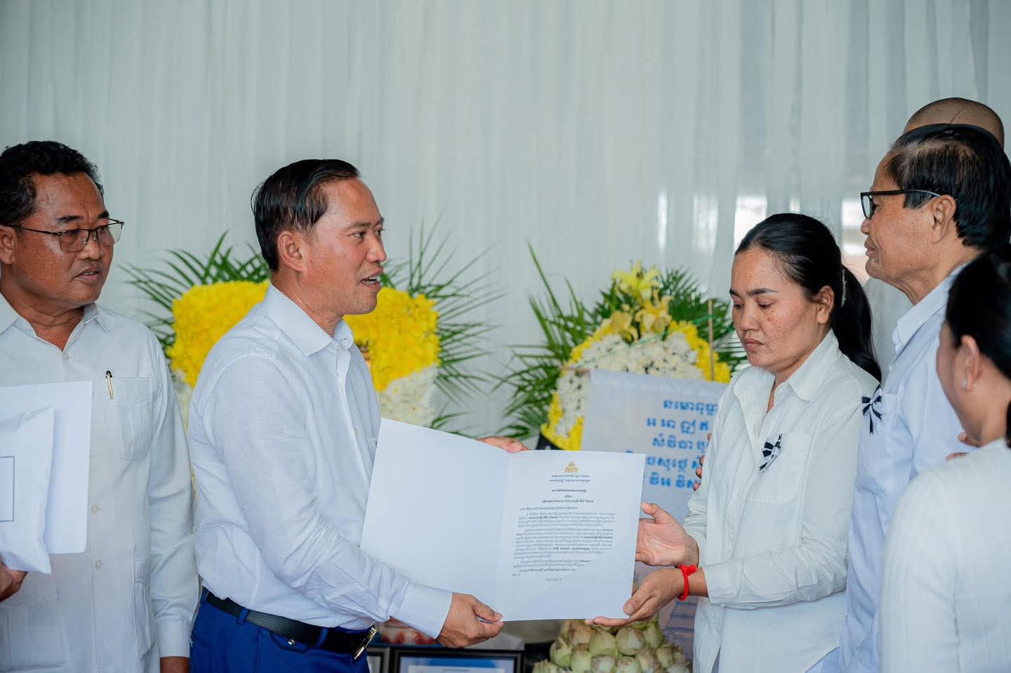 ឯកឧត្តម វ៉ី សំណាង បានដឹកនាំគណៈប្រតិភូរដ្ឋបាលខេត្តតាកែវ នាំយកសាររំលែកមរណៈទុក្ខ និងថវិកា របស់សម្ដេចមហាបវរធិបតី ហ៊ុន ម៉ាណែត ប្រគល់ក្រុមគ្រួសារសព លោកពលបាលឯក សុឹម ពិសាល នៅស្រុកព្រៃកប្បាស =================ខេត្តតាកែវ៖ នារសៀលថ្ងៃអាទិត្យ ទី៣០ ខែវិច្ឆិកា ឆ្នាំ២០២៥ ឯកឧត្តម វ៉ី សំណាង អភិបាល នៃគណៈអភិបាលខេត្តតាកែវ បានដឹកនាំគណៈប្រតិភូរដ្ឋបាលខេត្ត នាំយកសាររំលែកមរណៈទុក្ខ និងថវិកា របស់សម្ដេចមហាបវរធិបតី ហ៊ុន ម៉ាណែត នាយករដ្ឋមន្រ្តី នៃព្រះរាជាណាចក្រកម្ពុជា ប្រគល់ក្រុមគ្រួសារសព លោកពលបាលឯក សុឹម ពិសាល នាយទាហ៊ានរងកងវិស្វកម្ម សម្តេចតេជោ ហ៊ុន សែន បញ្ជាការដ្ឋានអង្គរក្ស បានទទួលមរណៈភាពកាលពីថ្ងៃព្រហស្បតិ៍ ៧កើត ខែមិគសិរ ឆ្នាំម្សាញ់ សប្តស័ក ពុទ្ធសករាជ ២៥៦៩ ត្រូវនឹងថ្ងៃទី២៧ ខែវិច្ឆិកា ឆ្នាំ២០២៥ ក្នុងជន្មាយុ ២៤ឆ្នាំ ដោយឧបទ្ទវហេតុ នៅសមរភូមិមុខ។ សពតម្កល់ធ្វើពិធីបុណ្យតាមប្រពៃណីស្ថិតនៅភូមិចារ ឃុំចារ ស្រុកព្រៃកប្បាស ខេត្តតាកែវ។