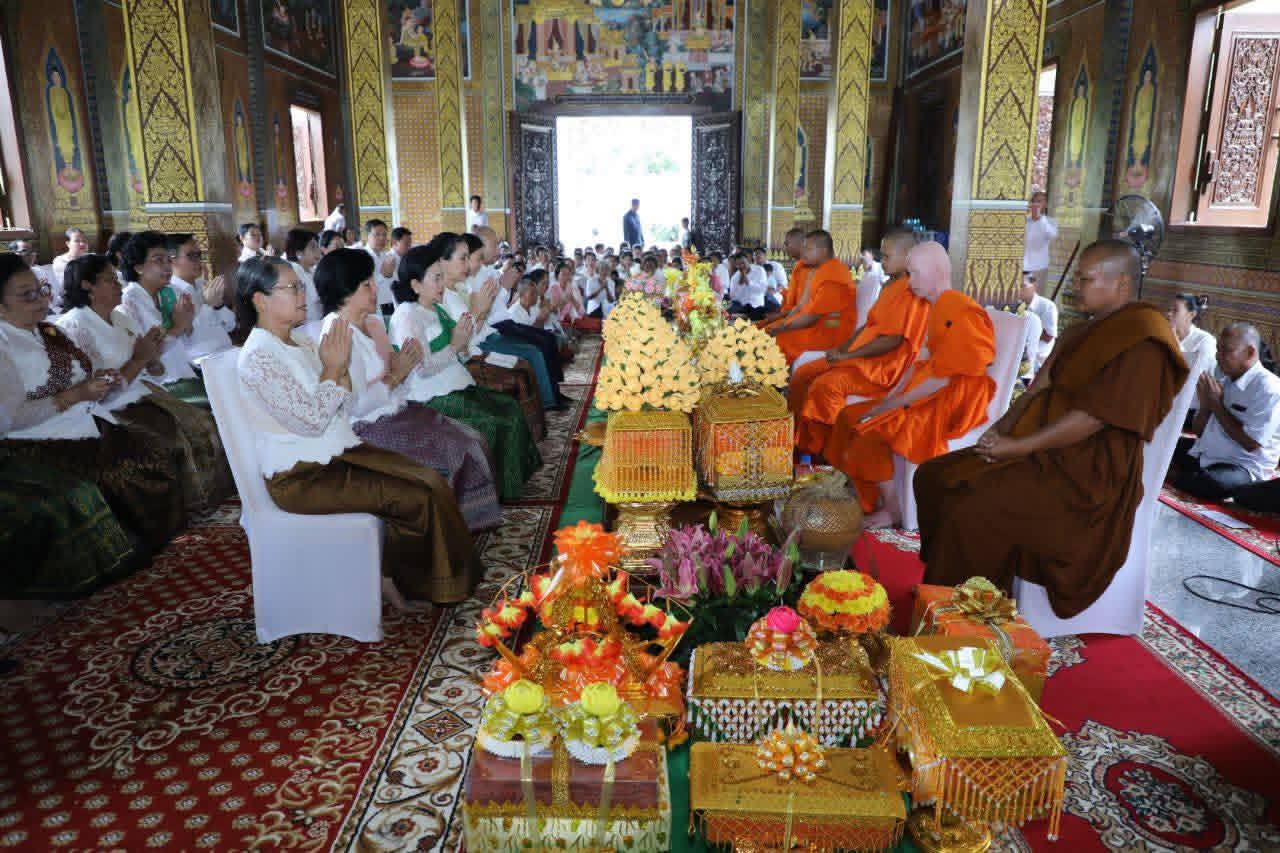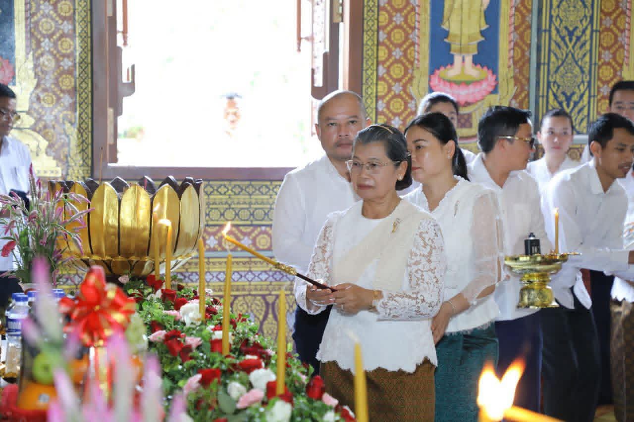 សម្តេចកិត្តិសង្គហបណ្ឌិត ម៉ែន សំអន ឧត្តមប្រឹក្សាផ្ទាល់ព្រះមហាក្សត្រ និងជាប្រធានក្រុមប្រឹក្សាជាតិរណសិរ្សសាមគ្គី អភិវឌ្ឍន៍មាតុភូមិកម្ពុជា អញ្ជើញចូលរួមបុណ្យសព លោកស្រី ខៀវ រ៉ាវី នៅក្នុងខណ្ឌដូនពេញ
