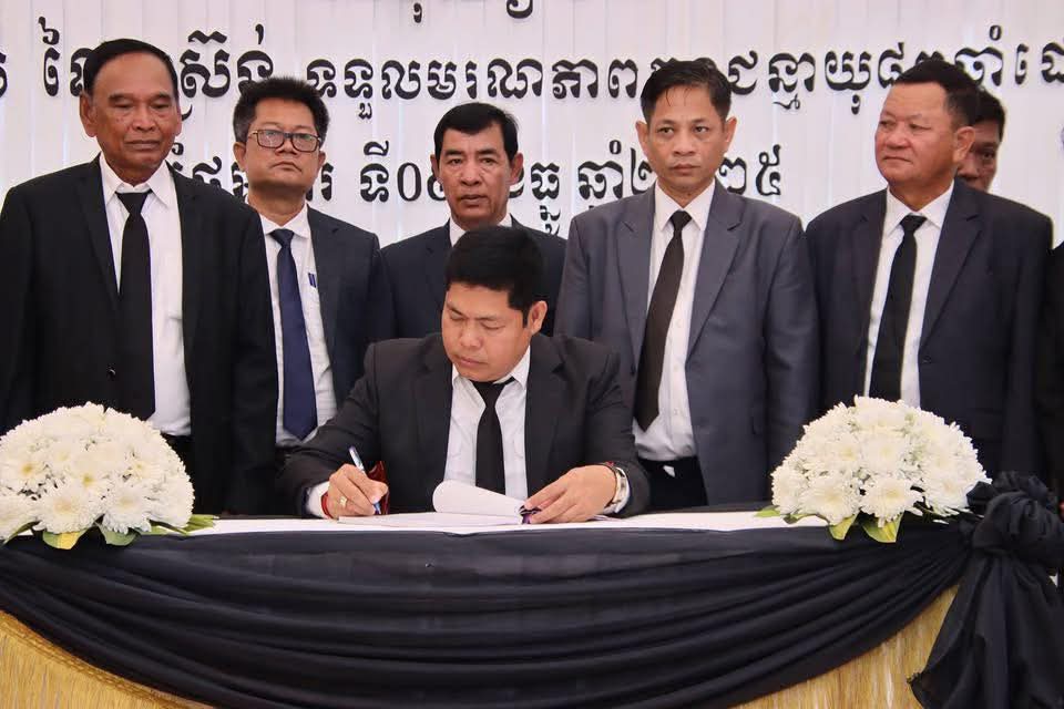 លោក ប៊ិន ឡាដា អភិបាលស្រុកស្រីសន្ធរ អញ្ជើញដឹកនាំសហការី ដាក់កម្រងផ្កាគោរពវិញ្ញាណក្ខន្ធសពលោកជំទាវ លី ណៃស្រ៊ន ដែលត្រូវជាភរិយាឯកឧត្តម ខ្លូត ផន ប្រធានក្រុមប្រឹក្សាខេត្តកំពង់ចាម ស្ថិតនៅក្រុងកំពង់ចាម=================នៅព្រឹកថ្ងៃពុធ ៥រោច ខែមិគសិរ ឆ្នាំម្សាញ់ សប្តស័ក ពុទ្ធសករាជ ២៥៦៩ ត្រូវនឹងថ្ងៃទី១០ ខែធ្នូ ឆ្នាំ២០២៥ លោក ប៊ិន ឡាដា អភិបាល នៃគណៈអភិបាលស្រុកស្រីសន្ធរ និងលោក ទុំ ដាំ ប្រធានក្រុមប្រឹក្សាស្រុក បានដឹកនាំសមាជិកក្រុមប្រឹក្សាស្រុក និងអភិបាលរងស្រុក បានអញ្ជើញដាក់កម្រងផ្កាគោរពវិញ្ញាណក្ខន្ធសពលោកជំទាវ លី ណៃស្រ៊ន ដែលត្រូវជាភរិយាឯកឧត្តម ខ្លូត ផន ប្រធានក្រុមប្រឹក្សាខេត្តកំពង់ចាម និងត្រូវជាម្ដាយបង្កើតរបស់ឯកឧត្ដម ខ្លូត ចិន្តា អភិបាលរង នៃគណៈអភិបាលខេត្តកំពង់ចាម។ពិធីបុណ្យសពប្រព្រឹត្តទៅនៅគេហដ្ឋាន ភូមិតាណេង សង្កាត់សំបួរមាស ក្រុងកំពង់ចាម។