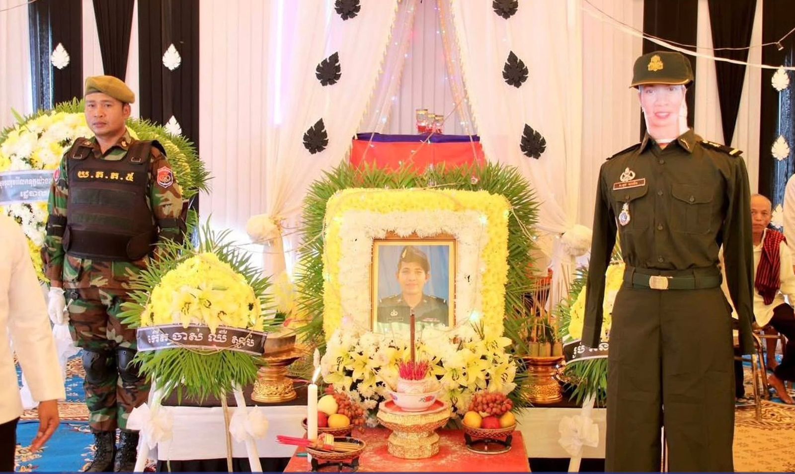 ឯកឧត្ដមសន្តិបណ្ឌិត សុខ ផល ប្រធានក្រុមការងាររាជរដ្នាភិបាលចុះជួយមូលដ្នានស្រុកបាណន់ អញ្ចើញដឹកនាំប្រតិភូគោរពវិញ្ញាណក្ខន្ធសព លោកស្រីអនុសេនីយ៍ទោ មុត សាវើន បានពលីជីវិតដើម្បីបុព្វហេតុការពារជាតិ មាតុភូមិ ================(ស្រុកបាណន់)៖នៅថ្ងៃសុក្រ ៧រោច ខែមិគសិរ ឆ្នាំម្សាញ់ សប្តស័ក ពុទ្ធសករាជ ២៥៦៩ ត្រូវនឹងថ្ងៃទី១២ ខែធ្នូ ឆ្នាំ២០២៥ ឯកឧត្ដមសន្តិបណ្ឌិត សុខ ផល រដ្នលេខាធិការក្រសួងមហាផ្ទៃ និងជាប្រធានក្រុមការងាររាជរដ្នាភិបាលចុះជួយមូលដ្នានស្រុកបាណន់ បានអញ្ចើញដឹកនាំប្រតិភូគោរពវិញ្ញាណក្ខន្ធសពលោកស្រីអនុសេនីយ៍ទោ មុត សាវើន អត្តលេខ ០៥៤៣២២ នាយទាហានរង នៃវរសេនាតូចរថក្រោះលេខ ៦៧ យោធភូមិភាគទី៥ ខណៈលោកស្រី បានពលីជីវិតដើម្បីបុព្វហេតុការពារជាតិ មាតុភូមិក្នុងជន្មាយុ ៤២ឆ្នាំ ហេីយសពក្រុមគ្រួសារកំពុងធ្វេីបុណ្យនៅលំនៅដ្ឋាន ស្ថិតក្នុងឃុំឈើទាល ស្រុកបាណន់ ខេត្តបាត់ដំបង៕ឯកឧត្តមសន្តិបណ្ឌិត សុខ ផល រដ្ឋលេខាធិការក្រសួងមហាផ្ទៃ និងជាប្រធានក្រុម ការងារចុះមូលដ្ឋានស្រុកបាណន់ បានចាត់ទុកថា ការពលីជីវិតរបស់លោកស្រី អនុសេនីយ៍ទោ មុត សាវើន គឺជាការបាត់ បង់វីរៈយុទ្ធនារីកងទ័ពជាតិកម្ពុជាដ៏ឆ្នើមមួយរូប នៅក្នុងបុព្វហេតុការពារបូរណភាពទឹកដី ដែលបង្កសង្រ្គាមដោយពួកទាហានសៀមឈ្លានពាន យ៉ាងកំរោលមកលើដែនអធិបតេយ្យភាពកម្ពុជា ។