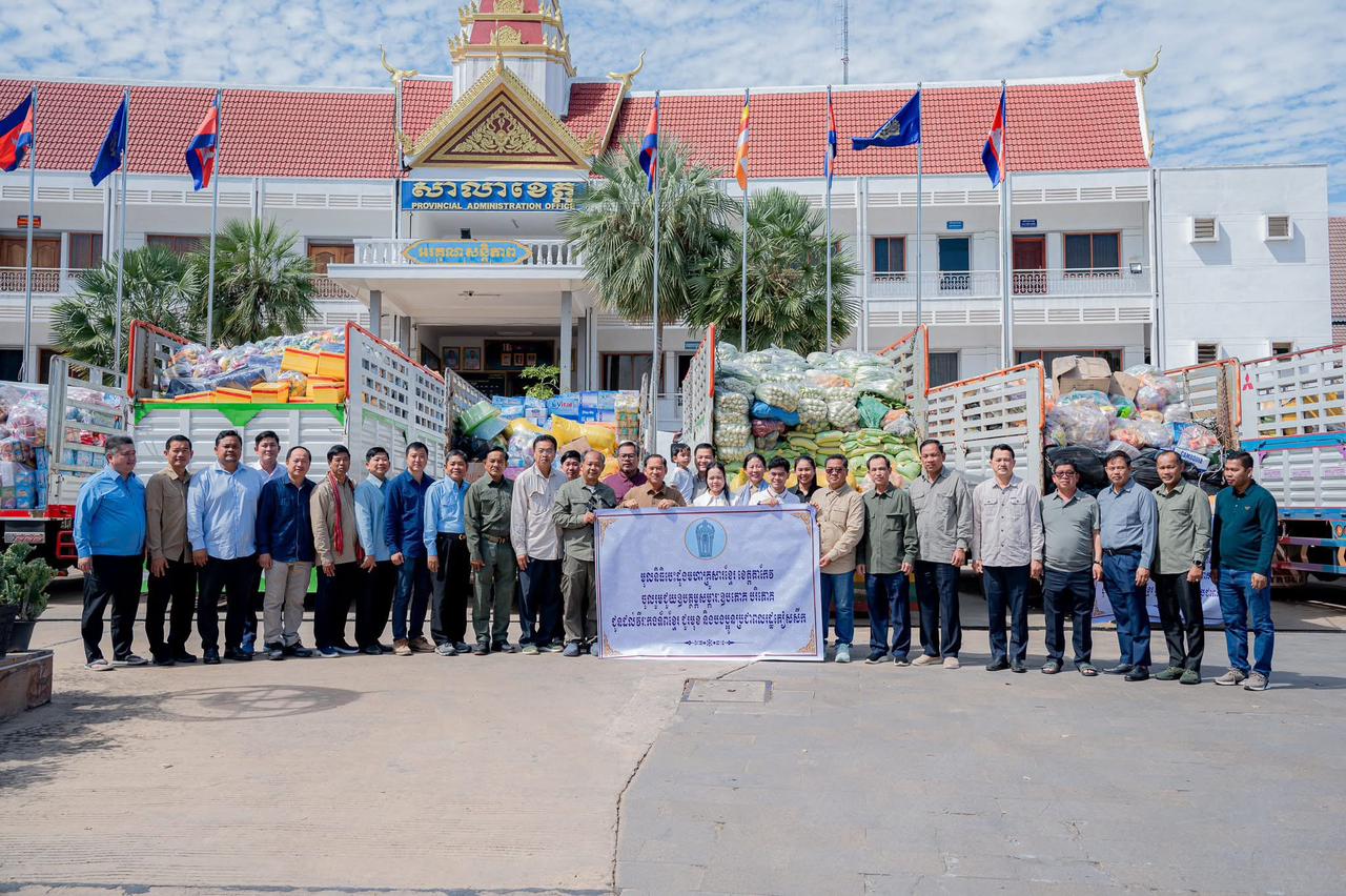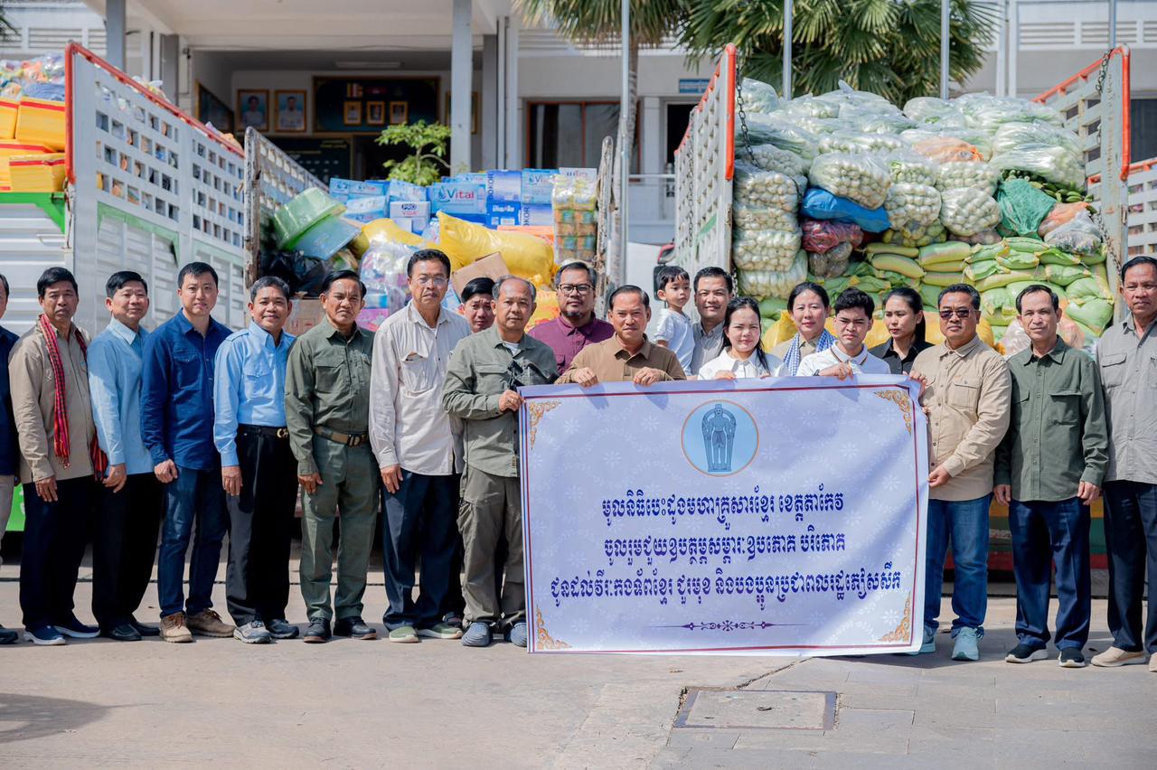 ឆ្លៀតក្នុងឱកាសដ៏មមាញឹក ដែលប្រទេសជាតិកំពុងកើតមានបញ្ហា ជាមួយពួកចោរសៀមឈ្លានពាន និងដើម្បី បង្កើនការសាមគ្គីភាពខ្មែរតែមួយ នាព្រឹកថ្ងៃសៅរ៍ ទី១៣ ខែធ្នូ ឆ្នាំ២០២៥ ឯកឧត្តម វ៉ី សំណាង អភិបាល នៃគណៈអភិបាលខេត្តតាកែវ បានដឹកនាំគណប្រតិភូរដ្ឋបាលខេត្តតាកែវ នាំយកមូលនិធិបេះដូងមហាគ្រួសារខ្មែរ ខេត្តតាកែវ ប្រគល់ជូន ឯកឧត្តម អ៊ុំ រាត្រី អភិបាលខេត្តបន្ទាយមានជ័យ សម្រាប់ចូលរួមជួយឧបត្ថម្ភសម្ភារៈ គ្រឿងឧបភោគ បរិភោគ ជូនដល់វីរកងទ័ពខ្មែរជួរមុខ និងបងប្អូនប្រជាពលរដ្ឋភៀសសឹក ។