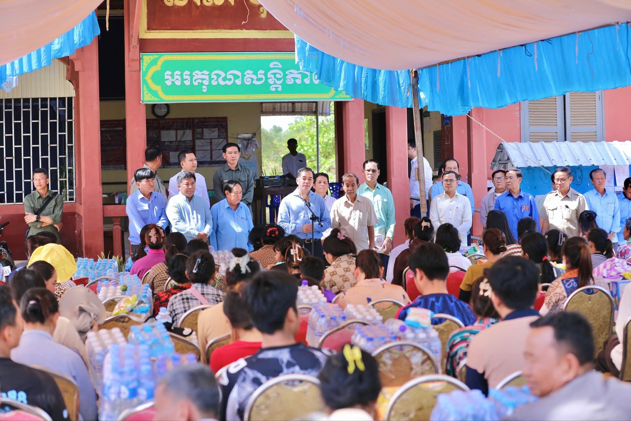 ឯកឧត្តមសន្តិបណ្ឌិត នេត សាវឿន ឧបនាយករដ្ឋមន្រ្តី អញ្ជើញអមដំណើរសម្តេចមហាបវរធិបតី ហ៊ុន ម៉ាណែត អញ្ជើញជាអធិបតីភាពដ៏ខ្ពង់ខ្ពស់ ក្នុងពិធីជួបសំណេះសំណាល សួរសុខទុក្ខ និងចែកអំណោយ ជូនប្រជាពលរដ្ឋភៀសសឹក ស្ថិតនៅស្រុកអូរជ្រៅ ខេត្តបន្ទាយមានជ័យ