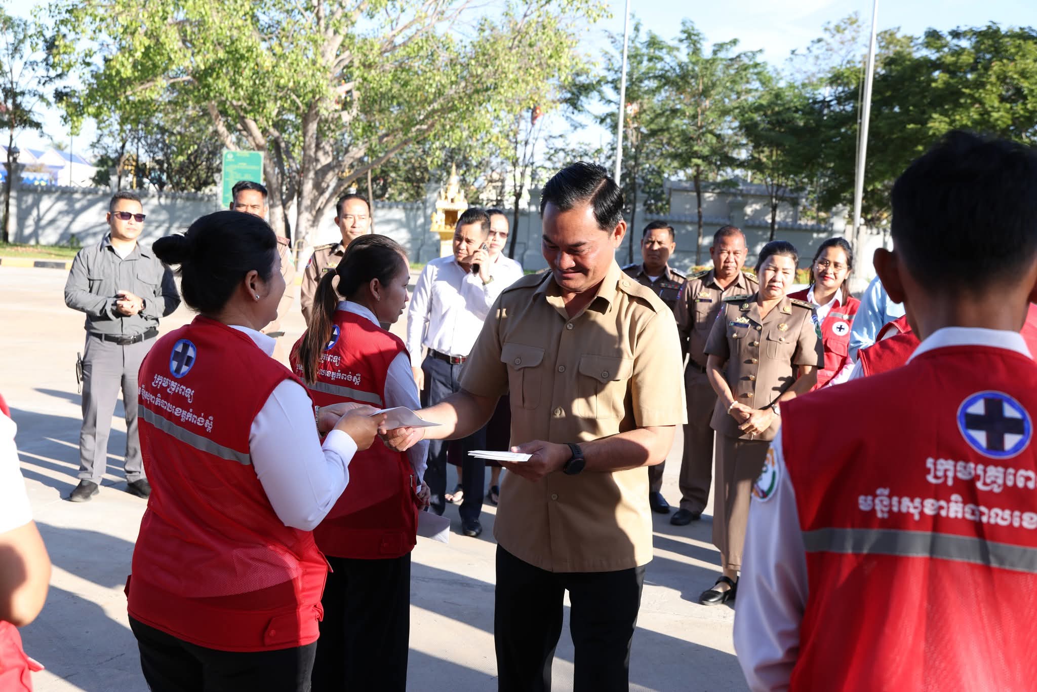 ឯកឧត្តមបណ្ឌិត ជាម ច័ន្ទសោភ័ណ និងលោកជំទាវ អញ្ជើញសំណេះសំណាល និងជូនដំណើរក្រុមគ្រូពេទ្យ នៃមន្ទីរពេទ្យបង្អែកខេត្តកំពង់ស្ពឺ ដែលត្រូវបំពេញបេសកកម្មក្នុងការពិនិត្យ និងព្យាបាល ជំងឺជូនដល់កងទ័ពជួរមុខ និងជនភៀសសឹក នៅទិសខេត្តកោះកុង ==============(កំពង់ស្ពឺ)៖នៅព្រឹកថ្ងៃពុធ ១២ រោច ខែមិគសិរ ឆ្នាំម្សាញ់ សប្តស័ក ពុទ្ធសករាជ ២៥៦៩ ត្រូវនឹងថ្ងៃទី១៧ ខែធ្នូ ឆ្នាំ២០២៥ ឯកឧត្តមបណ្ឌិត ជាម ច័ន្ទសោភ័ណ អភិបាល នៃគណៈអភិបាលខេត្ត និងលោកជំទាវ បានអញ្ជើញក្នុងពិធីសំណេះសំណាល និងជូនដំណើរក្រុមគ្រូពេទ្យនៃមន្ទីរពេទ្យបង្អែកខេត្តកំពង់ស្ពឺ ដែលត្រូវបំពេញបេសកកម្មក្នុងការពិនិត្យ និងព្យាបាល ជំងឺជូនដល់កងទ័ពជួរមុខ និងជនភៀសសឹក នៅទិសខេត្តកោះកុង ដែលរងគ្រោះដោយសារសង្រ្គាមឈ្លានពានរបស់ប្រទេសថៃ។