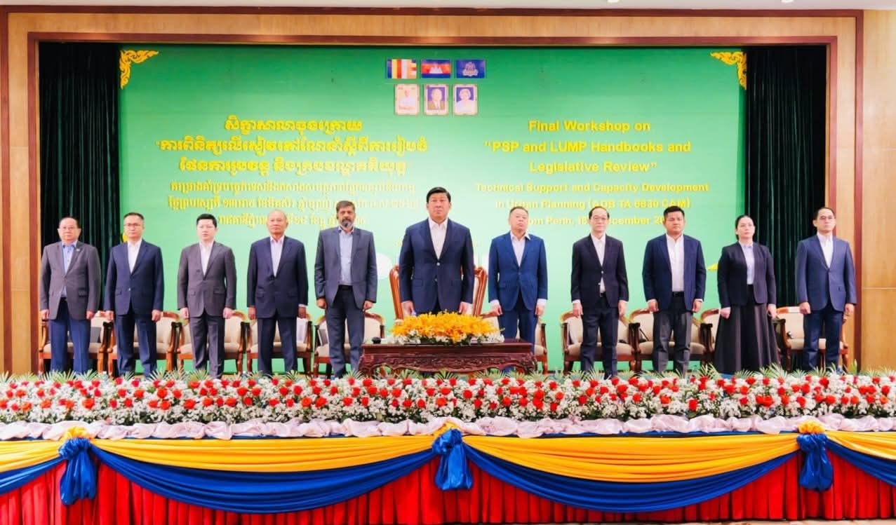 ឯកឧត្តម ឧបនាយករដ្នមន្ត្រី សាយ សំអាល់ អញ្ចើញជាអធិបតីភាពដ៏ខ្ពង់ខ្ពស់ក្នុងពិធីសិក្ខាសាលាបិទបញ្ចប់ ការពិនិត្យសៀវភៅណែនាំស្តីពីការរៀបចំផែនការរូបវន្ត និងក្របខណ្ឌគតិយុត្ត នៅសណ្ឋាគារភ្នំពេញ===============(ភ្នំពេញ)៖នៅថ្ងៃពុធ ១២រោច ខែមិគសិរ ឆ្នាំម្សាញ់ សប្តស័ក ពុទ្ធសករាជ ២៥៦៩ ត្រូវនឹងថ្ងៃទី១៧ ខែធ្នូ ឆ្នាំ២០២៥ ឯកឧត្តម សាយ សំអាល់ ឧបនាយករដ្នមន្ត្រី រដ្នមន្ត្រីក្រសួងរៀបចំដែនដី នគរូបនីយកម្ម និងសំណង់ បានអញ្ចើញជាអធិបតីភាពដ៏ខ្ពង់ខ្ពស់ក្នុងពិធីសិក្ខាសាលាបិទបញ្ចប់ ការពិនិត្យសៀវភៅណែនាំស្តីពីការរៀបចំផែនការរូបវន្ត និងក្របខណ្ឌគតិយុត្ត។ ពិធីសិក្ខាសាលានេះដោយមានការចូលរួមពី តំណាងក្រសួង ស្ថាប័ន តំណាងរដ្ឋបាលរាជធានី ខេត្ត ដៃគូអភិវឌ្ឍន៍ និងមន្ត្រីពាក់ព័ន្ធជាច្រើនរូប ស្ថិតនៅសណ្ឋាគារភ្នំពេញ។