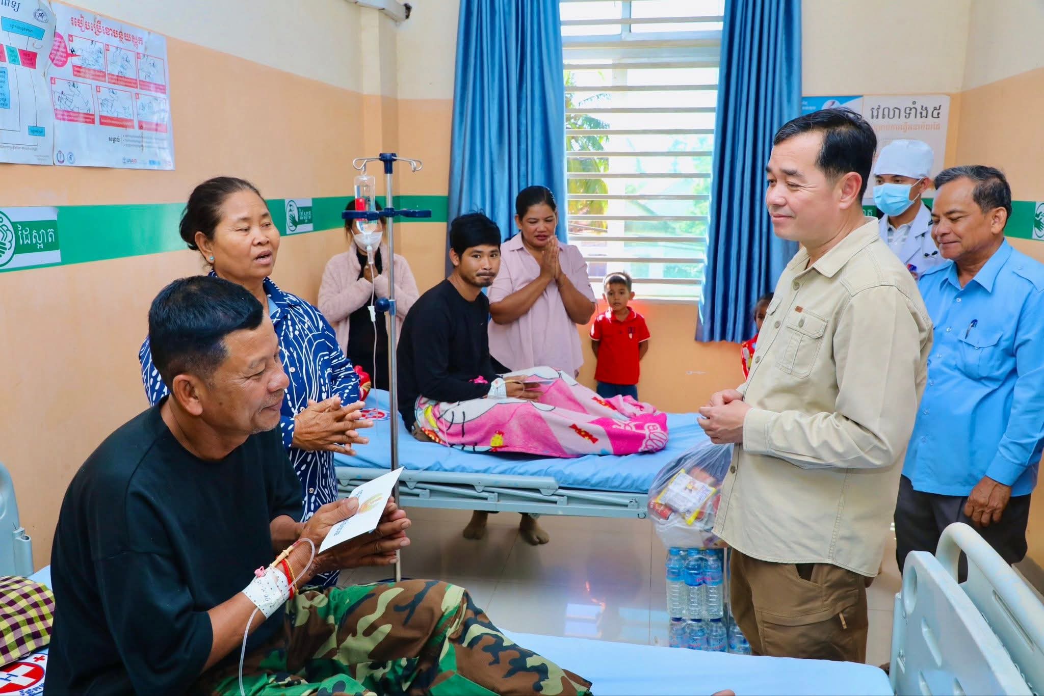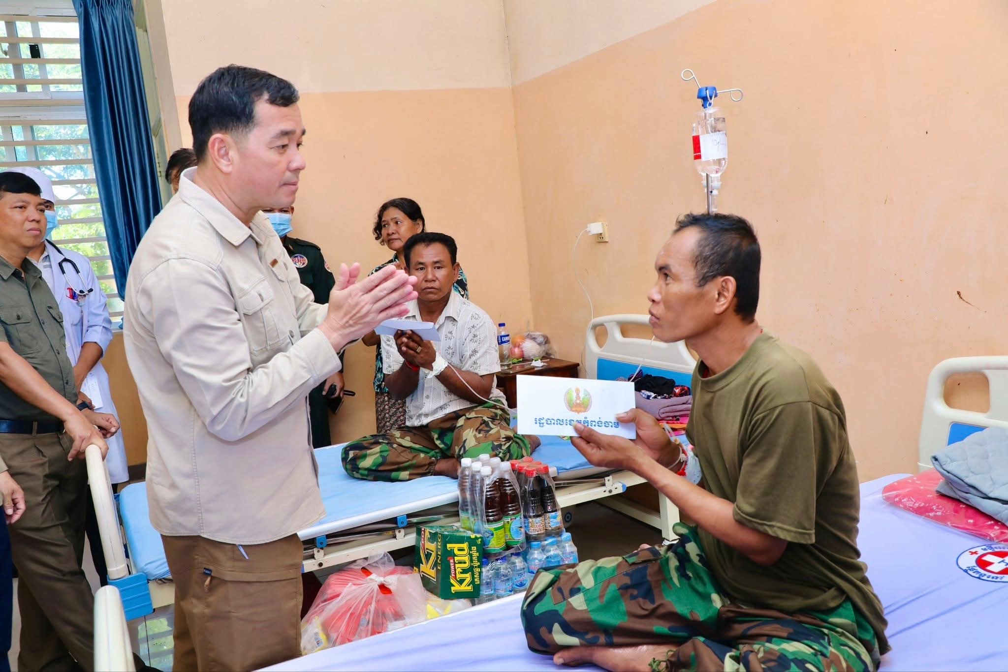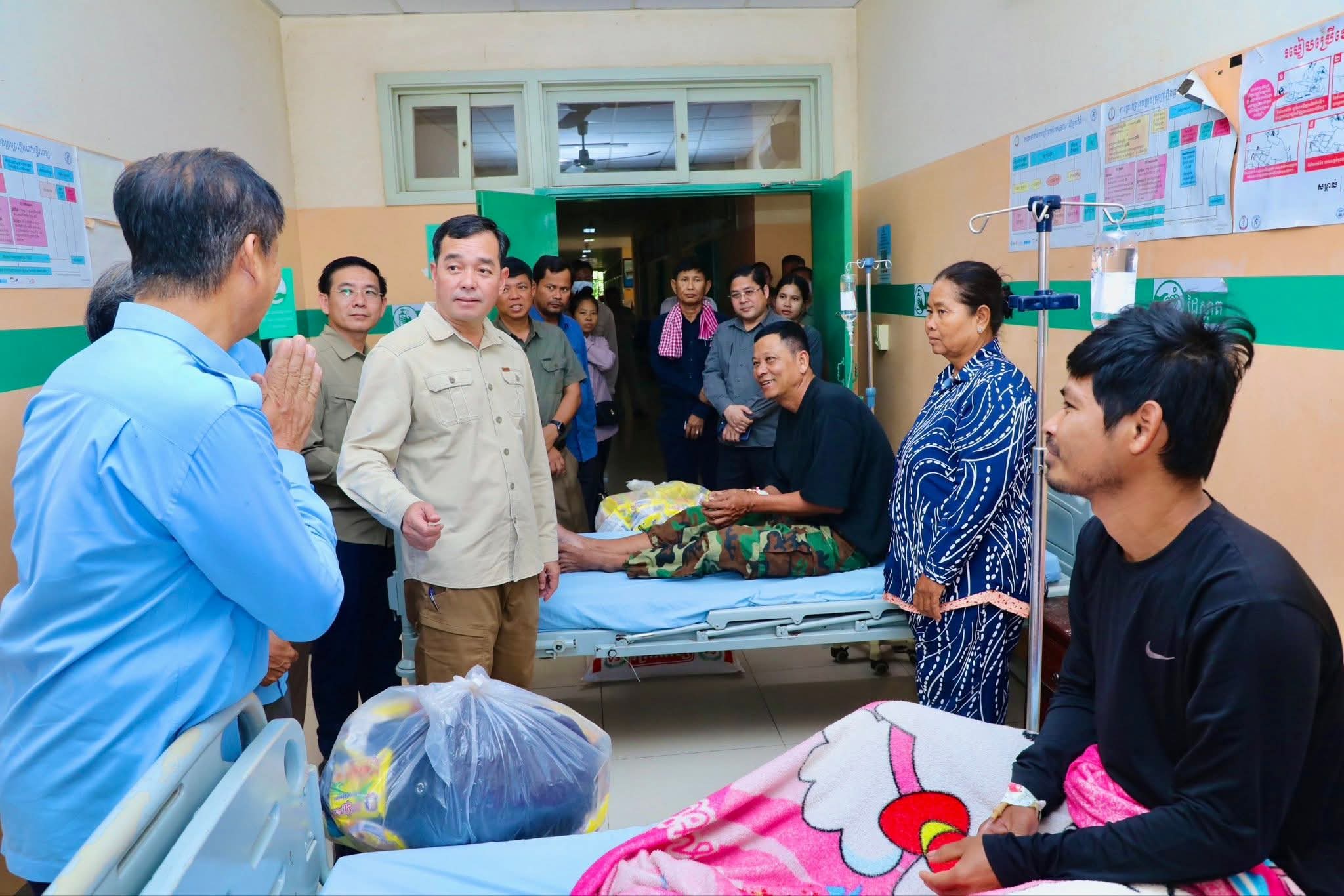ឯកឧត្តម អ៊ុន ចាន់ដា អភិបាលខេត្តកំពង់ចាម អញ្ជើញចុះសួរសុខទុក្ខ និងនាំអំណោយផ្តល់ជូន វីរកងទ័ពជួរមុខ កំពុងសម្រាកព្យាបាលជំងឺនៅមន្ទីរពេទ្យបង្អែក ស្រុកជើងព្រៃ (កំពង់ចាម)៖ នៅព្រឹកថ្ងៃទី២១ ខែធ្នូ ឆ្នាំ ២០២៥ ឯកឧត្តម អ៊ុន ចាន់ដា អភិបាលនៃគណៈអភិបាលខេត្តកំពង់ចាម បានដឹកនាំក្រុមការងារខេត្ត អាជ្ញាធរមូលដ្ឋាន អញ្ជើញចុះសួរសុខទុក្ខ និងនាំអំណោយផ្ដល់ជូនវីរកងទ័ព ៦រូប ដែលកំពុងសម្រាកព្យាបាលជំងឺ នៅមន្ទីរពេទ្យបង្អែកស្រុកជើងព្រៃ។ វីរកងទ័ពដែលកំពុងសម្រាកព្យាបាលជំងឺទាំង ៦រូប រួមមាន ៖១ -ឈោ្មះ ឈាង អូន ភេទប្រុស អាយុ ៥៤ ឆ្នាំ ២ -ឈ្មោះ ញ៉ុក វិន ភេទប្រុស អាយុ ៥៤ឆ្នាំ៣ -ឈ្មោះ ណៃ នាង អាយុ ភេទប្រុស ៥៦ ឆ្នាំ ៤ -ឈ្មោះ ចិន ថន ភេទប្រុស អាយុ ៥៤ ឆ្នាំ ៥ -ឈ្មោះ ឈឿន គីម ភេទប្រុស អាយុ ៣១ ឆ្នាំ ៦ -ឈ្មោះ កំសត់ កូប ភេទប្រុស អាយុ ៣៥ ឆ្នាំសូមបញ្ជាក់ថា វីរកងទ័ព ទាំង ៦រូប ខាងលើ បម្រើការនៅអង្គភាពយុទ្ធភូមិភាគទី២ ប្រចាំការនៅទិសប្រាសាទខ្នារ និងប្រាសាទតាក្របី ខេត្តឧត្តរមានជ័យ ក្នុងបេសកកម្មការពារអធិបតេយ្យភាព បូរណភាពទឹកដីពីចោរឈ្លានពាន-ថៃ។ នាឱកាសនោះដែរ ឯកឧត្តម អ៊ុន ចាន់ដា អភិបាលខេត្តកំពង់ចាម ពាំនាំនូវការផ្តាំផ្ញើសាកសួរសុខទុក្ខពី សម្តេចតេជោ ហ៊ុន សែន ប្រធានព្រឹទ្ធសភា សម្តេចកិត្តិព្រឹទ្ធបណ្ឌិត ប៊ុន រ៉ានី ហ៊ុនសែន និងសម្តេចមហាបវរធិបតី ហ៊ុន ម៉ាណែត នាយករដ្ឋមន្ត្រីនៃព្រះរាជាណាចក្រកម្ពុជា លោកបណ្ឌិត ពេជ្រ ចន្ទមុន្នី ហ៊ុនម៉ាណែត ដែលជានិច្ចកាល ប្រមុខថ្នាក់ដឹកនាំ តែងគិតគូរ ខ្វល់ខ្វាយអំពីសុខទុក្ខរបស់វីរកងទ័ពយើង និងបងប្អូនប្រជាពលរដ្ឋណាម្នាក់នៅឯកានោះឡើយ។ ឯកឧត្តម អភិបាលខេត្ត ថ្លែងការកោតសរសើរដល់វីរភាពដ៏អង់អាចក្លាហានរបស់វីរកងទ័ពរបស់យើង និងស្នើឲ្យបងៗ ខិតខំថែទាំសុខភាព ស្តាប់តាមការណែនាំរបស់វេជ្ជបញ្ជា ដើម្បីឆាប់បានជាសះស្បើយ នឹងអាលបានទៅបម្រើជាតិមាតុភូមិឡើងវិញ។ ទន្ទឹមនោះ ឯកឧត្តម អភិបាលខេត្ត ក៏បានផ្ដាំផ្ញើដល់ក្រុមគ្រូពេទ្យសូមយកចិត្តទុកដាក់ថែទាំ និងព្យាបាលដល់វីរកងទ័ពរបស់យើងឲ្យបានល្អប្រសើរ ដោយការចំណាយជាបន្ទុករបស់រដ្ឋបាលខេត្ត។ ជាការឆ្លើយតបចំពោះទឹកចិត្តដ៏ប្រពៃ របស់ឯកឧត្តមអភិបាលខេត្ត បងៗវីរកហទ័ព បានលើកដៃគោរពថ្លែងអំណរគុណ និងបានបានប្តេជ្ញាចិត្តថា៖ យើងខ្ញុំនឹងបន្តកិច្ចខិតខំបំពេញភារកិច្ចការពារអធិបតេយ្យភាព បូរណភាពទឹកដី និងសន្តិសុខជាតិ ដោយមិនខ្លាចការលំបាក និងការបូជាខ្លួនដើម្បីសុខសន្តិភាព និងសុវត្ថិភាពរបស់ប្រជាពលរដ្ឋកម្ពុជា។ វីរកងទ័ព ថ្លែងបន្ថថា៖ សកម្មភាពមនុស្សធម៌ និងការលើកទឹកចិត្តនេះ បានឆ្លុះបញ្ចាំងពីស្មារតីសាមគ្គីភាពរវាងថ្នាក់ដឹកនាំ កងទ័ព និងប្រជាពលរដ្ឋ ដែលជាកម្លាំង