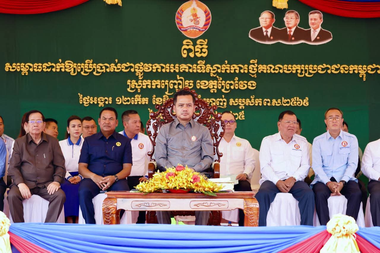 ឯកឧត្តមបណ្ឌិត ម៉ក់ ជីតូ អញ្ជើញចូលរួមក្នុងពិធីសម្ពោធដាក់ឱ្យប្រើប្រាស់ជាផ្លូវការអគារទីស្នាក់ការគណបក្សប្រជាជនកម្ពុជាស្រុកកញ្ជ្រៀច ក្រោមអធិបតីភាពដ៏ខ្ពង់ខ្ពស់ឯកឧត្ដមអភិសន្តិបណ្ឌិត ស សុខា នៅទីស្នាក់ការគណបក្សស្រុកកញ្ជ្រៀច ==============នាព្រឹកថ្ងៃអង្គារ៍ ១២កើត ខែមិគសិរ ឆ្នាំម្សាញ់ សប្តស័ក ព.ស.២៥៦៩ ត្រូវនឹងថ្ងៃទី២ ខែធ្នូ ឆ្នាំ២០២៥ ឯកឧត្តមបណ្ឌិត ម៉ក់ ជីតូ សមាជិកគណៈកម្មាធិការកណ្តាលគណបក្សប្រជាជនកម្ពុជា និងជាអនុប្រធានក្រុមការងារគណបក្សប្រជាជនកម្ពុជាចុះមូលដ្ឋានស្រុកកញ្ជ្រៀច បានអញ្ជើញចូលរួមពិធីសម្ពោធដាក់ឱ្យប្រើប្រាស់ជាផ្លូវការអគារទីស្នាក់ការគណបក្សប្រជាជនកម្ពុជាស្រុកកញ្ជ្រៀច ក្រោមអធិបតីភាពដ៏ខ្ពង់ខ្ពស់ឯកឧត្ដមអភិសន្តិបណ្ឌិត ស សុខា សមាជិកអចិន្ត្រៃយ៍គណៈកម្មាធិការកណ្ដាលគណបក្សប្រជាជនកម្ពុជា និងជាអនុប្រធានទី១ ក្រុមការងារគណបក្សចុះមូលដ្ឋានខេត្តព្រៃវែង តំណាងដ៏ខ្ពង់ខ្ពស់ សម្ដេចក្រឡាហោម ស ខេង អនុប្រធានគណបក្សប្រជាជនកម្ពុជា និងជាប្រធានក្រុមការងារគណបក្សចុះមូលដ្ឋានខេត្តព្រៃវែង នៅទីស្នាក់ការគណបក្សប្រជាជនកម្ពុជាស្រុកកញ្ជ្រៀច ខេត្តព្រៃវែង។