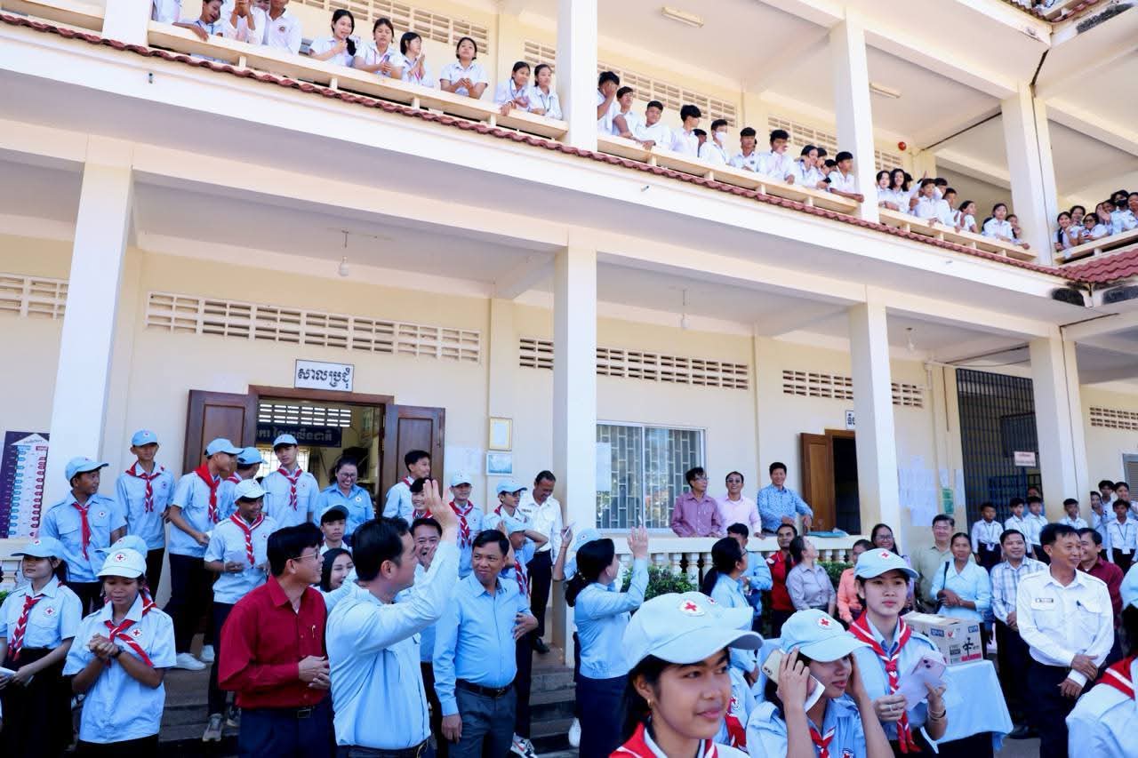 ឯកឧត្តម អ៊ុន ចាន់ដា អភិបាលខេត្តកំពង់ចាម អញ្ជើញជួបសួរសុខទុក្ខក្មួយៗសិស្សានុសិស្សភៀសខ្លួនពីតំបន់ចោរឈ្លានពាន និងបានចូលសិក្សានៅវិទ្យាល័យ ហ៊ុន សែន ស្ទឹងត្រង់(កំពង់ចាម): អភិបាលនៃគណៈអភិបាលខេត្តកំពង់ចាម ឯកឧត្តម អ៊ុន ចាន់ដា នៅថ្ងៃទី២០ ខែធ្នូ ឆ្នាំ២០២៥ នេះ បានដឹកនាំក្រុមការងារ អញ្ជើញចុះជួបសួរសុខទុក្ខក្មួយៗសិស្សានុសិស្សភៀសខ្លួនពីតំបន់ចោរឈ្លានពាន និងបានចូលសិក្សានៅវិទ្យាល័យ ហ៊ុន សែន ស្ទឹងត្រង់។ ខណៈវត្តមានអញ្ជើញដល់របស់ ឯកឧត្តម អភិបាលខេត្ត ក៏បានទទួលការស្វាគមន៍យ៉ាងកក់ក្តៅបំផុត ពីក្មួយៗសិស្សានុសិស្សរាប់ពាន់នាក់ ដោយបានបញ្ចេញជាសំឡេងហូរកញ្ជ្រាវ ទះដៃយ៉ាងកងរំពង ដែលបង្ហាញឲ្យឃើញពីក្តីរំភើប និងការដឹងគុណចំពោះសកម្មភាពការងារដ៏សកម្មរបស់ ឯកឧត្តម អ៊ុន ចាន់ដា អភិបាលខេត្តកំពង់ចាម រួមនឹងមន្ត្រីគ្រប់លំដាប់ថ្នាក់។ក្នុងឱកាសនោះ ឯកឧត្តម អភិបាលខេត្ត បានឧបត្ថម្ភ ជាសម្ភារៈសិក្សាមួយចំនួនជូនដល់ក្មួយ សិស្សានុសិស្ស និងបានផ្តាំផ្ញើឲ្យក្មួយសិស្សានុសិស្សទាំងអស់នោះ ខិតខំប្រឹងប្រែងសិក្សារៀនសូត្រឲ្យបានល្អប្រសើរ ដោយកុំបាច់ព្រួយបារម្ភអ្វីក្រៅពីរៀសូត្រ ព្រោះថាបញ្ហាព្រំដែនដែលត្រូវបាននឹងកំពុងរងការយាយីពីចោរឈ្លានពានក៏ពិតមែន ប៉ុន្តែសូមក្មួយសិស្សានុសិស្ស មេត្តាទុកចិត្ត និងជឿជាក់លើ រាជរដ្ឋាភិបាលយើង ដែលដឹកនាំដោយសម្តេចមហាបវរធិបតី ហ៊ុន ម៉ាណែត នាយករដ្ឋមន្ត្រីនៃព្រះរាជាណាចក្រកម្ពុជា និង ភាពអង់អាចក្លាហានរបស់ វីរកងទ័ពយើង។ គួរបញ្ជាក់ថា គិតត្រឹមថ្ងៃទី១៩ ខែធ្នូ ឆ្នាំ២០២៥ សិស្សភៀសសឹកកំពុងបន្តការសិក្សាតាមសាលារៀន ក្នុងខេត្តកំពង់ចាម ចំនួន ១.០៤៧នាក់ (ស្រីចំនួន៥៩៦នាក់)។ ក្នុងនោះ +សិស្សមត្តេយ្យសិក្សា ចំនួន ៧៨នាក់ ស្រី៤៨នាក់+សិស្សបឋមសិក្សា ចំនួន ៦៣៧នាក់ ស្រី៣៦២នាក់+ សិស្សមធ្យមសិក្សា ចំនួន ៣៣២នាក់ ស្រី១៩២នាក់។ ចំពោះសិស្សទាំងអស់ត្រូវបានឯកឧត្តម អភិបាលខេត្ត ផ្តល់សម្ភារៈសិក្សាជូន ក្នុងម្នាក់ៗ ទទួលបាបាន -សៀវភៅ ៥ក្បាល ប៊ិក ៥ដេីម និងកាតាប ១ ផងដែរ៕