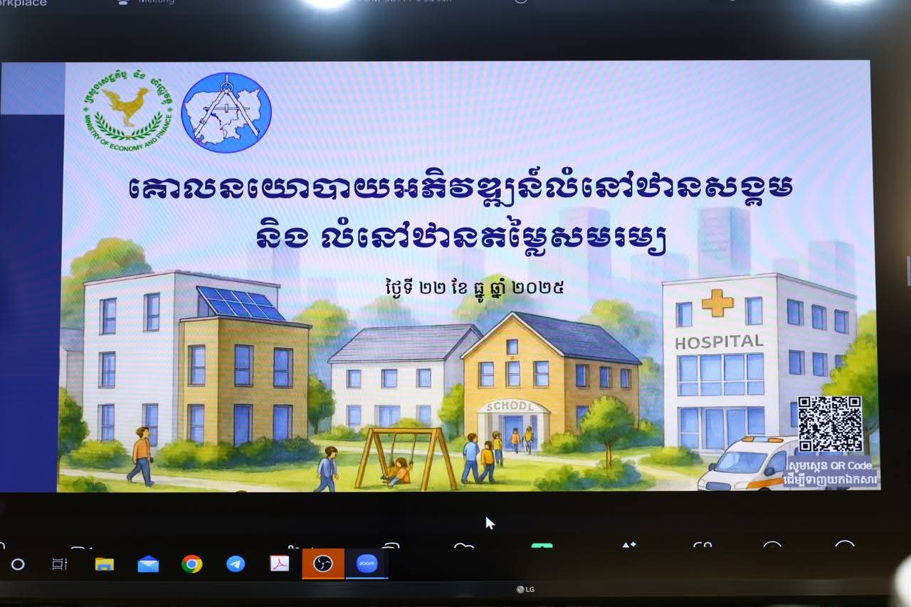 ឯកឧត្តម សាយ សំអាល់ ឧបនាយករដ្នមន្ត្រី រដ្នមន្ត្រីក្រសួងរៀបចំដែនដី នគរូបនីយកម្ម និងសំណង់ អញ្ជើញចូលរួមកិច្ចប្រជុំពិភាក្សាលើសេចក្តីព្រាងគោលនយោបាយអភិវឌ្ឍន៍លំនៅឋានសង្គម និងលំនៅឋានតម្លៃសមរម្យ =================(ភ្នំពេញ)៖នៅព្រឹកថ្ងៃចន្ទ ៣កើត ខែមិគសិរ ឆ្នាំម្សាញ់ សប្តស័ក ពុទ្ធសករាជ ២៥៦៩ ត្រូវនឹងថ្ងៃទី២២ ខែធ្នូ ឆ្នាំ២០២៥ ឯកឧត្តម សាយ សំអាល់ ឧបនាយករដ្នមន្ត្រី រដ្នមន្ត្រីក្រសួងរៀបចំដែនដី នគរូបនីយកម្ម និងសំណង់ បានអញ្ជើញចូលរួមកិច្ចប្រជុំពិភាក្សាលើសេចក្តីព្រាងគោលនយោបាយអភិវឌ្ឍន៍លំនៅឋានសង្គម និងលំនៅឋានតម្លៃសមរម្យ ក្រោមអធិបតីភាពឯកឧត្តមអគ្គបណ្ឌិតសភាចារ្យ អូន ព័ន្ធមុនីរ័ត្ន ឧបនាយករដ្ឋមន្ត្រី រដ្ឋមន្ត្រីក្រសួងសេដ្ឋកិច្ច និងហិរញ្ញវត្ថុ ដោយមានការចូលរួមពី ឯកឧត្តម លោកជំទាវ ថ្នាក់ដឹកនាំក្រសួង ស្ថាប័នពាក់ព័ន្ធ និងមន្រ្តីជំនាញ។ កិច្ចប្រជុំនេះបានប្រព្រឹត្តទៅនៅទីស្ដីការក្រសួងសេដ្ឋកិច្ច និងហិរញ្ញវត្ថុ។កិច្ចប្រជុំនេះមានគោលបំណងដើម្បីដាក់ចេញនូវវិធានការគាំទ្ររបស់រាជរដ្ឋាភិបាលចំពោះប្រជាជនដែលមានចំណូលទាប ដល់ប្រជាជនដែលមានចំណូលកម្រិតមធ្យម ដើម្បីទទួលបានលំនៅឋានតម្លៃសមរម្យ (តាមនិយមន័យលំនៅឋានមានតម្លៃសមរម្យជាលំនៅឋានដែលមានតម្លៃមិនលើសពី៣០% នៃប្រាក់ចំណូលប្រចាំខែក្នុងមួយគ្រួសារ ឬមិនលើសពី ៣ដងនៃប្រាក់ចំណូលប្រចាំឆ្នាំក្នុងមួយគ្រួសារ)៕