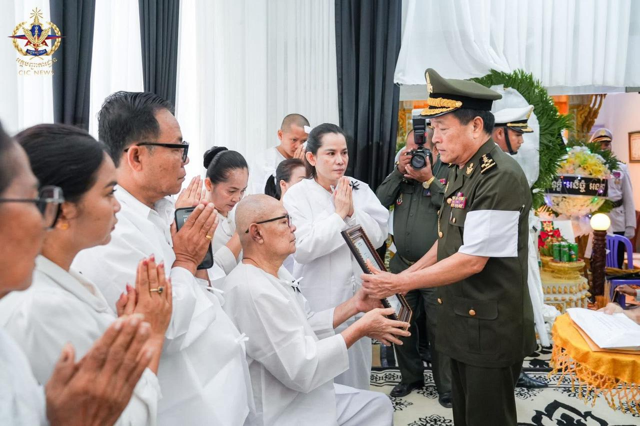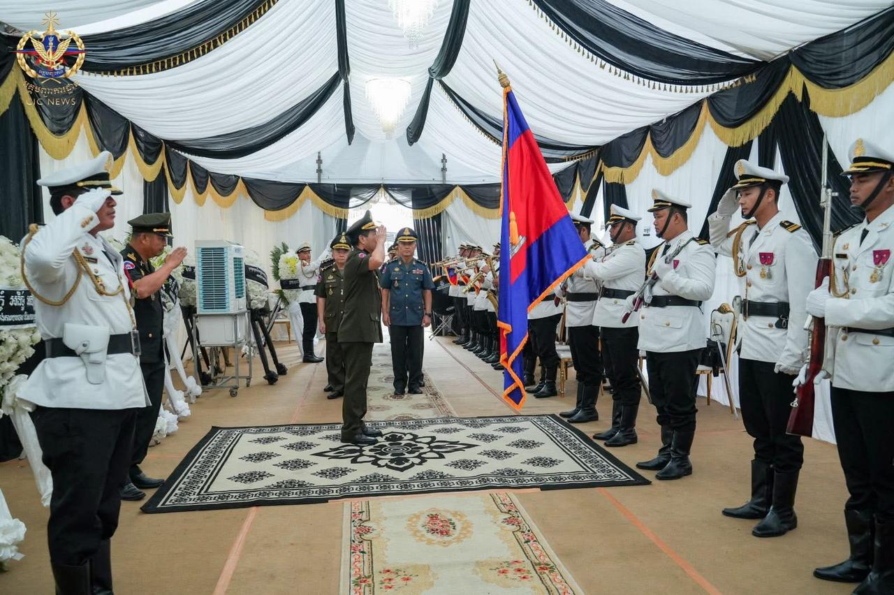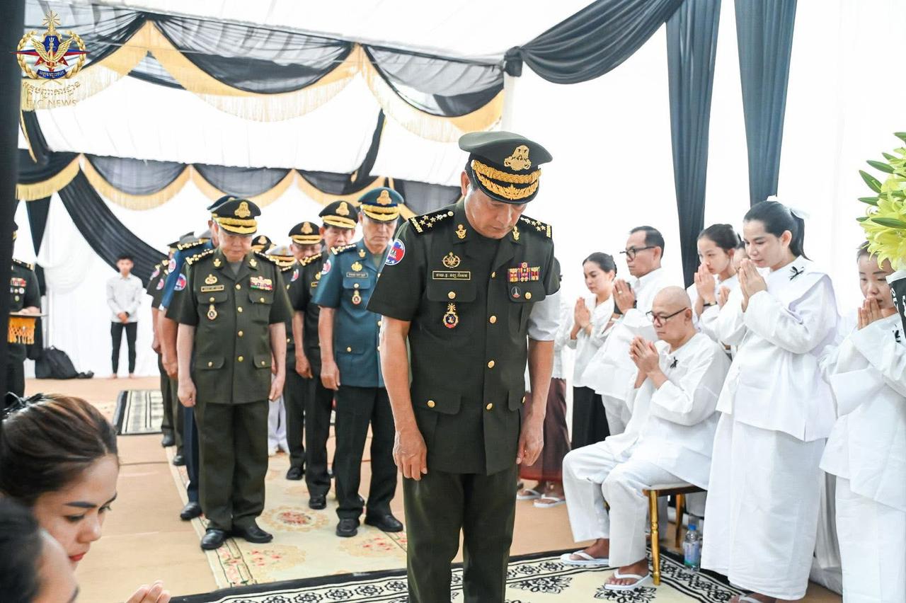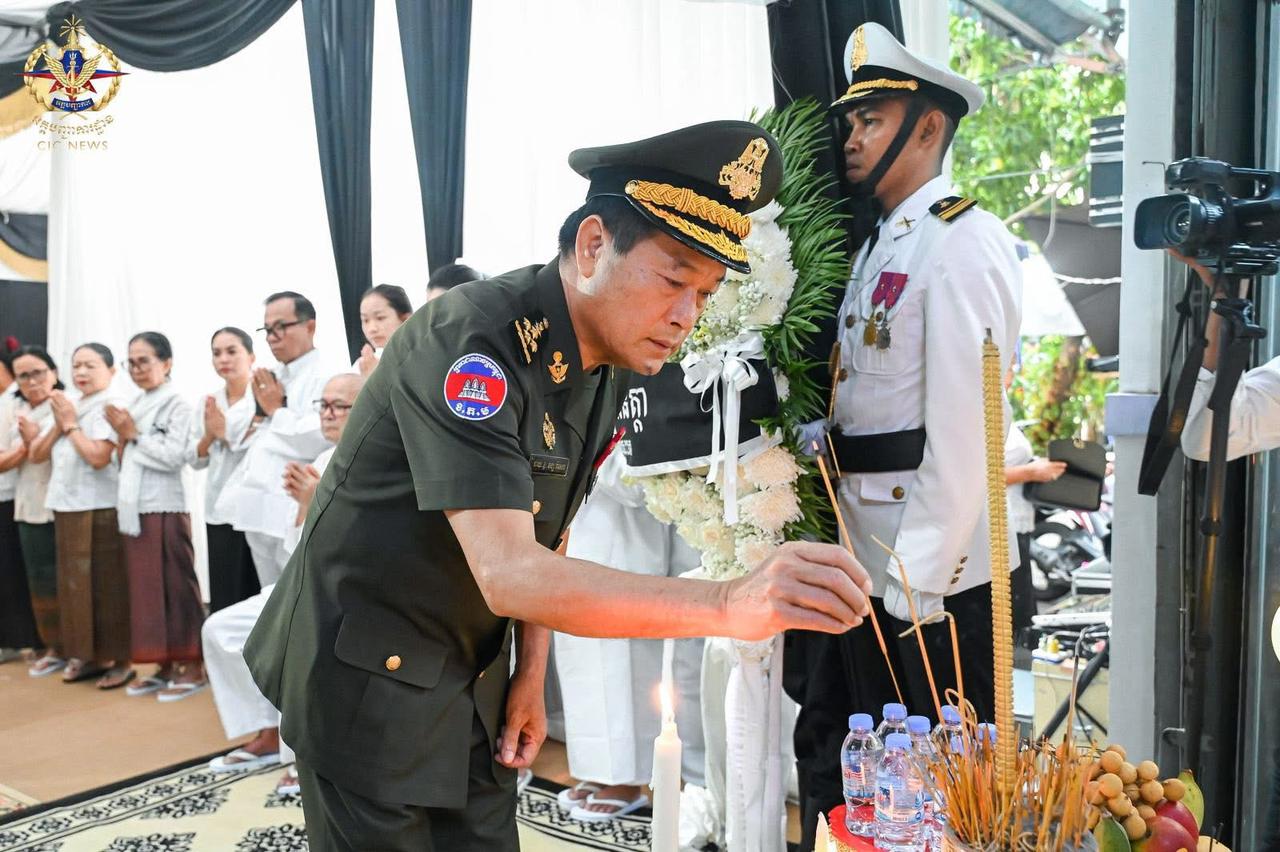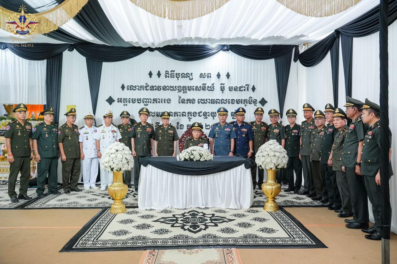 ឯកឧត្តម នាយឧត្តមសេនីយ៍ វង្ស ពិសេន និងដឹកនាំអគ្គបញ្ជាការ អញ្ជើញគោរពវិញ្ញាណក្ខន្ធសព លោកជំទាវ នាយឧត្តមសេនីយ៍ ម៉ី មនដារី(ភ្នំពេញ)៖ នៅព្រឹកថ្ងៃទី២៦ ខែធ្នូ ឆ្នាំ២០២៥ ឯកឧត្តម នាយឧត្តមសេនីយ៍ វង្ស ពិសេន អគ្គមេបញ្ជាការ នៃកងយោធពលខេមរភូមិន្ទ បានដឹកនាំប្រតិភូអញ្ជើញគោរពវិញ្ញាណក្ខន្ធសពលោកជំទាវ នាយឧត្តមសេនីយ៍ ម៉ី មនដារី អគ្គមេបញ្ជាការរង កងយោធពលខេមរភូមិន្ទ ដែលបានទទួលមរណភាព កាលពីថ្ងៃទី២៤ ខែធ្នូ ឆ្នាំ២០២៥ ដោយរោគាពាធ ស្ថិតនៅខណ្ឌទួលគោក រាជធានីភ្នំពេញ។នៅក្នុងឱកាសដ៏ក្រៀមក្រំនោះ ក្នុងនាមថ្នាក់ដឹកនាំ នាយទាហាន នាយទាហានរង និងពលទាហាន ឯកឧត្តមបានចូលរួមរំលែកទុក្ខ និងសោកស្តាយចំពោះមរណភាព លោកជំទាវ នាយឧត្តមសេនីយ៍ ម៉ី មនដារី ដែលជាការបាត់បង់ភរិយា ម្ដាយ ជីដូន ជាទីស្រឡាញ់ ប្រកបដោយព្រហ្មវិហារធម៌ ហើយក៏ជាការបាត់បង់ឥស្សរជនមួយរូប ដែលបានតស៊ូយកអស់កម្លាំងកាយចិត្តបម្រើប្រទេសជាតិ ពិសេសក្នុងវិស័យការពារជាតិ។ឯកឧត្តម អគ្គមេបញ្ជាការ និងថ្នាក់ដឹកនាំ បានឧទ្ទិសបួងសួងដល់ដួងវិញ្ញាណក្ខន្ធ លោកជំទាវ នាយឧត្តមសេនីយ៍ ម៉ី មនដារី សូមឆាប់បានចាប់កំណើតក្នុងឋានសុគតិភពគ្រប់ៗជាតិ កុំបីឃ្លៀងឃ្លាតឡើយ៕