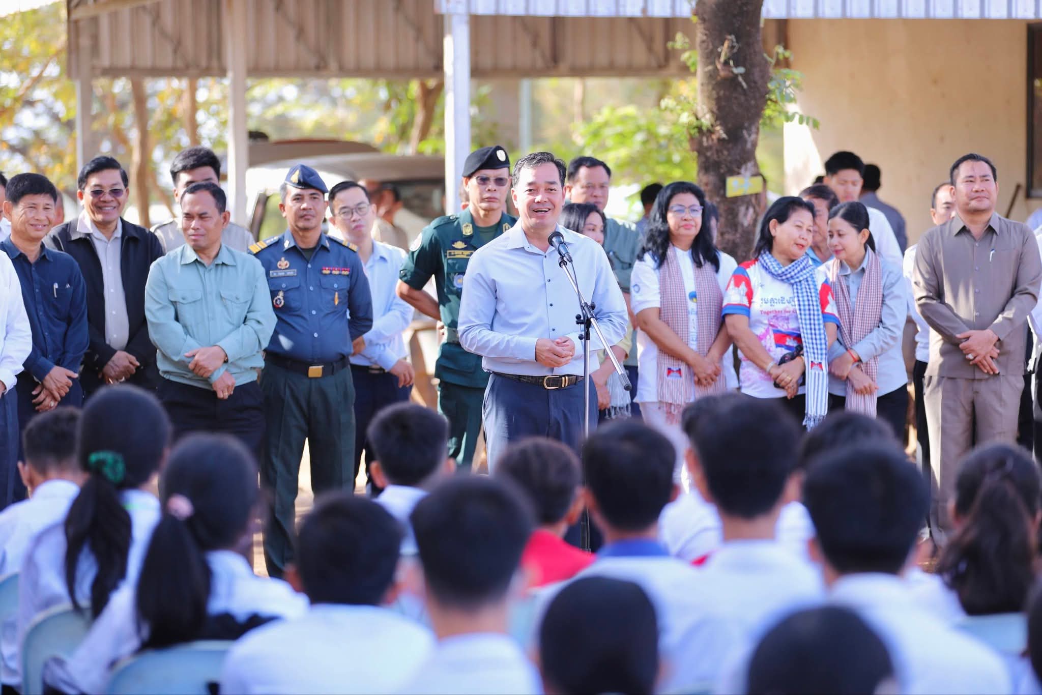 ឯកឧត្តមសន្តិបណ្ឌិត នេត សាវឿន ឧបនាយករដ្ឋមន្រ្តី អញ្ជើញអមដំណើរសម្តេចមហាបវរធិបតី ហ៊ុន ម៉ាណែត អញ្ជើញជាអធិបតីភាពដ៏ខ្ពង់ខ្ពស់ ក្នុងពិធីជួបសំណេះសំណាល សួរសុខទុក្ខ និងចែកអំណោយ ជូនប្រជាពលរដ្ឋភៀសសឹក ស្ថិតនៅស្រុកអូរជ្រៅ ខេត្តបន្ទាយមានជ័យ