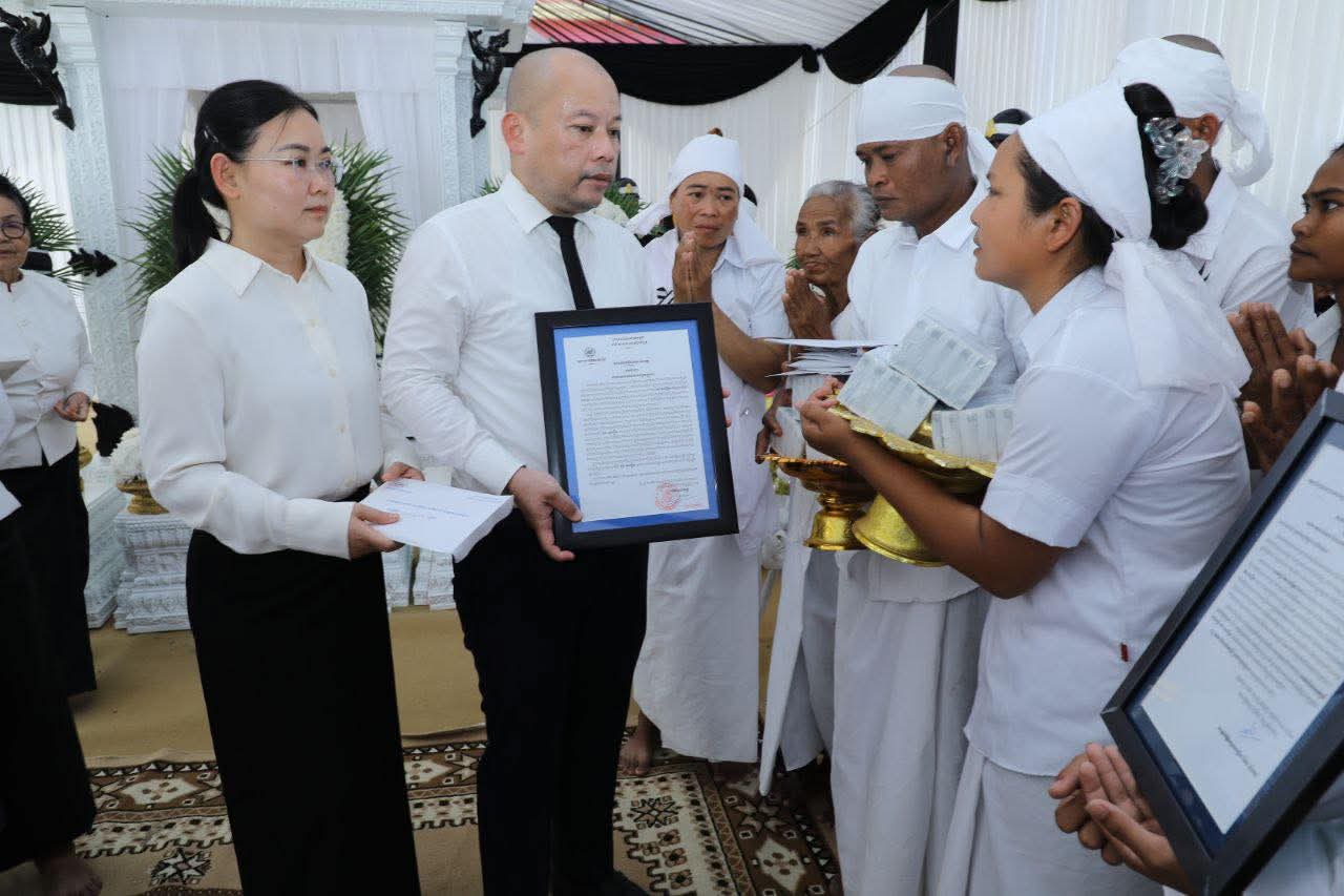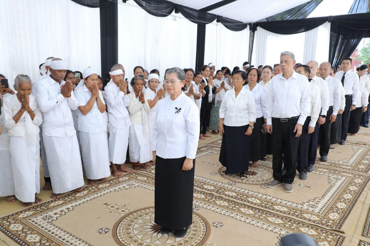 សម្តេចកិត្តិសង្គហបណ្ឌិត ម៉ែន សំអន អញ្ចើញនាំយកថវិកាសម្តេចតេជោ រំលែកមរណទុក្ខ និងអញ្ជើញគោរពវិញ្ញាណក្ខន្ធ លោកស្រី គង់ សារឿន អតីតប្រធានវីរនារីនៅអង្គភាពនារីចល័តដោះមីន=======================សម្តេចកិត្តិសង្គហបណ្ឌិត ម៉ែន សំអន ឧត្តមប្រឹក្សាផ្ទាល់ព្រះមហាក្សត្រ តំណាងដ៏ខ្ពង់ខ្ពស់របស់ សម្តេចអគ្គមហាសេនាបតីតេជោ ហ៊ុន សែន ប្រធានព្រឹទ្ធសភា ជាប្រធានកិត្តិយសគណៈយុទ្ធមិត្តជំនាន់បម្រើកងទ័ពឆ្នាំ១៩៧៨ មូលនិធិតេជោ១២៥ បានអញ្ចើញដឹកនាំប្រតិភូគោរពវិញ្ញាណក្ខន្ធ អតីតប្រធានវីរនារីនៅអង្គភាពនារីចល័តដោះមីន នៅខេត្តស្វាយរៀង ដែលបានរៀបចំនៅក្នុងបរិវេនវត្តសំបួរ ស្ថិតក្នុងស្រុកស្វាយទាប ខេត្តស្វាយរៀង នារសៀលថ្ងៃចន្ទ ១០កើត ខែបុស្ស ឆ្នាំម្សាញ់ សប្តស័ក ព.ស.២៥៦៩ ថ្ងៃទី២៩ ខែធ្នូ ឆ្នាំ២០២៥។ គួររំលឹកផងដែរថា លោកស្រី គង់ សារឿន បានទទួលមរណភាពនាថ្ងៃអាទិត្យ ៩កើត ខែបុស្ស ឆ្នាំម្សាញ់ សប្តស័ក ព.ស.២៥៦៩ ត្រូវនឹងថ្ងៃទី២៨ ខែធ្នូ ឆ្នាំ២០២៥ វេលាម៉ោង ១:៣០នាទីយប់ ក្នុងជន្មាយុ ៦៨ឆ្នាំ ដោយរោគាពាធ។ មរណភាពរបស់ លោកស្រី គឺការបាត់បង់គួរឱ្យសោកស្ដាយបំផុតនូវម្ដាយក្មេក ម្ដាយបង្កើត និងជីដូន ដែលប្រកបដោយសង្គហធម៌ ព្រហ្មវិហារធម៌ជាទីគោរពស្រលាញ់បំផុត ដែលពេញមួយជីវិតរបស់ លោកស្រី គង់ សារឿន បានលះបង់អស់កម្លាំងកាយ ចិត្ត បញ្ញា ស្មារតី ក្នុងការចិញ្ចឹមបីបាច់ថែរក្សា និងផ្ដល់ដំបូន្មានដល់កូនៗ និងចៅឱ្យក្លាយជាធនធានមនុស្សដ៏មានតម្លៃប្រកបដោយគុណធម៌នៅក្នុងសង្គមជាតិ និងជាការបាត់បង់នូវវីរនារីឆ្នើមមួយរូបដែលមានជំនាញក្នុងការដោះមីនដំបូងគេនៅកម្ពុជាកាលពីជំនាន់ទសវត្សរ៍ទី៨០ និងបានចូលរួមចំណែកក្នុងការថែរក្សាសុខសន្តិភាពជូនប្រជាពលរដ្ឋ ដែលគំរូវីរភាពរបស់លោកស្រី និងចងចាំដល់កូនចៅជំនាន់ក្រោយគ្រប់រូបៗ។នៅក្នុងសមានទុក្ខដ៏ក្រៀមក្រំនោះ សម្តេចកិត្តិសង្គហបណ្ឌិត ក៏បាននាំនូវសាររំលែកទុក្ខពីសំណាក់សម្តេចអគ្គមហាសេនាបតីតេជោ ហ៊ុន សែន ប្រធានព្រឹទ្ធសភា ជូនដល់ក្រុមគ្រួសារសព និងបានបង្ហាញនូវការសោកស្តាយនូវការបាត់បង់នូវធនធានមនុស្សមួយរូបផ្នែកដោះមីននាពេលនេះ និងបាននាំយកថវិការបស់ សម្តេចតេជោ និងសម្តេចកិត្តិព្រឹទ្ធបណ្ឌិត ប៊ុន រ៉ានី ហ៊ុនសែន ចូលបុណ្យសពផងដែរ។ ក្នុងឱកាសដ៏ក្រៀមក្រំនេះ សម្តេចកិត្តិសង្គហបណ្ឌិត ក៏បានចូលរួមរំលែកទុក្ខដោយក្តីសោកសង្រេងជាទីបំផុតជាមួយ លោក ភោគ សំអាល់ ត្រូវជាកូនប្រុសបង្កើត ព្រមទាំងក្រុមគ្រួសារ និងសូមបួងសួងដល់តេជៈបារមីនៃព្រះពុទ្ធ ព្រះធម៌ ព្រះសង្ឃ តាមជួយថែរក្សាដួងវិញ្ញាណក្ខន្ធរបស់ លោកស្រី គង់ សារឿន បានទៅសោយសុខក្នុងឋានសុគតិភពកុំបីឃ្លៀងឃ្លាតឡើយ។ឆ្លៀតក្នុងឱកាសនោះដែរ លោក ភោគ សំអាល់ តំណាងឱ្យក្រុ