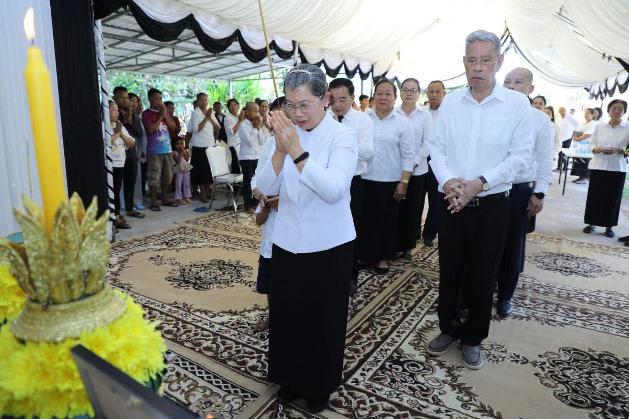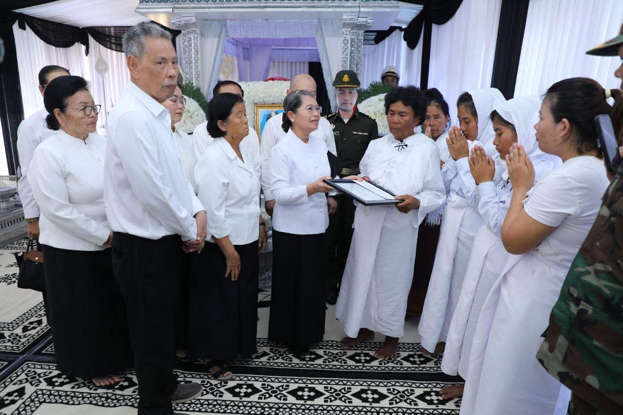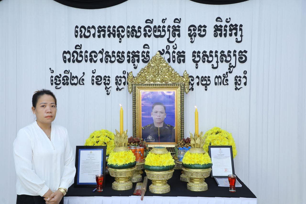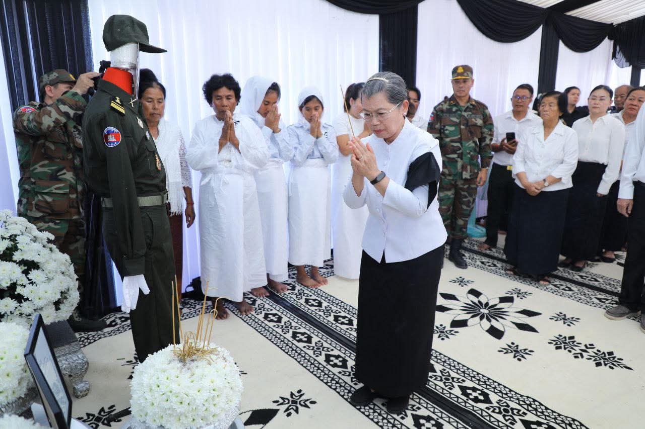 សម្តេចកិត្តិសង្គហបណ្ឌិត ម៉ែន សំអន អញ្ចើញគោរពវិញ្ញាណក្ខន្ធ លោកវរ:សេនីយ៍ត្រី ម៉ៅ កុសល្យ និងលោកអនុសេនីយ៍ត្រី ទូច ភិរ័ក្ស ដែលមានពលីក្នុងសមរភូមិការពារបូរណភាពទឹកដី=======================សម្តេចកិត្តិសង្គហបណ្ឌិត ម៉ែន សំអន ឧត្តមប្រឹក្សាផ្ទាល់ព្រះមហាក្សត្រ និងជាប្រធានក្រុមប្រឹក្សាជាតិរណសិរ្សសាមគ្គីអភិវឌ្ឍន៍មាតុភូមិកម្ពុជា បានអញ្ចើញគោរពវិញ្ញាណក្ខន្ធ លោកវរ:សេនីយ៍ត្រី ម៉ៅ កុសល្យ ដែលបានពលីក្នុងសមរភូមិជួរមុខ នៅគេហដ្ឋានសពស្ថិតក្នុងភូមិបាសាក់ ឃុំបាសាក់ ស្រុកស្វាយជ្រំ និងលោកអនុសេនីយ៍ត្រី ទូច ភិរ័ក្ស ស្ថិតក្នុងភូមិពោធិបន្ទាយ ឃុំកណ្តៀងរាយ ស្រុកស្វាយទាប ខេត្តស្វាយរៀង នារសៀលថ្ងៃច័ន្ទ ១០កើត ខែបុស្ស ឆ្នាំម្សាញ់ សប្តស័ក ព.ស.២៥៦៩ ថ្ងៃទី២៩ ខែធ្នូ ឆ្នាំ២០២៥។ មរណភាពរបស់ លោកវរ:សេនីយ៍ត្រី ម៉ៅ កុសល្យ និងលោកអនុសេនីយ៍ត្រី ទូច ភិរ័ក្ស គឺការបាត់បង់នូវវីរៈកងទ័ពប្រកបដោយមានសិកាស្នេហាជាតិមាតុភូមិ តស៊ូប្រយុទ្ធយ៉ាងអង់អាចក្លាហានក្នុងការការពារបូរភាពទឹកដី រហូតដល់ថ្ងៃអវសាននៃជីវិត។ អំពើល្អ និងការតស៊ូបង្ហាញឆន្ទៈដ៏មុតមាំដល់នាទីចុងក្រោយរបស់ លោកទាំងពីរនឹងនៅតែស្ថិតក្នុងការចងចាំសម្រាប់ក្រុមគ្រួសារ និងជនរួមជាតិខ្មែរ ទាំងអស់គ្នា។ក្នុងសមានទុក្ខដ៏ក្រៀមក្រំនេះ សម្តេចកិត្តិសង្គហបណ្ឌិត ក៏បាមឧទ្ទិសបួងសួងដល់តេជៈបារមីនៃព្រះពុទ្ធ ព្រះធម៌ ព្រះសង្ឃ តាមជួយថែរក្សាដួងវិញ្ញាណក្ខន្ធរបស់ លោកវរ:សេនីយ៍ត្រី ម៉ៅ កុសល្យ និងលោកអនុសេនីយ៍ត្រី ទូច ភិរ័ក្សបានទៅសោយសុខក្នុងឋានសុគតិភពកុំបីឃ្លៀងឃ្លាតឡើយ៕