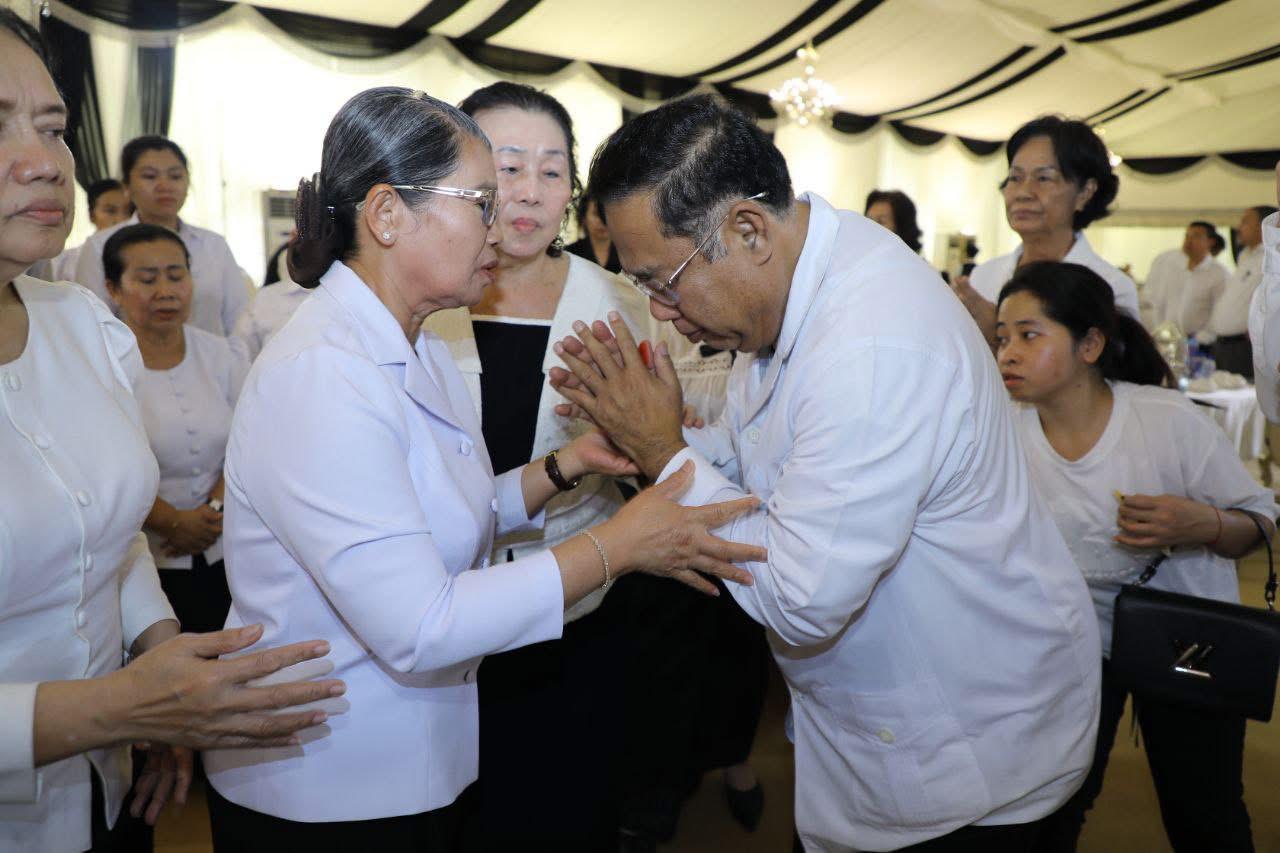 សម្តេចកិត្តិសង្គហបណ្ឌិត ម៉ែន សំអន ឧត្តមប្រឹក្សាផ្ទាល់ព្រះមហាក្សត្រ និងជាប្រធានក្រុមប្រឹក្សាជាតិរណសិរ្សសាមគ្គី អភិវឌ្ឍន៍មាតុភូមិកម្ពុជា អញ្ជើញចូលរួមបុណ្យសព លោកស្រី ខៀវ រ៉ាវី នៅក្នុងខណ្ឌដូនពេញ