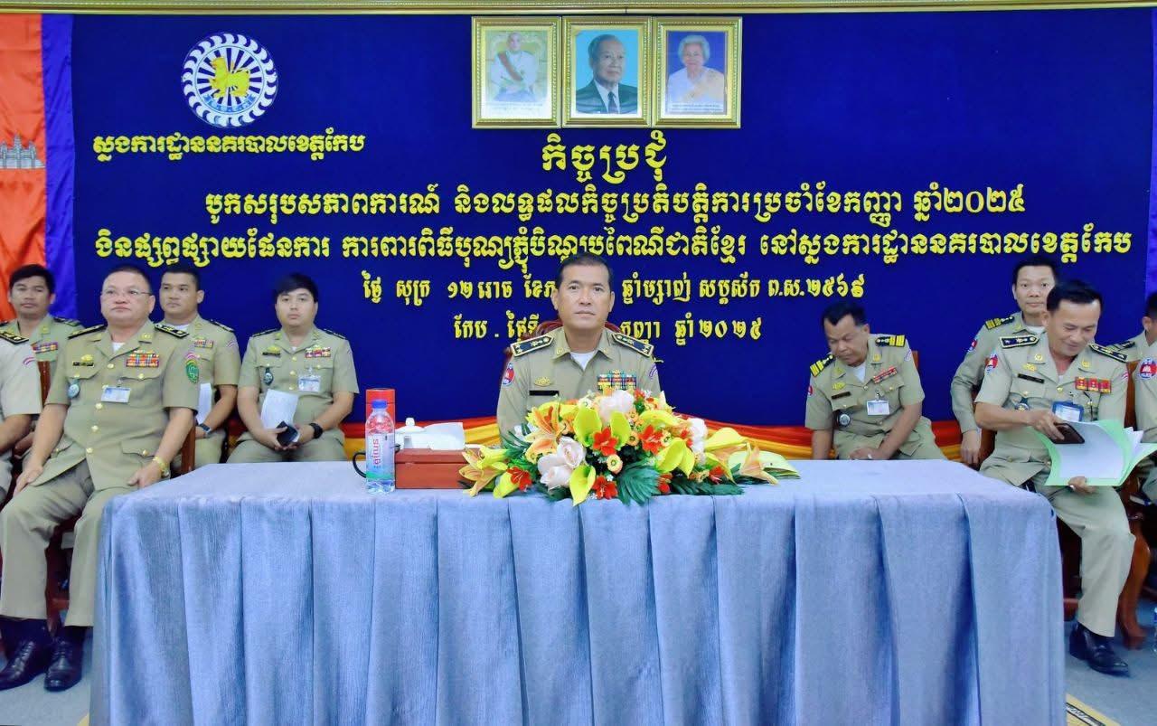 លោកឧត្តមសេនីយ៍ទោ សម្បត្តិ សុធារដ្ឋ ស្នងការនគរបាលខេត្តកែប ដាក់ចេញនូវវិធានការសំខាន់ៗ៨ចំនុច ដល់មន្ត្រីក្រោមឱវាទ ក្នុងឱកាសពិធីបុណ្យកាន់បិណ្ឌ បុណ្យភ្ជុំបិណ្ឌខេត្តកែប៖ ដោយអនុវត្តតាមសេចក្ដីណែនាំលេខ០០៩ សណន របស់អគ្គស្នងការដ្ឋាននគរបាលជាតិ នៅរសៀលថ្ងៃសុក្រ ទី១៩ ខែកញ្ញា ឆ្នាំ២០២៥ លោកឧត្តមសេនីយ៍ទោ សម្បត្តិ សុធារដ្ឋ ស្នងការនគរបាលខេត្តកែប បានអញ្ជើញដឹកនាំផ្សព្វផ្សាយផែនការលេខ០២០ ផ.ក ចុះថ្ងៃទី០៤ ខែកញ្ញា ឆ្នាំ២០២៥ របស់ស្នងការដ្ឋាននគរបាលខេត្តកែប ស្តីពីវិធានការ ការពារសន្តិសុខ សណ្ដាប់ធ្នាប់សាធារណៈ និងសុវត្ថិភាពសង្គមនាឱកាសពិធីបុណ្យកាន់បិណ្ឌ បុណ្យភ្ជុំបិណ្ឌ ប្រពៃណីជាតិខ្មែរ ក្នុងកិច្ចប្រជុំបូកសរុបសភាពការណ៍លទ្ធផលការងារប្រចាំខែកញ្ញា លើកទិសដៅការងារខែបន្ត ឆ្នាំ២០២៥ ដែលមានការចូលរួមពីលោក-លោកស្រីស្នងការរងទាំងអស់ នាយ-នាយរងការិយាល័យជំនាញ អធិការ-អធិការរងនគរបាលក្រុង/ស្រុក ប្រធានគោលដៅប្រចាំការសាលាខេត្ត ,គោលដៅតំបន់ទេសចរណ៍ ,ប្រធានក្រុម នៃកងអនុសេនាតូច ទាំង៦ក្រុម និងនាយប៉ុស្តិ៍នគរបាលរដ្ឋបាលទាំង ៥ ឃុំ/សង្កាត់ នៅសាលប្រជុំធំ នៃស្នងការដ្ឋាននគរបាលខេត្តកែប។តាមរបាយការណ៍របស់ស្នងការដ្ឋាននគរបាលខេត្ត បានឱ្យដឹងថា សភាពការណ៍សន្តិសុខ សណ្ដាប់ធ្នាប់សាធារណៈនិងសុវត្ថិភាពសង្គមក្នុងខែកញ្ញា ឆ្នាំ២០២៥ កន្លងមកនេះ ពុំមានបញ្ហាអ្វីកើតឡើងគួរឱ្យកត់សម្គាល់ឡើយ។ ទន្ទឹមនេះស្នងការដ្ឋាននគរបាលខេត្ត ក៏បានរៀបចំចាត់តាំងដឹកនាំការពារសន្តិសុខ សណ្ដាប់ធ្នាប់ និងសុវត្ថិភាព ជូនថ្នាក់ដឹកនាំក្នុងពិធីផ្សេងៗ, ជូនភ្ញៀវទេសចរណ៍ជាតិ-អន្តរជាតិ និងប្រជាពលរដ្ឋក្នុងឱកាសពិធីបុណ្យកាន់បិណ្ឌប្រពៃណីជាតិខ្មែរ រយៈពេល ១២ថ្ងៃ (បិណ្ឌទី១ ដល់បិណ្ឌទី១២) ថ្ងៃនេះ ទទួលបានសុខសុវត្ថិភាព និងរបៀបរៀបរយល្អប្រសើរ និងបានជំរុញលើការងារផ្ដល់សេវាសាធារណៈជូនប្រជាពលរដ្ឋបានទាន់ពេលវេលា, ជំរុញការអនុវត្តគោលនយោបាយភូមិ ឃុំ មានសុវត្ថិភាព នៅតាមសហគមន៍ សាលារៀន និងវត្តអារាម ឱ្យមានសកម្មភាពផុលផុស, ពង្រឹងការងារប្រចាំការ ប្រចាំបញ្ជា និងចេញល្បាតបង្ការ ទប់ស្កាត់ បង្ក្រាបបទល្មើសលួច ឆក់ ប្លន់ ធានាបានសន្តិសុខ សុវត្ថិភាពល្អ។មានប្រសាសន៍ក្នុងកិច្ចប្រជុំលោកឧត្តមសេនីយ៍ទោ ស្នងការនគរបាលខេត្ត បានដាក់ចេញនូវវិធានការសំខាន់ៗចំនួន៨ រួមមាន៖ ១- ត្រូវបង្កើនក្តាប់សភាពការណ៍ អំពីផែនការ ឧបាយកលរបស់ពួកប្រឆាំងក្រៅច្បាប់ ដែលប៉ុនប៉ងបង្កចលាចលសង្គម ប៉ុនប៉ងធ្វើភេរវកម្ម។ល។២- បន្តជំរុញការអនុវត្តគោលនយោបាយ ភូមិឃុំមានសុវត្ថិភាព ឱ្យមានសកម្មភាពផុលផុស។៣- បង្កើនវិធានការសន្តិសុខនិងសណ្ដាប់ធ្នាប់សាធារណៈ ឱ្យបានម៉ឺងម៉ាត់ នៅតាមគោ