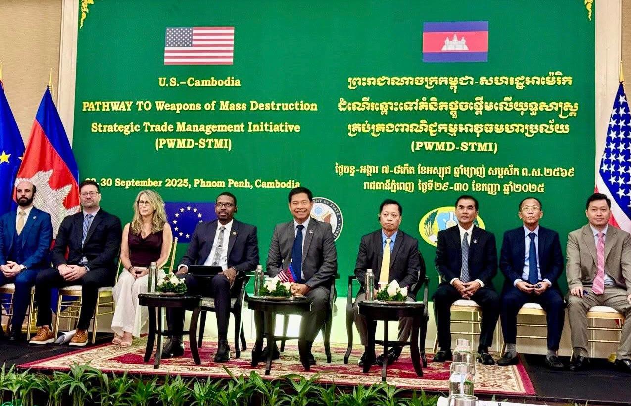 លោកឧត្តមសេនីយ៍ទោ សែម គន្ធា អញ្ជើញចូលរួមសិក្ខាសាលាស្តីពី ដំណើរឆ្ពោះទៅគំនិតផ្ដួចផ្ដើមលើយុទ្ធសាស្ត្រគ្រប់គ្រងពាណិជ្ជកម្មអាវុធមហាប្រល័យ PWMD-STMI នៅសណ្ឋាគារ រ៉ាហ្វិល ឡឺ រ៉ូយ៉ាល់ ភ្នំពេញ==============នៅព្រឹកថ្ងែទី២៩ ខែកញ្ញា ឆ្នាំ២០២៥នេះ លោកឧត្តមសេនីយ៍ទោ សែម គន្ធា ប្រធាននាយកដ្ឋានគ្រប់គ្រងអាវុធជាតិផ្ទុះ និងសហការី អញ្ជើញចូលរួមក្នុងសិក្ខាសាលាស្តីពី ដំណើរឆ្ពោះទៅគំនិតផ្ដួចផ្ដើមលើយុទ្ធសាស្ត្រគ្រប់គ្រងពាណិជ្ជកម្មអាវុធមហាប្រល័យ (PWMD-STMI) ដោយមានកិច្ចសហការរវាងព្រះរាជាណាចក្រកម្ពុជា-សហរដ្ឋអាម៉េរិក រយ:ពេល២ថ្ងៃ ទី២៩-៣០ ខែកញ្ញា ឆ្នាំ២០២៥នៅសណ្ឋាគារ រ៉ាហ្វិល ឡឺ រ៉ូយ៉ាល់ ភ្នំពេញ។