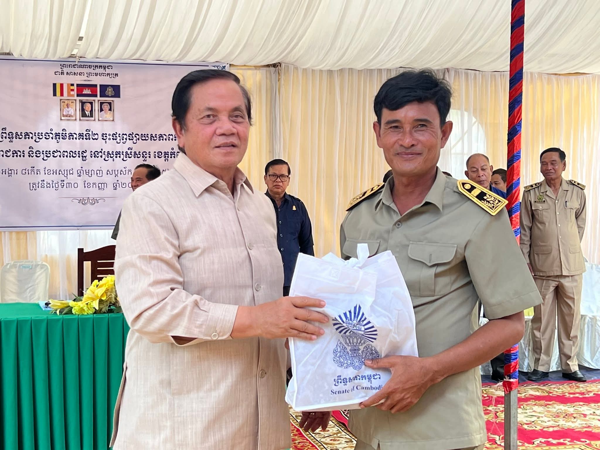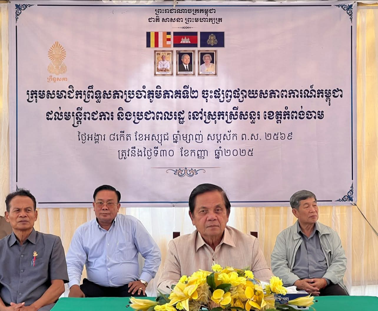 ពិធីផ្សព្វផ្សាយសភាពការណ៍កម្ពុជាដល់មន្ត្រីរាជការ និងប្រជាពលរដ្ឋ ក្នុងស្រុកស្រីសន្ធរ ក្រោមអធិបតីភាពដ៏ខ្ពង់ខ្ពស់ឯកឧត្តម អ៊ុច បូររិទ្ធ ប្រធានស្តីទីព្រឹទ្ធសភា និងជាប្រធានក្រុមសមាជិកព្រឹទ្ធសភា ប្រចាំភូមិភាគទី២ ==================នៅរសៀលទី៣០ ខែកញ្ញា ឆ្នាំ២០២៥ ឯកឧត្តម អ៊ុច បូររិទ្ធ ប្រធានស្តីទីព្រឹទ្ធសភា និងជាប្រធានក្រុមសមាជិកព្រឹទ្ធសភា ប្រចាំភូមិភាគទី២ បានអញ្ជើញជាអធិបតីភាពដ៏ខ្ពង់ខ្ពស់ក្នុងពិធីផ្សព្វផ្សាយសភាពការណ៍កម្ពុជាដល់មន្ត្រីរាជការ និងប្រជាពលរដ្ឋក្នុងស្រុកស្រីសន្ធរ ។ ដោយមានការអញ្ជើញចូលរួមពី ឯកឧត្តម លោកជំទាវសមាជិកព្រឹទ្ធសភាប្រចាំភូមិភាគទី២ ឯកឧត្តម ឃន ប្រុស អភិបាលរង ជាតំណាងដ៏ខ្ពង់ខ្ពស់ ឯកឧត្តម អ៊ុន ចាន់ដា អភិបាល នៃគណៈអភិបាលខេត្តកំពង់ចាម លោក ទុំ ដាំ ប្រធានក្រុមប្រឹក្សាស្រុក លោក ប៊ិន ឡាដា អភិបាល នៃគណ: អភិបាលស្រុកនិងសមាសភាពចូលរួម រួមមាន: លោក លោកស្រីអភិបាលរង លោក លោកស្រីមេឃុំ សមាជិកក្រុមប្រឹក្សាឃុំ នាយបុស្តិ៍នគរបាលរដ្ឋបាលឃុំ, ស្មៀនឃុំ, ប្រធានមណ្ឌលសុខភាព,នាយក នាយិកាវិទ្យាល័យ អនុវិទ្យាល័យ សាលាបឋមសិក្សា និងលោក លោកស្រីមេភូមិ ទាំងអស់ក្នុងស្រុកស្រីសន្ធរ សរុបចំនួន២៧៨នាក់ ក្នុងពិធីផ្សព្វផ្សាយនេះដែរ ឯកឧត្តមគណ:អធិបតី ក៏បានចែកជូនវត្ថុអនុស្សាវរីយ៍ ដល់សមាជិក-សមាជិកា ផងដែរ។