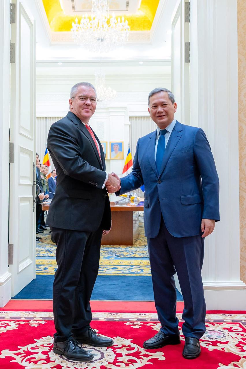 ឧបការីរដ្ឋមន្ត្រីការបរទេសអាម៉េរិក៖ ឯកឧត្តមប្រធានាធិបតី Donald Trump បន្តយកចិត្តទុកដាក់ចំពោះស្ថានការណ៍ព្រំដែនកម្ពុជា-ថៃ និងការអនុវត្តតាមស្មារតីនៃសេចក្តីថ្លែងការណ៍រួមទីក្រុងគូឡាឡាំពួរនាព្រឹកថ្ងៃទី១០ ខែមករា ឆ្នាំ២០២៦ សម្តេចមហាបវរធិបតី ហ៊ុន ម៉ាណែត នាយករដ្ឋមន្ត្រីនៃព្រះរាជាណាចក្រកម្ពុជា បានអនុញ្ញាតឱ្យឯកឧត្តម Michael George DeSombre ឧបការីរដ្ឋមន្ត្រីការបរទេសសហរដ្ឋអាម៉េរិក ទទួលបន្ទុកតំបន់អាស៊ីបូព៌ា និងប៉ាស៊ីហ្វីក ចូលជួបសម្តែងការគួរសម និងពិភាក្សាការងារ។ ឯកឧត្តម DeSombre បានជម្រាបជូនសម្តេចបវរធិបតីថា រដ្ឋាភិបាលសហរដ្ឋអាម៉េរិក ជាពិសេស ឯកឧត្តមប្រធានាធិបតី Donald Trump បន្តយកចិត្តទុកដាក់ចំពោះស្ថានការណ៍ព្រំដែនកម្ពុជា-ថៃ និងការអនុវត្តតាមស្មារតីនៃសេចក្តីថ្លែងការណ៍រួមទីក្រុងគូឡាឡាំពួរ ចុះថ្ងៃទី២៦ ខែតុលា ឆ្នាំ២០២៥ ហើយឯកឧត្តមក៏បានសម្តែងសេចក្តីរីករាយចំពោះយោធិនកម្ពុជា ១៨ រូប ដែលត្រូវបានដោះលែងមកជួបជុំគ្រួសារវិញ។ ឯកឧត្តម DeSombre បានគូសបញ្ជាក់បន្ថែមថា សហរដ្ឋអាម៉េរិកបន្តជំរុញការរក្សាបទឈប់បាញ់ និងចង់ឃើញសន្តិភាពយូរអង្វែងរវាងកម្ពុជានិងថៃ។ ឯកឧត្តម DeSombre បានប្រកាសថា សហរដ្ឋអាម៉េរិកនឹងផ្តល់ជំនួយចំនួន ១៥លានដុល្លារ សម្រាប់ការគាំទ្រដល់ជនភៀសសឹកនៅព្រំដែនប្រទេសទាំងពីរ, និង ចំនួន ១០លានដុល្លារ សម្រាប់ការដោះមីន និងយុទ្ធភណ្ឌមិនទាន់ផ្ទុះ នៅកម្ពុជា។ សម្តេចបវរធិបតីបានថ្លែងអំណរគុណចំពោះឯកឧត្តមប្រធានាធិបតី Donald Trump ក៏ដូចរដ្ឋាភិបាលសហរដ្ឋអាម៉េរិក ដែលបានសម្របសម្រួលបទឈប់បាញ់ និងសេចក្តីថ្លែងការណ៍រួមទីក្រុងគូឡាឡាំពួរ ចុះថ្ងៃទី២៦ ខែតុលា ឆ្នាំ២០២៥ ហើយបន្តយកចិត្តទុកដាក់ចំពោះការកសាងសន្តិភាពរវាងកម្ពុជា និងថៃ ព្រមទាំងបានប្រកាសផ្តល់ជំនួយស្តារជីវភាពជនភៀសសឹក និងគាំទ្រកិច្ចប្រឹងប្រែងដោះមីនមនុស្សធម៌។ សម្តេចបវរធិបតីបានសង្កត់ធ្ងន់ថា កម្ពុជាតែងផ្តល់តម្លៃលើសន្តិភាព និងប្រកាន់ខ្ជាប់ការដោះស្រាយបញ្ហាព្រំដែនដោយសន្តិវិធី អនុលោមតាមច្បាប់អន្តរជាតិ សន្ធិសញ្ញា អនុសញ្ញា និងកិច្ចព្រមព្រៀងរវាងប្រទេសទាំងពីរ។ សម្តេចបវរធិបតីសង្ឃឹមថា សហរដ្ឋអាម៉េរិកនឹងបន្តជំរុញភាគីទាំងពីរក្នុងការអនុវត្តឱ្យបានពេញលេញនូវសេចក្តីថ្លែងការណ៍រួមទីក្រុងគូឡាឡាំពួរ ចុះថ្ងៃទី២៦ ខែតុលា ឆ្នាំ២០២៥ និង សេចក្តីប្រកាសរួមនៃកិច្ចប្រជុំពិសេសលើកទី៣ នៃគណៈកម្មាធិការព្រំដែនទូទៅ (GBC) ចុះថ្ងៃទី២៧ ខែធ្នូ ឆ្នាំ២០២៥ ជាពិសេសការអនុញ្ញាតជនស៊ីវិលត្រឡប់ទៅផ្ទះសម្បែងវិញដោយសុវត្ថិភាព ដោយគា្មនការរារាំង និងការបន្តឡើងវិញនូវការងាររបស់គណៈកម្មការចម្រុះខណ្ឌសីមាព្រំដែនគោក ក្នុងការចុះវាស់វែងនិងខណ្ឌសីមាព្រំដែនគោករវាងប្រទ