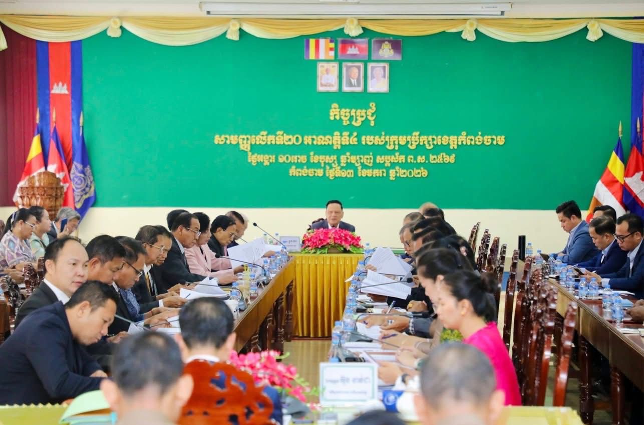 ឯកឧត្តម អ៊ុន ចាន់ដា អភិបាលខេត្តកំពង់ចាម អញ្ជើញចូលរួមជាគណៈអធិបតីក្នុងកិច្ចប្រជុំសាមញ្ញលើកទី២០ អាណត្តិទី៤ របស់ក្រុមប្រឹក្សាខេត្ត =================នៅថ្ងៃអង្គារ ១០រោច ខែបុស្ស ឆ្នាំម្សាញ់ សប្តស័ក ពុទ្ធសករាជ ២៥៦៩ ត្រូវនឹងថ្ងៃទី១៣ ខែមករា ឆ្នាំ២០២៦ ឯកឧត្តម អ៊ុន ចាន់ដា អភិបាលនៃគណៈអភិបាលខេត្តកំពង់ចាម បានអញ្ជើញចូលរួមជាគណៈអធិបតីក្នុងកិច្ចប្រជុំសាមញ្ញលើកទី២០ អាណត្តិទី៤ របស់ក្រុមប្រឹក្សាខេត្ត ក្រោមអធិបតីភាពឯកឧត្តម ខ្លូត ផន ប្រធានក្រុមប្រឹក្សាខេត្ត ស្ថិតនៅសាលាខេត្តកំពង់ចាម។ កិច្ចប្រជុំមានការអញ្ជើញចូលរួមពី សមាជិកក្រុមប្រឹក្សាខេត្ត, អភិបាលរងខេត្ត នាយក, នាយករងរដ្ឋបាល, ស្នងការនគរបាលខេត្ត, មេបញ្ជាការកងរាជអាវុធហត្ថខេត្ត, ថ្នាក់ដឹកនាំ, មន្ទីរអង្គភាពជុំវិញខេត្ត និងមន្ត្រីពាក់ព័ន្ធមួយចំនួន។ កិច្ចប្រជុំបានលើកយករបៀបវារៈសំខាន់ៗ ចំនួន៥ រួមមាន:១-ពិនិត្យ ពិភាក្សា និងអនុម័តសេចក្តីព្រាងកំណត់ហេតុនៃកិច្ចប្រជុំសាមញ្ញលើកទី១៩ អាណត្តិទី៤ របស់ក្រុមប្រឹក្សាខេត្តកំពង់ចាម។២-ពិនិត្យ ពិភាក្សា និងអនុម័តសេចក្តីព្រាងរបាយការណ៍ស្តីពី ការអនុវត្តការងារប្រចាំខែធ្នូ ឆ្នាំ២០២៥ និងលើកទិសដៅប្រចាំខែមករា ឆ្នាំ២០២៦ របស់រដ្ឋបាលខេត្តកំពង់ចាម។៣-ពិនិត្យ ពិភាក្សា និងអនុម័តសេចក្ដីព្រាងរបាយការណ៍ស្តីពី ការអនុវត្តការងារប្រចាំឆ្នាំ ២០២៥ និងលើកទិសដៅប្រចាំឆ្នាំ២០២៦ របស់រដ្ឋបាលខេត្តកំពង់ចាម។៤-ពិនិត្យ ពិភាក្សានិងអនុម័តសេចក្តីព្រាងផែនការសកម្មភាពរយៈពេលបីខែ (មករា កុម្ភៈមីនា) ឆ្នាំ២០២៦ របស់រដ្ឋបាលខេត្តកំពង់ចាម។ ៥-បញ្ហាផ្សេងៗ៕