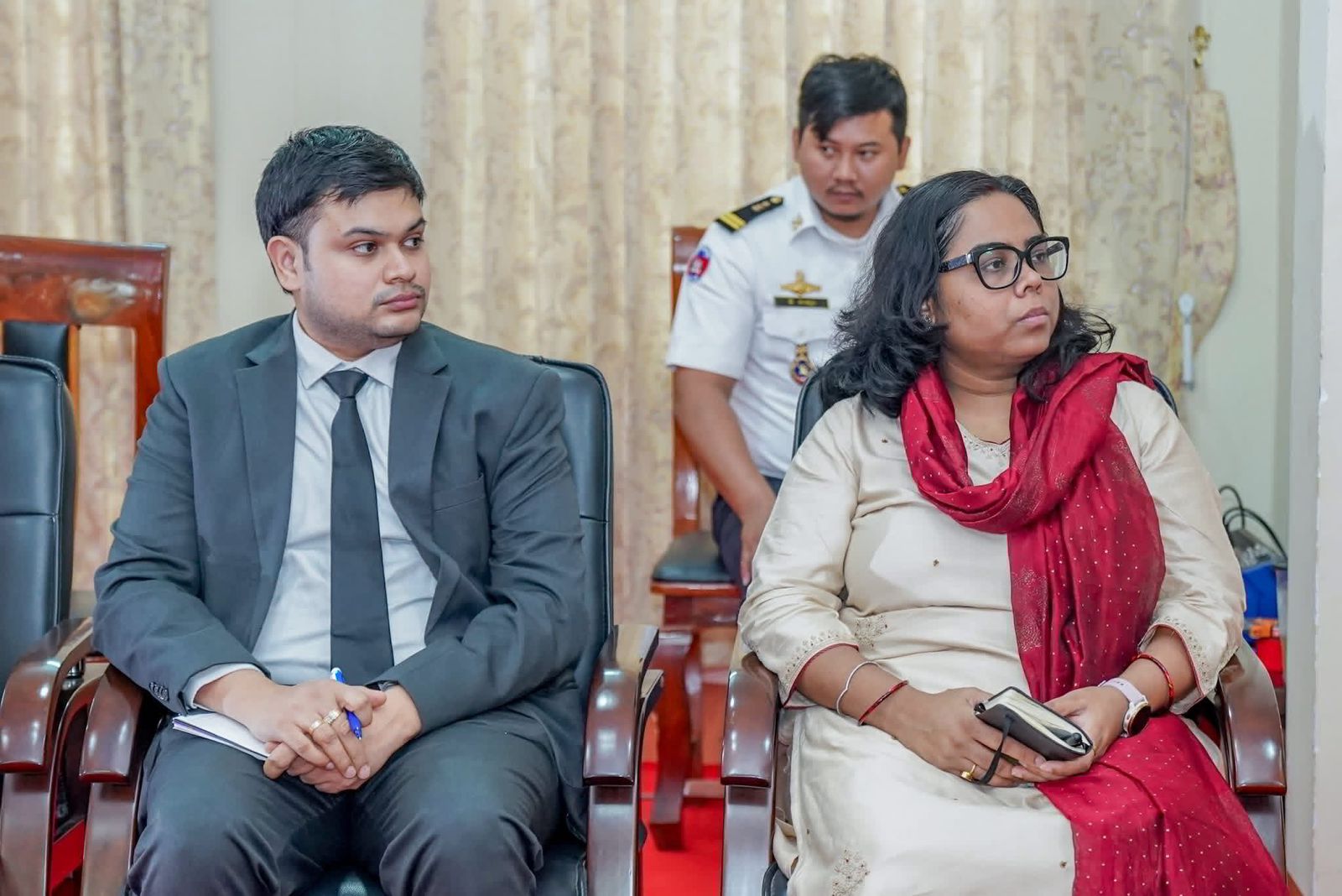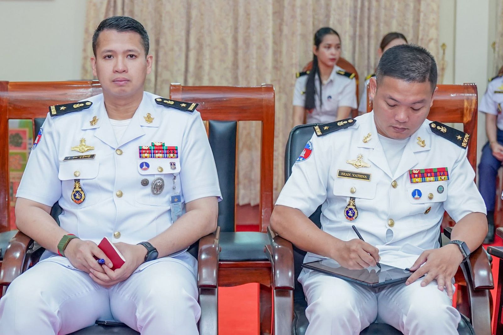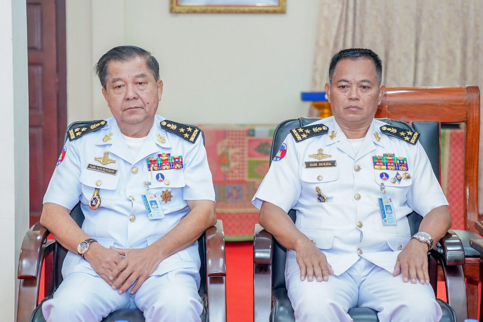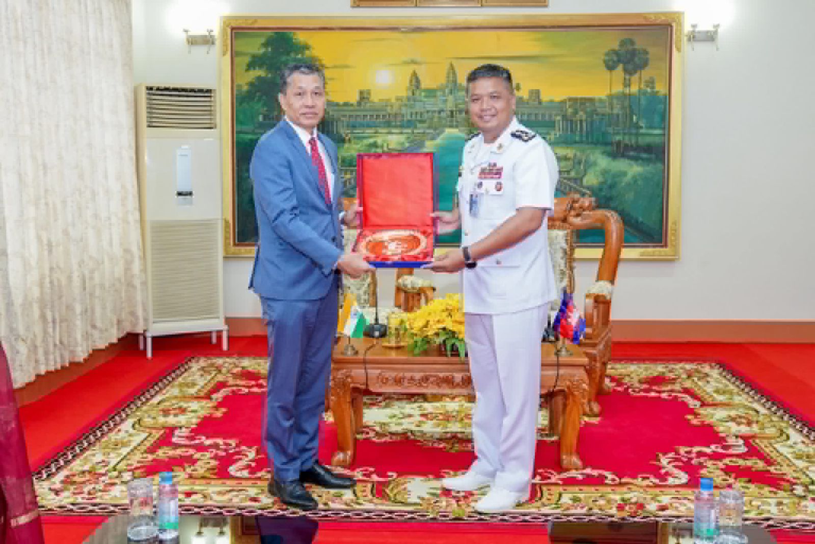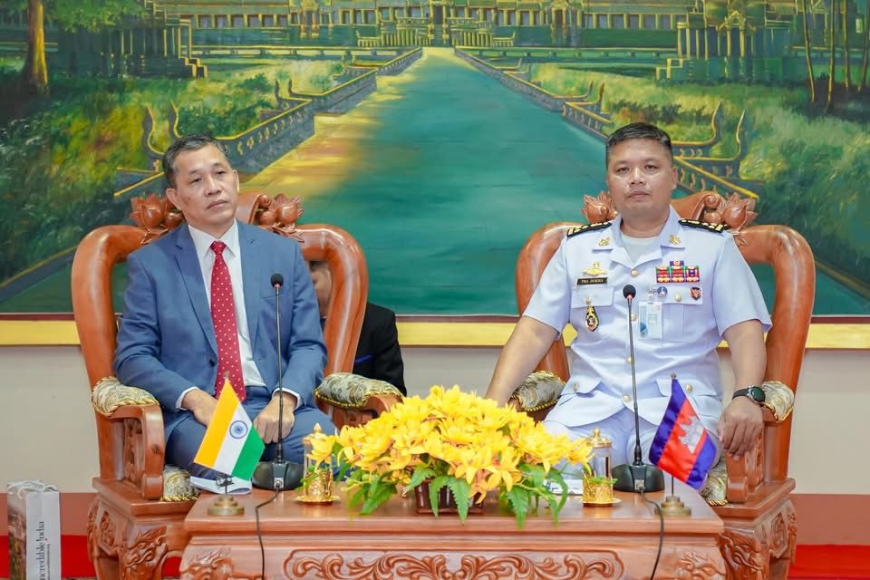 ឯកឧត្ដម ឧត្តមនាវីឯក ទៀ សុខា មេបញ្ជាការ កងទ័ពជើងទឹក អញ្ចើញទទួលជួបសម្តែងការគួរសម ជាមួយឯកឧត្តម Vanlalvawna Bawtilung ឯកអគ្គរដ្ឋទូត នៃសាធារណរដ្ឋឥណ្ឌា ប្រចាំព្រះរាជាណាចក្រកម្ពុជា ===================(ភ្នំពេញ)៖នាព្រឹកថ្ងៃសុក្រ ១៣រោច ខែបុស្ស ឆ្នាំម្សាញ់ សប្តស័ក ពុទ្ធសករាជ ២៥៦៩ ត្រូវនឹងថ្ងៃទី១៦ ខែមករា ឆ្នាំ២០២៦ ឯកឧត្ដម ឧត្តមនាវីឯក ទៀ សុខា មេបញ្ជាការ កងទ័ពជើងទឹក អនុប្រធានប្រចាំការ និងជាអគ្គលេខាធិការ នៃគណៈកម្មាធិការជាតិសន្តិសុខលម្អសមុទ្រ បានអញ្ចើញទទួលជួបសម្តែងការគួរសម ជាមួយឯកឧត្តម Vanlalvawna Bawtilung ឯកអគ្គរដ្ឋទូត នៃសាធារណរដ្ឋឥណ្ឌាប្រចាំព្រះរាជាណាចក្រកម្ពុជា នៅបញ្ជាការដ្ឋានកងទ័ពជើងទឹក ក្នុងខណ្ឌជ្រោយចង្វារ រាជធានីភ្នំពេញ។