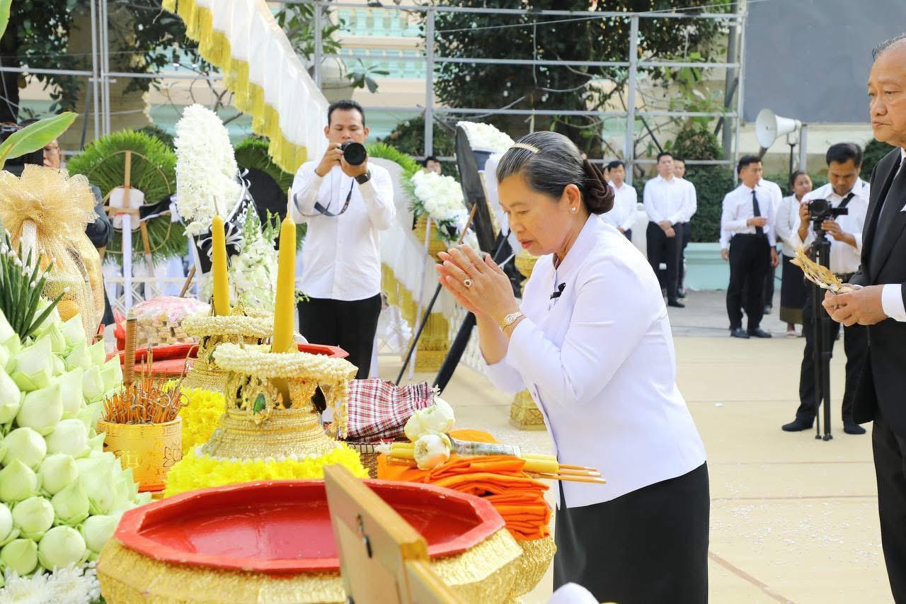 សម្តេចកិត្តិសង្គហបណ្ឌិត ម៉ែន សំអន អញ្ចើញជូនភ្លើងបូជាសព អគ្គមហាឧបាសិកាពុទ្ធសាសនូបត្ថម្ភក៏ ឌី សានឿន នៅវត្តបុទុមវតីរាជវរារាម រាជធានីភ្នំពេញ===============សម្តេចកិត្តិសង្គហបណ្ឌិត ម៉ែន សំអន ឧត្តមប្រឹក្សាផ្ទាល់ព្រះមហាក្សត្រ បានជូនភ្លើងបូជាសព អគ្គមហាឧបាសិកាពុទ្ធសាសនូបត្ថម្ភក៏ ឌី សានឿន នៅវត្តបុទុមវតីរាជវរារាម រាជធានីភ្នំពេញ នារសៀលថ្ងៃចន្ទ ១កើត ខែមាឃ ឆ្នាំម្សាញ់ សប្តស័ក ព.ស.២៥៦៩ ត្រូវនឹងថ្ងៃទី១៩ ខែមករា ឆ្នាំ២០២៦។គួររំលឹកផងដែរថា អគ្គមហាឧបាសិកាពុទ្ធសាសនូបត្ថម្ភក៏ ឌី សានឿន ដែលត្រូវជាម្តាយបង្កើតរបស់បណ្ឌិតសភាចារ្យ ជូ វិជិត្ត រដ្ឋលេខាធិការប្រចាំការ នៃក្រសួងសេដ្ឋកិច្ច និងហិរញ្ញវត្ថុ បានទទួលមរណភាព នៅថ្ងៃសៅរ៍ ១៤រោច ខែបុស្ស ឆ្នាំម្សាញ់ សប្ដស័ក ព.ស.២៥៦៩ ត្រូវនឹងថ្ងៃទី១៧ ខែមករា ឆ្នាំ២០២៦ វេលាម៉ោង ២១:០០នាទី ក្នុងជន្មាយុ ៨៤ឆ្នាំ ដោយជរាពាធ។នៅក្នុងសមានទុក្ខដ៏ក្រៀមក្រំនោះ សម្តេចកិត្តិសង្គហបណ្ឌិត ក៏បានចូលរួមរំលែកទុក្ខជាមួយ បណ្ឌិតសភាចារ្យ ជូ វិជិត្ត និងលោកជំទាវ ព្រមទាំងក្រុមគ្រួសារ និងបានឧទ្ទិសកុសលជូនដល់ដួងវិញ្ញាណក្ខន្ធរបស់អគ្គមហាឧបាសិកាពុទ្ធសាសនូបត្ថម្ភក៏ ឌី សានឿន បានទៅកាន់សុគតិភពកុំបីឃ្លៀងឃ្លាតឡើយ៕