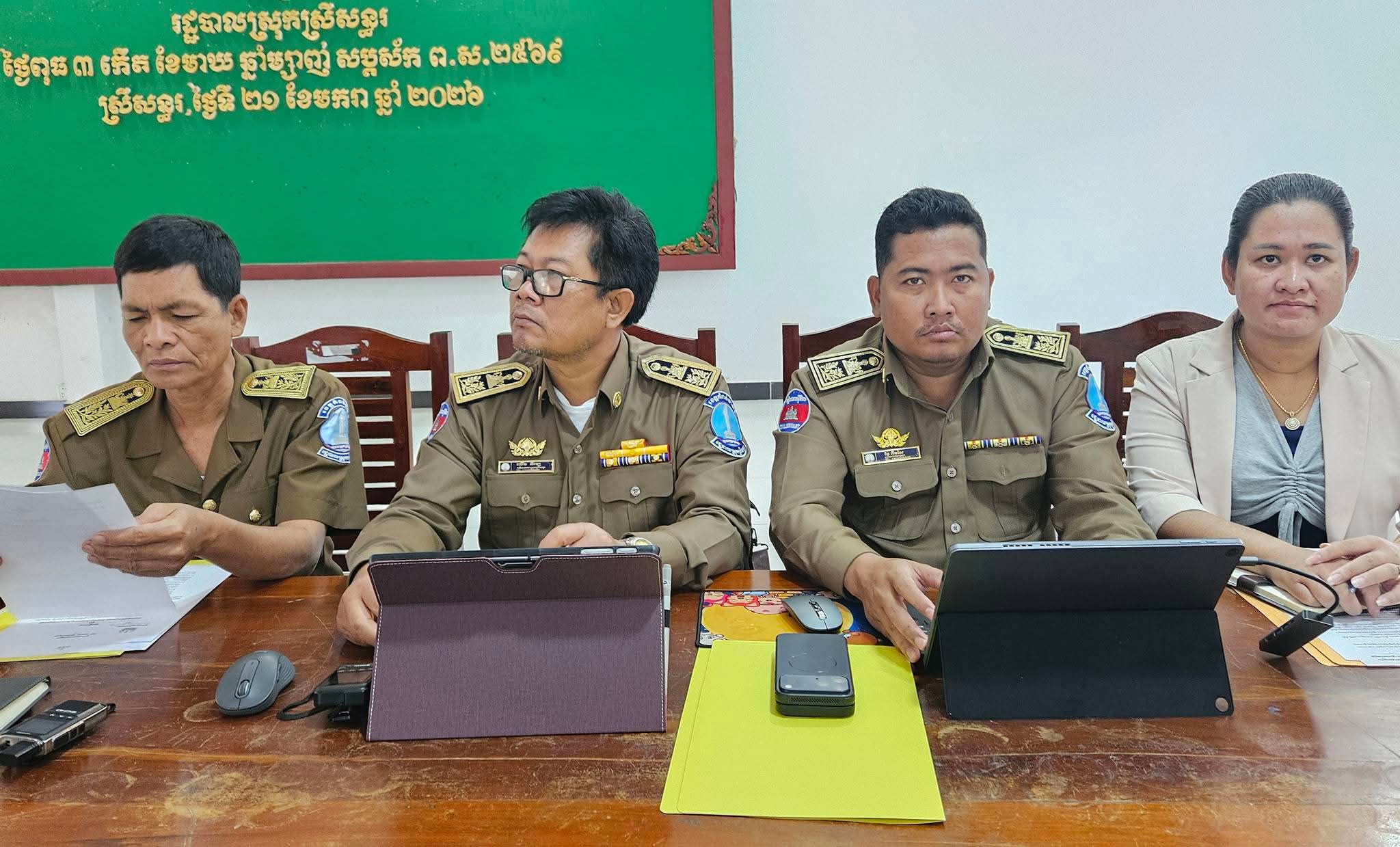 លោក ប៊ិន ឡាដា អភិបាលស្រុកស្រីសន្ធរ អញ្ចើញដឹកនាំកិច្ចប្រជុំផ្សព្វផ្សាយ និងត្រួតពិនិត្យវឌ្ឍនភាពការអនុវត្តការងារ ព្រមទាំងលើកទិសដៅបន្តក្នុងការបោសសម្អាតការឆបោកតាមប្រព័ន្ធបច្ចេកវិទ្យា Online Scams និងសេចក្តីណែនាំ របស់រដ្ឋបាលខេត្តកំពង់ចាម ================ស្រុកស្រីសន្ធរ៖នៅព្រឹកថ្ងៃពុធ ទី២១ ខែមករា ឆ្នាំ២០២៦ លោក ប៊ិន ឡាដា អភិបាល នៃគណៈអភិបាលស្រុក និងជាប្រធានគណៈបញ្ជាការឯកភាពរដ្ឋបាលស្រុក បានដឹកនាំកិច្ចប្រជុំផ្សព្វផ្សាយ និងត្រួតពិនិត្យវឌ្ឍនភាពការអនុវត្តការងារ ព្រមទាំងលើកទិសដៅបន្តក្នុងការបោសសម្អាតការឆបោកតាមប្រព័ន្ធបច្ចេកវិទ្យា Online Scams និងសេចក្តីណែនាំរបស់រដ្ឋបាលខេត្តកំពង់ចាម ស្តីពីការពង្រឹងការគ្រប់គ្រងអាជីវកម្មដឹកអាចម៍ដី ដែលប៉ះពាល់ដល់ដីសាធារណៈរបស់រដ្ឋ ក្នុងភូមិសាស្ត្រស្រុកស្រីសន្ធរ ខេត្តកំពង់ចាម។ ដែលកិច្ចប្រជុំនេះមានការចូលរួមពីលោក លោកស្រីអភិបាលរងស្រុក នាយក នាយករងរដ្ឋបាលសាលាស្រុក មេបញ្ជាការកងកម្លាំងទាំង២ ប្រធានការិយាល័យជំនាញពាក់ព័ន្ធចំណុះរដ្ឋបាលស្រុក មេឃុំ និងនាយប៉ុស្តិ៍នគរបាលរដ្ឋបាលឃុំទាំង១៤ ប្រព្រឹត្តទៅនៅសាលប្រជុំសាលាស្រុកស្រីសន្ធរ។