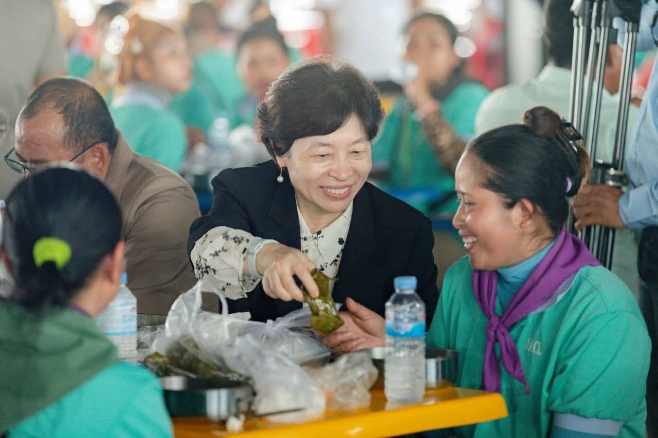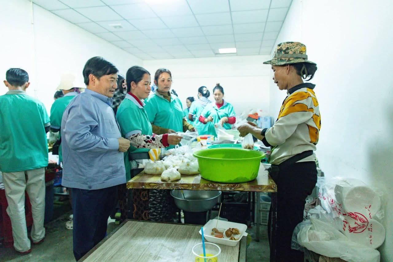 ឯកឧត្ដម ស៊ុន សុវណ្ណារិទ្ធិ អភិបាលខេត្តកំពង់ឆ្នាំង អញ្ជើញចូលរួមចុះជួបសំណេះសំណាលសួរសុខទុក្ខ និងទទួលទានអាហារថ្ងៃត្រង់ ជាមួយបងប្អូនកម្មករនិយោជិត នៅរោងចក្រ ស៊ិនគី អឹភែរឹល (SHINKI APPAREL (CAMBODIA) CO., LTD.) ស្ថិតនៅស្រុកសាមគ្គីមានជ័យ ================កំពង់ឆ្នាំង៖នៅថ្ងៃទី២០ ខែមករា ឆ្នាំ២០២៦ ឯកឧត្ដម ស៊ុន សុវណ្ណារិទ្ធិ អភិបាល នៃគណៈអភិបាលខេត្តកំពង់ឆ្នាំង បានអមដំណើរឯកឧត្តម ហេង សួរ រដ្ឋមន្ត្រីក្រសួងការងារ និងបណ្តុះបណ្តាលវិជ្ជាជីវៈ និងលោកស្រី ស៊ាវយៀន ឈាន (Xiaoyan Qian) នាយិកាការិយាល័យប្រចាំប្រទេសថៃ កម្ពុជា និងឡាវ នៃអង្គការអន្តរជាតិខាងការងារ (ILO) និងក្រុមការងារ អញ្ជើញចុះជួបសំណេះសំណាលសួរសុខទុក្ខ និងទទួលទានអាហារថ្ងៃត្រង់យ៉ាងស្និទ្ធស្នាលជាមួយបងប្អូនកម្មករនិយោជិតនៅរោងចក្រ ស៊ិនគី អឹភែរឹល (SHINKI APPAREL (CAMBODIA) CO., LTD.) ស្ថិតក្នុងភូមិជន្លាត់ដៃ ឃុំស្វាយ ស្រុកសាមគ្គីមានជ័យ ខេត្តកំពង់ឆ្នាំង។ការចុះជួប និងទទួលទានអាហារផ្ទាល់ជាមួយកម្មករនិយោជិតនេះ គឺជាឱកាសដ៏សំខាន់សម្រាប់ថ្នាក់ដឹកនាំក្នុងការស្វែងយល់ពីស្ថានភាពការងារប្រចាំថ្ងៃ និងទុក្ខធុរៈរបស់បងប្អូនកម្មករនិយោជិតដោយផ្ទាល់ ស្របតាមអនុសាសន៍ដ៏ខ្ពង់ខ្ពស់របស់សម្ដេចមហាបវរធិបតី ហ៊ុន ម៉ាណែត នាយករដ្ឋមន្ត្រីនៃព្រះរាជាណាចក្រកម្ពុជា។បច្ចុប្បន្ន រោងចក្រ ស៊ិនគី អឹភែរឹល មានកម្មករនិយោជិតបំពេញការងារសរុបប្រមាណ ៦ ៨០០នាក់ ហើយក៏កំពុងមានតម្រូវការកម្លាំងពលកម្មបន្ថែមទៀតផងដែរ។ បងប្អូនកម្មករនៅទីនេះ ទទួលបានប្រាក់ឈ្នួលសមរម្យ និងអត្ថប្រយោជន៍ផ្សេងៗជាច្រីនតាមគោលការណ៍របស់រាជរដ្ឋាភិបាល ជាមួយលក្ខខណ្ឌការងារល្អប្រសើរ រួមមានអាហារដ្ឋានស្តង់ដា និងកន្លែងទទួលទានអាហារថ្ងៃត្រង់ប្រកបដោយផាសុកភាព។