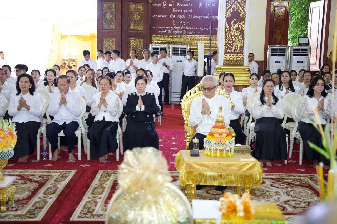 សម្តេចកិត្តិសង្គហបណ្ឌិត ម៉ែន សំអន អញ្ជើញចូលរួមបុណ្យខួបគម្រប់ ៧ថ្ងៃដើម្បីឧទ្ទិសកុសលជូនដល់ អគ្គមហាឧបាសិកាពុទ្ធសាសនូបត្ថម្ភក៏ ឌី សានឿន==================សម្តេចកិត្តិសង្គហបណ្ឌិត ម៉ែន សំអន ឧត្តមប្រឹក្សាផ្ទាល់ព្រះមហាក្សត្រ និងជាប្រធានក្រុមប្រឹក្សាជាតិរណសិរ្សសាមគ្គី អភិវឌ្ឍន៍មាតុភូមិកម្ពុជា បានអញ្ជើញចូលរួមបុណ្យខួបគម្រប់ ៧ថ្ងៃដើម្បីឧទ្ទិសកុសលជូនដល់ អគ្គមហាឧបាសិកាពុទ្ធសាសនូបត្ថម្ភក៏ ឌី សានឿនស្ថិតក្នុង នៅវត្តបុទុមវតីរាជវរារាម រាជធានីភ្នំពេញ នារសៀលថ្ងៃព្រហស្បតិ៍៤កើតខែមាឃ ឆ្នាំម្សាញ់ សប្តស័ក ព.ស.២៥៦៩ ត្រូវនឹងថ្ងៃទី២២ខែមករា ឆ្នាំ២០២៦ ។គួររំលឹកផងថា អគ្គមហាឧបាសិកាពុទ្ធសាសនូបត្ថម្ភក៏ ឌី សានឿន ដែលត្រូវជាម្តាយបង្កើតរបស់ ឯកឧត្តមបណ្ឌិតសភាចារ្យ ជូ វិជិត្ត រដ្ឋលេខាធិការប្រចាំការ នៃក្រសួងសេដ្ឋកិច្ច និងហិរញ្ញវត្ថុ បានទទួលមរណភាព នៅថ្ងៃសៅរ៍ ១៤រោច ខែបុស្ស ឆ្នាំម្សាញ់ សប្ដស័ក ព.ស.២៥៦៩ ត្រូវនឹងថ្ងៃទី១៧ ខែមករា ឆ្នាំ២០២៦ វេលាម៉ោង ២១:០០នាទី ក្នុងជន្មាយុ ៨៤ឆ្នាំ ដោយជរាពាធ។នៅក្នុងសមានទុក្ខដ៏ក្រៀមក្រំនេះ សម្តេចកិត្តិសង្គហបណ្ឌិត ក៏បានចូលរួមរំលែកទុក្ខជាមួយឯកឧត្តម បណ្ឌិតសភាចារ្យ ជូ វិជិត្ត និង លោកជំទាវ ព្រមទាំងក្រុមគ្រួសារ និងបានបួងសួង ដល់តេជៈបារមីនៃព្រះពុទ្ធ ព្រះធម៌ ព្រះសង្ឃ តាមជួយថែរក្សាដួងវិញ្ញាណក្ខន្ធអគ្គមហាឧបាសិកាពុទ្ធសាសនូបត្ថម្ភក៏ ឌី សានឿន របស់ បានទៅសោយសុខក្នុងឋានសុគតិភពកុំបីឃ្លៀងឃ្លាតឡើយ៕