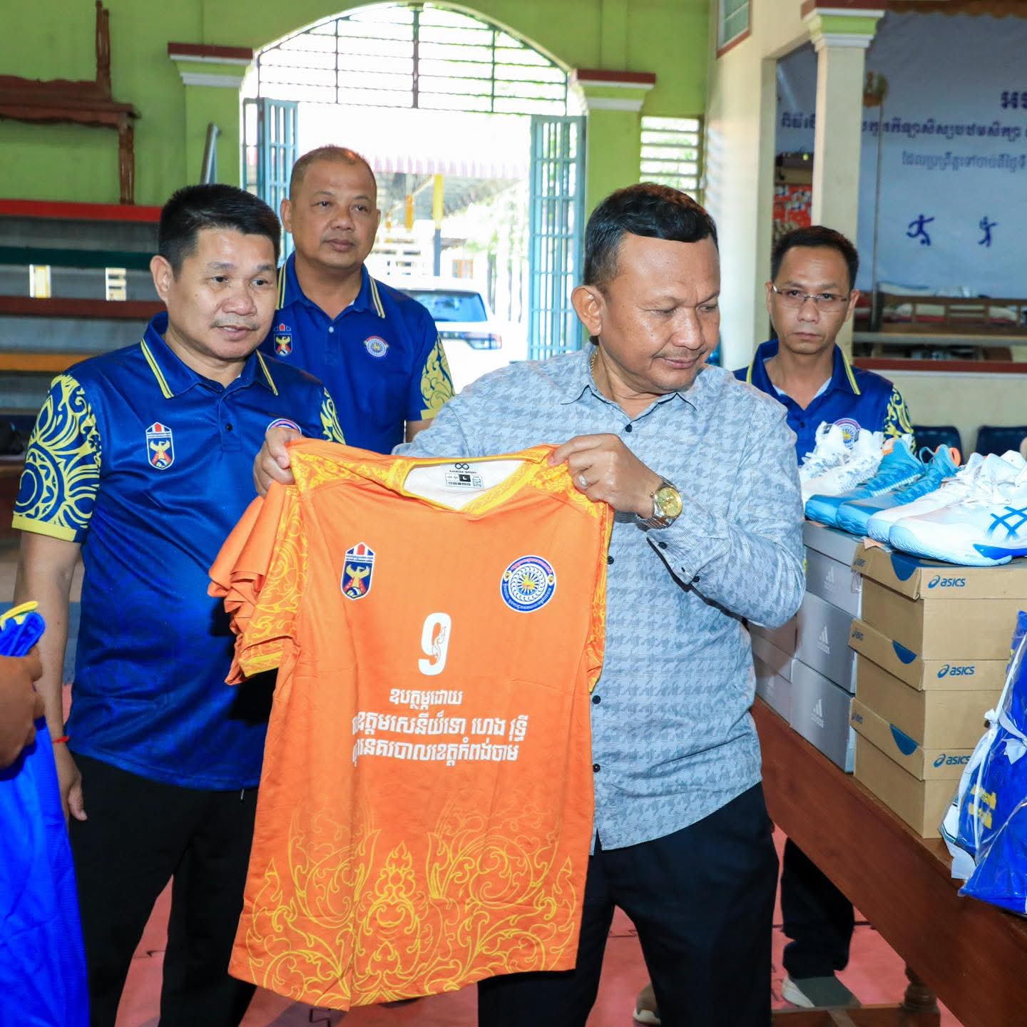 លោកឧត្តមសេនីយ៍ទោ ហេង វុទ្ធី ផ្ដល់អនុសាសន៍ និងលើកទឹកចិត្តដល់ គ្រូបង្វឹក និងកីឡាករ តាមរយៈឧបត្ថម្ភថវិកា និងសម្ភារៈមួយចំនួននៅព្រឹកថ្ងៃទី២៤ ខែមករា ឆ្នាំ២០២៦នេះ លោកឧត្តមសេនីយ៍ទោ ហេង វុទ្ធី ស្នងការនគរបាលខេត្តកំពង់ចាម និងជាប្រធានក្លិបបាល់ទះ នៃស្នងការដ្ឋាននគរបាលខេត្តកំពង់ចាម អញ្ជើញជួបសំណេះសំណាល និងផ្តល់នូវអនុសាសន៍ដល់លោកគ្រូ និងកីឡាករទាំងអស់ ដើម្បីត្រៀមចូលរួមការប្រកួតដណ្តើមពាន រង្វាន់សម្តេចក្រឡាហោម ស ខេង រដូវកាលទី៤ ដែលនឹងប្រព្រឹត្តទៅចាប់ពីថ្ងៃទី៧ ខែកុម្ភ: ឆ្នាំ២០២៦ ខាងមុខនេះ ។នាឱកាសនោះដែរ លោកឧត្តមសេនីយ៍ស្នងការ បានឧបត្ថម្ភនូវ សម្ភារៈកីឡាដល់គ្រូបង្វឹក និងកីឡាករ មួយចំនួនដូចមានដូចជា : ១-ស្បែកជើងកីឡា ចំនួន ១៨គូ ២-ខោ អាវ កីឡាករចំនួន ២៨ឈុត ៣-អាវគ្រូបង្វឹកចំនួន ០៤ អាវ ៤-អាវប្រតិភូចំនួន ១៦ អាវ ៥-បាល់ទះចំនួន ១០គ្រាប់ ៦-សានូ ទប់ជង្គង់ចំនួន ១៤គូ ។សរុបជាថវិកាចំណាយ ចំនួន ១៧៦៨ដុល្លារ ៕