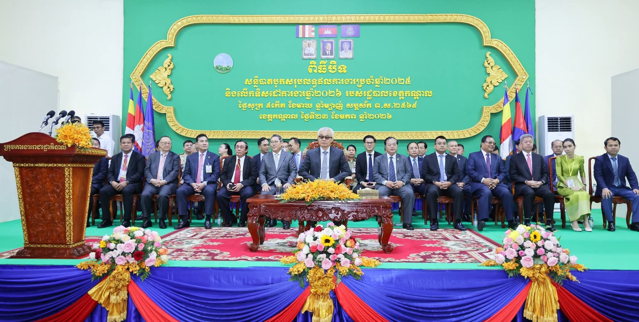 ខេត្តកណ្ដាល៖ នៅថ្ងៃទី២៣ ខែកមរា ឆ្នាំ២០២៦ ឯកឧត្ដមអគ្គបណ្ឌិតសភាចារ្យ អូន ព័ន្ធមុនីរ័ត្ន ឧបនាយករដ្ឋមន្ត្រី រដ្ឋមន្ត្រីក្រសួងសេដ្ឋកិច្ច និងហិរញ្ញវត្ថុ និងជាប្រធានក្រុមការងាររាជរដ្ឋាភិបាល ចុះមូលដ្ឋានខេត្តកណ្តាល អញ្ជើញជាអធិបតីភាពដ៏ខ្ពង់ខ្ពស់ ក្នុងពិធីបិទសន្និបាតបូកសរុបលទ្ធផលការងារប្រចាំឆ្នាំ ២០២៥ និង លើកទិសដៅការងារឆ្នាំ ២០២៦ របស់រដ្ឋបាលខេត្តកណ្តាល ដោយមានការចូលរួមពី ឯកឧត្តម លោកជំទាវ រដ្ឋមន្រ្តី ប្រតិភូរាជរដ្ឋាភិបាល រដ្ឋលេខាធិការ អនុរដ្ឋលេខាធិការ នាយឧត្តមសេនីយ៍ អគ្គនាយក អគ្គនាយករងជាក្រុមការងាររាជរដ្ឋាភិបាលចុះមូលដ្ឋានខេត្ត។